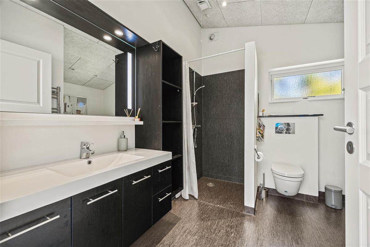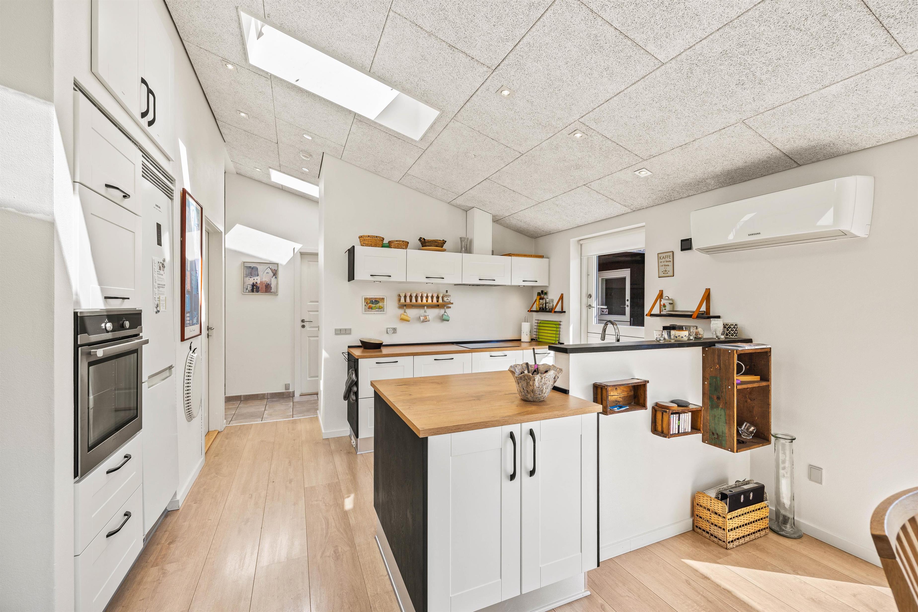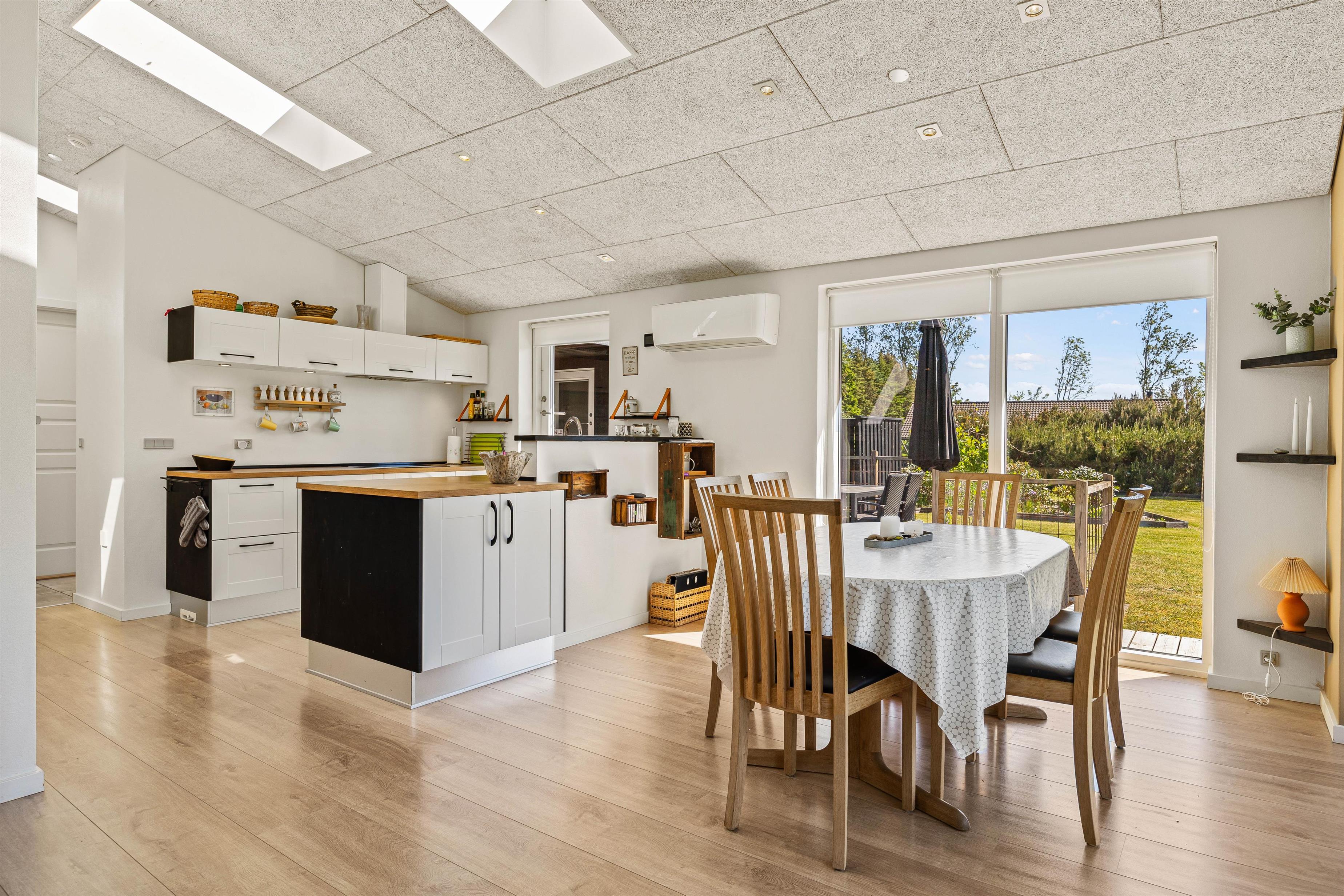 The holiday home features an inviting wood-burning stove that provides cosy warmth on cooler days. The spacious seating area offers plenty of room for everyone to enjoy relaxing evenings, whether watching films via Google Chromecast or simply enjoying good conversation. The well-equipped kitchen at Blomstervangen 87 is designed to satisfy both cooking enthusiasts and food lovers alike. Modern conveniences such as a dishwasher make cooking and cleaning a pleasure. The open-plan layout encourages social meal preparation and provides space for culinary creativity. A large dining table invites you to enjoy meals together in good company.