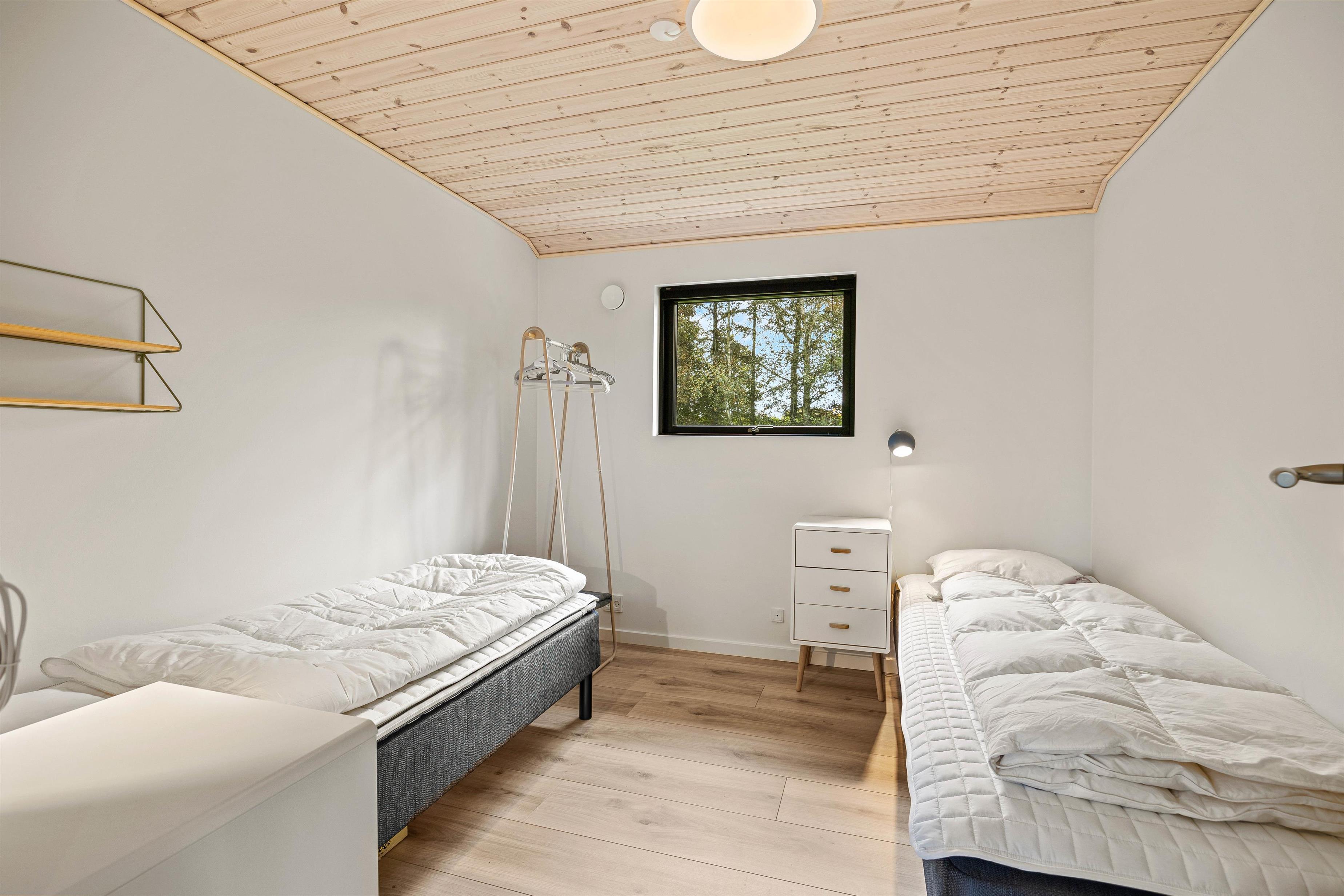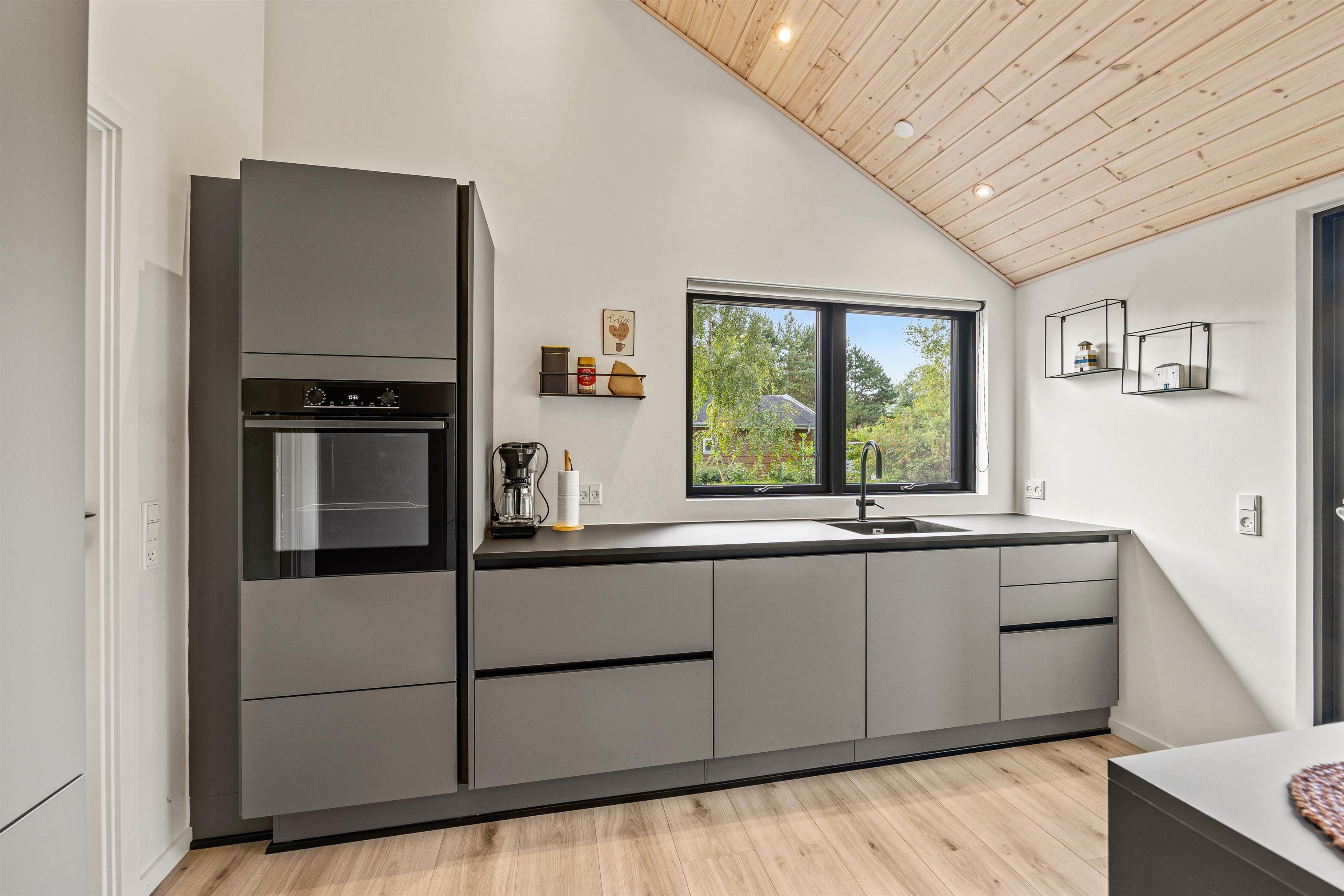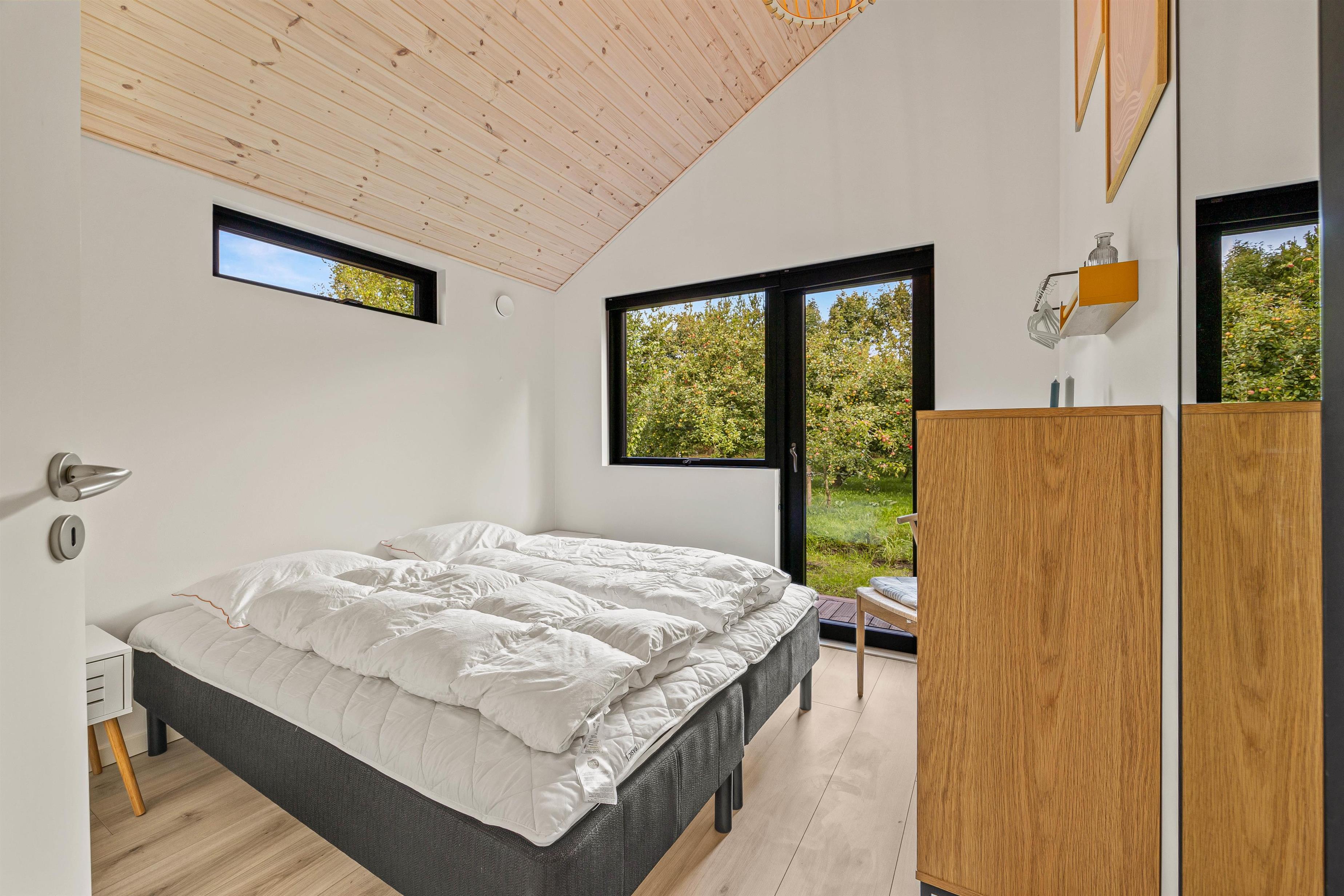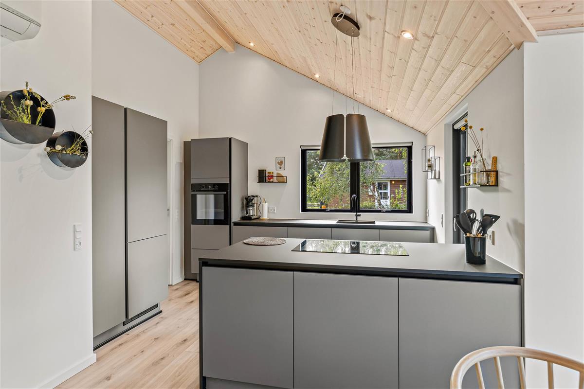 This holiday home accommodates up to 6 guests and 1 dog for an unforgettable holiday in stylish, modern surroundings - whatever the season. The subtle colours, numerous large windows and comfortable furniture create a beautiful spacious atmosphere. The large kitchen area allows you to spend time together, whether separately or sharing cosy moments. Prepare ingredients for a delicious barbecue, play board games at the dining table or settle down on the sofa with your favourite series, all while the warmth and comfort from the wood-burning stove spreads throughout the room. From the family room, you can access the loft where older children will love sleeping in their own little den. Here you'll find two single mattresses (90 x 200 cm).