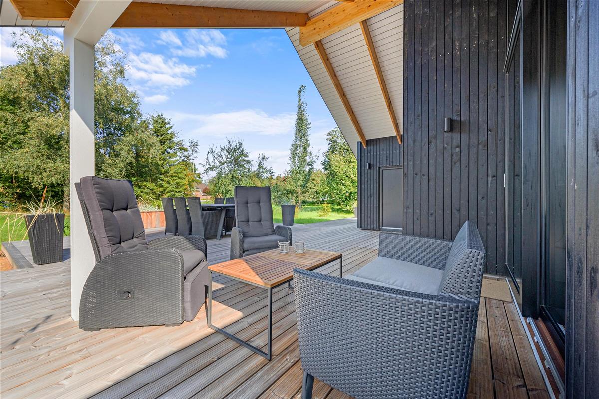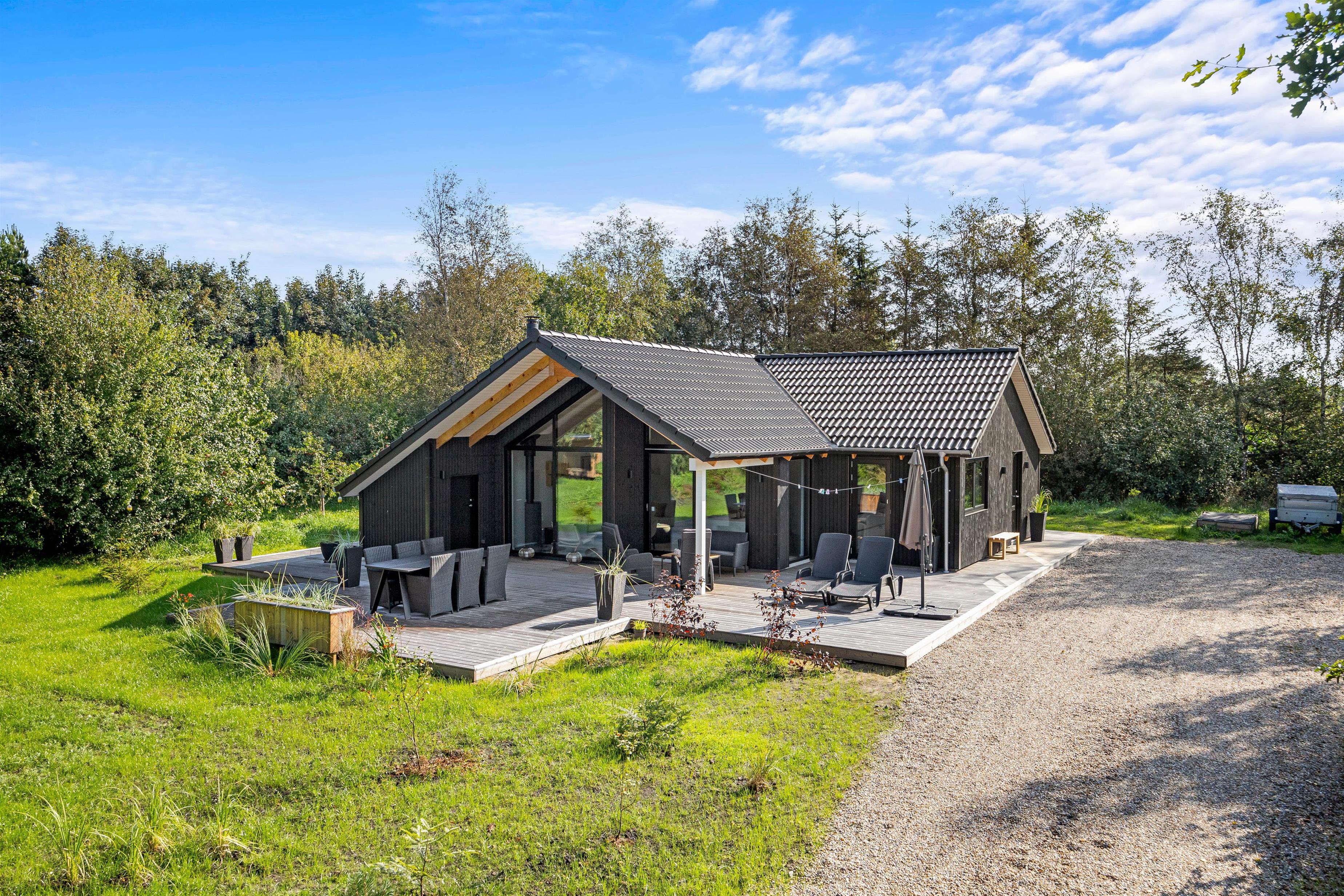 Welcome to Rønnebærvangen 12, a beautiful modern holiday home built in 2023. Treat your family to a wonderful holiday in Jegum Ferieland. Many hours of fun and relaxation await you on the terrace or in the spa area. Your four-legged friend is also welcome.