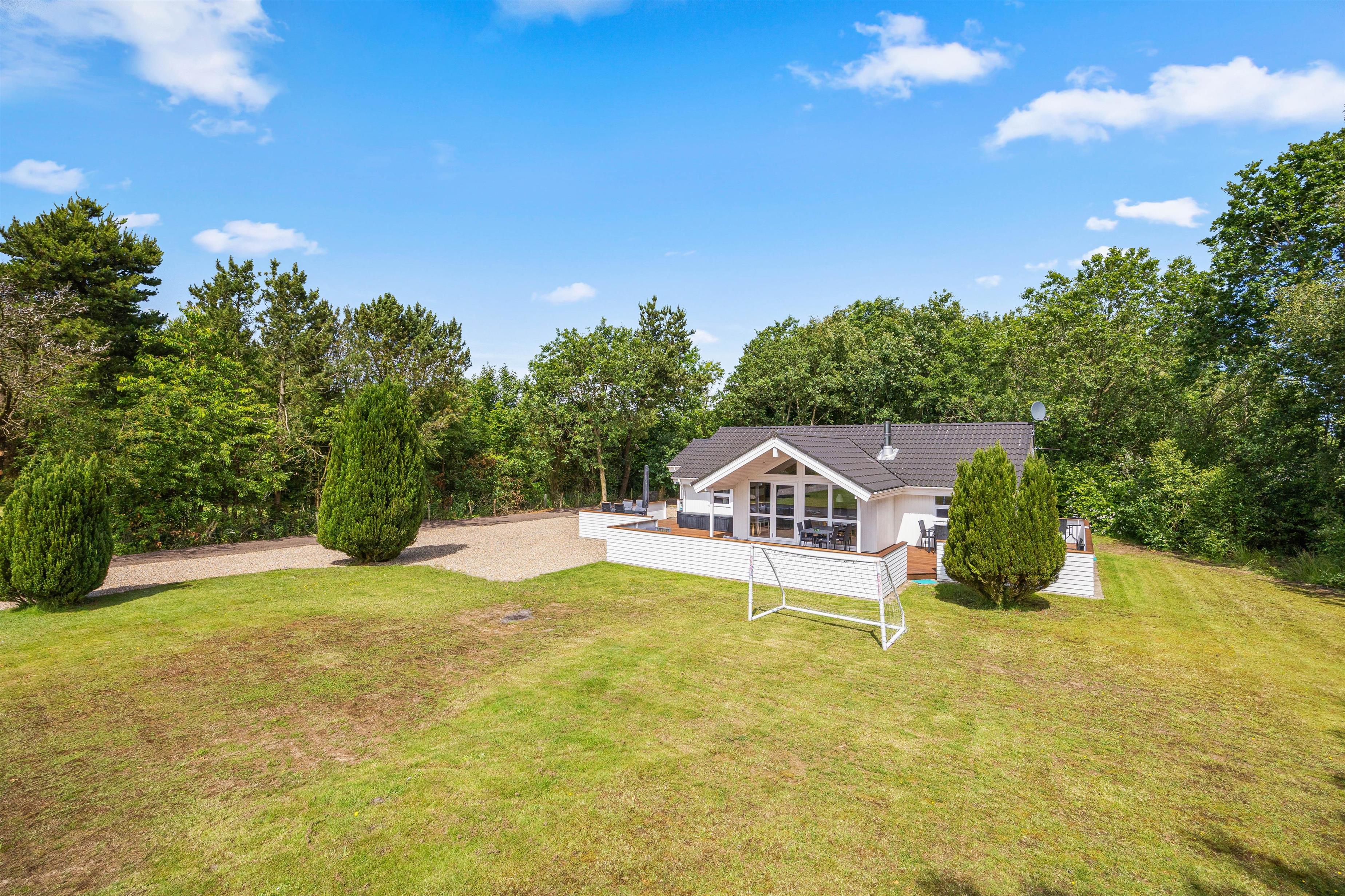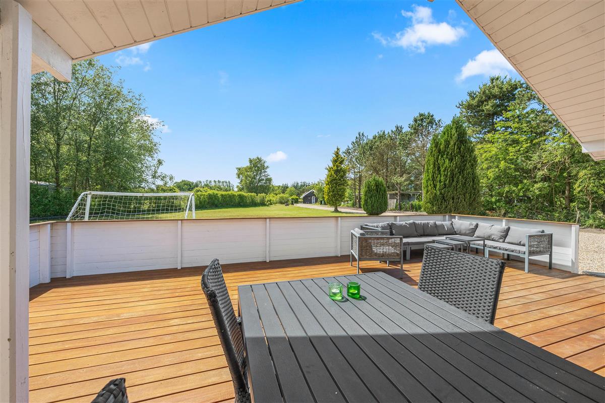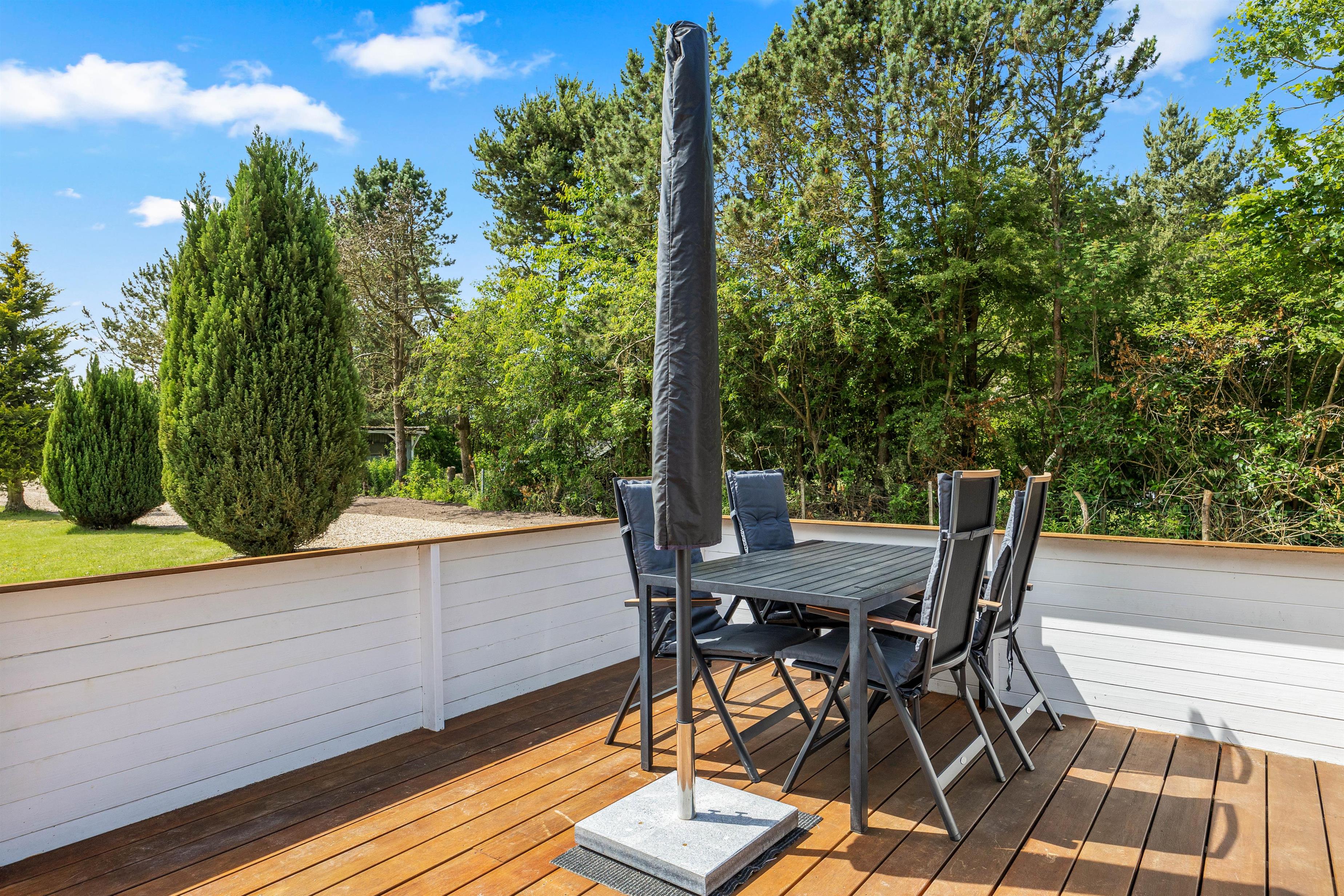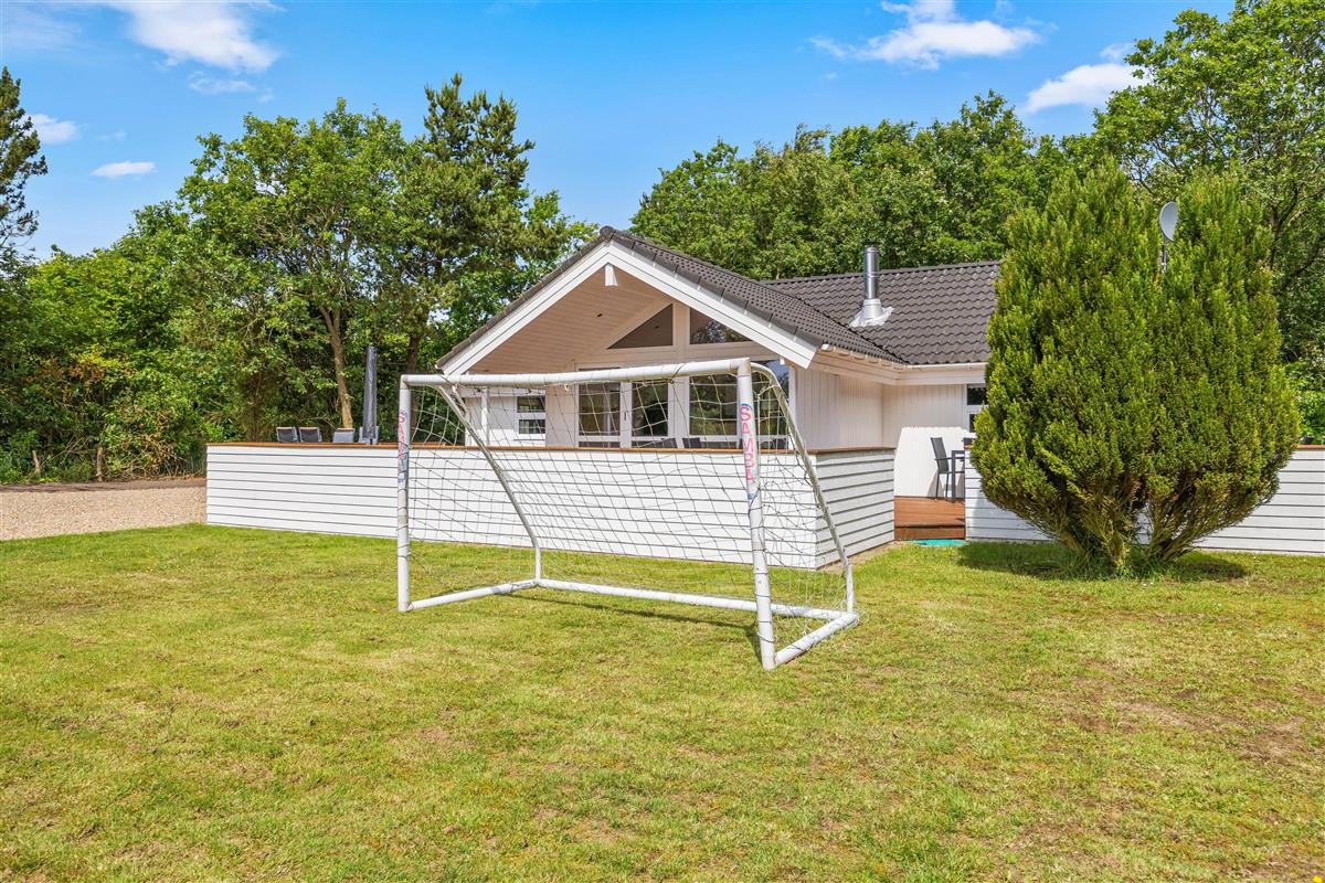 The outdoor area of this Jegum Ferieland holiday home is a paradise for nature and fresh air enthusiasts. The spacious lawned grounds offer plenty of space for relaxation while children play. Choose between open, screened, or covered terraces – ensuring suitable outdoor space for any weather or mood. A public playground nearby is sure to keep children entertained.
