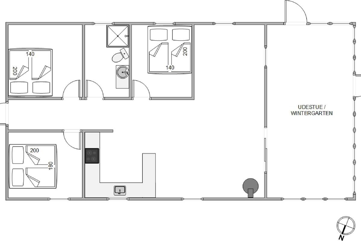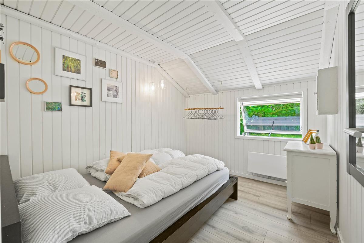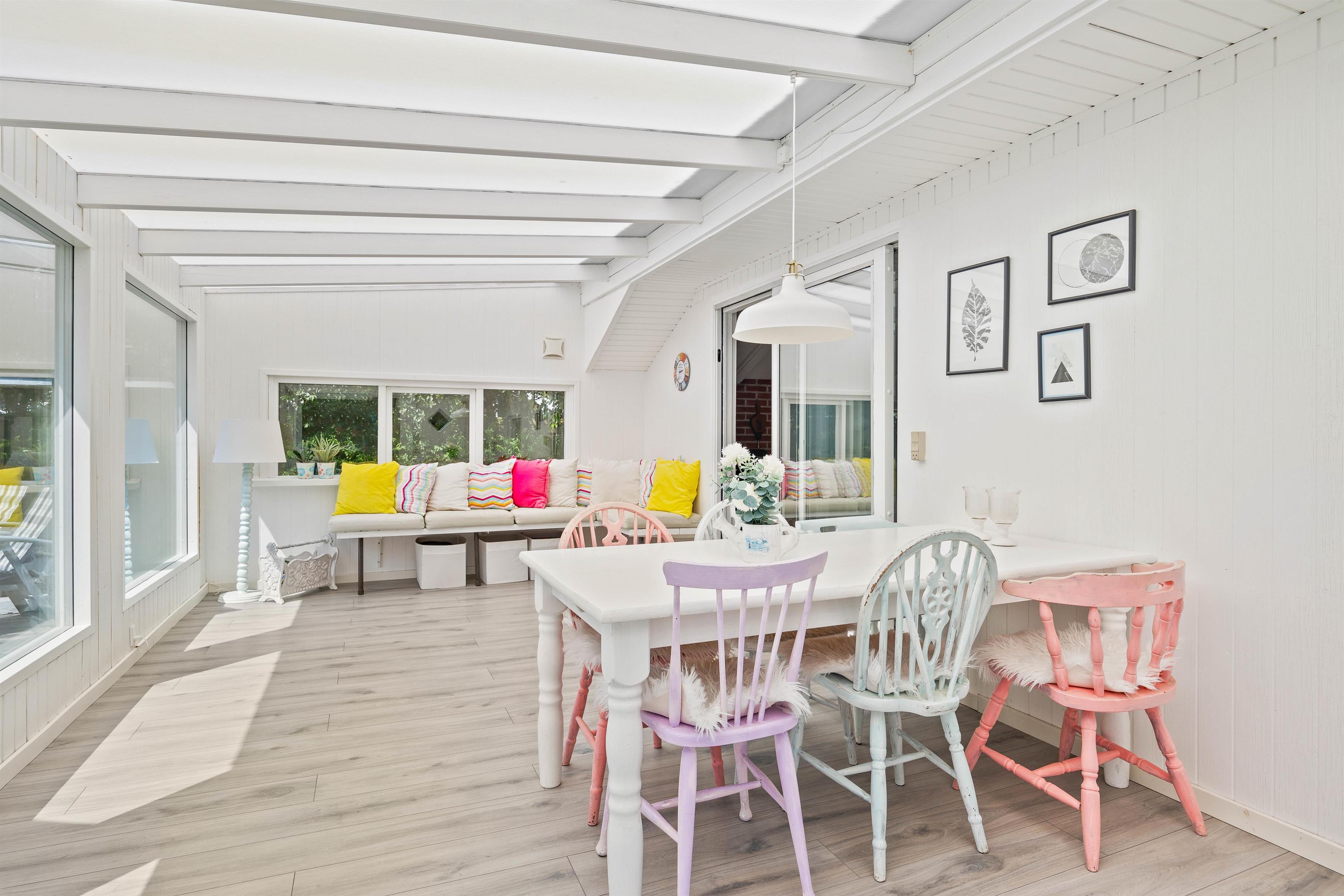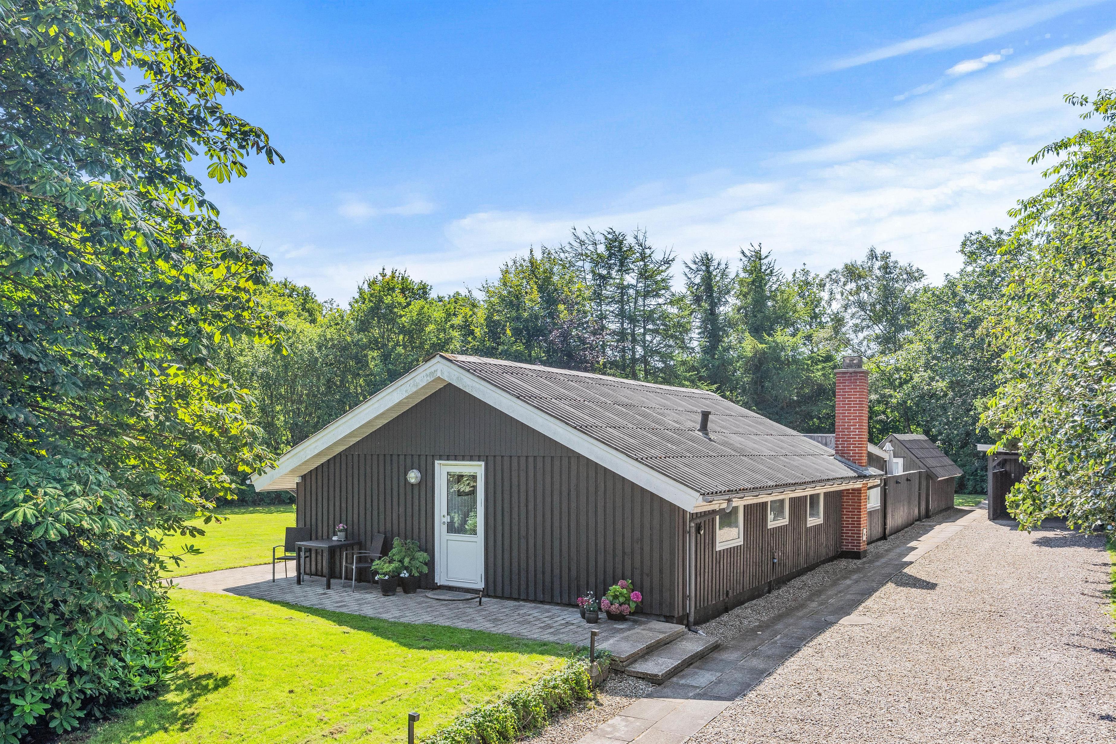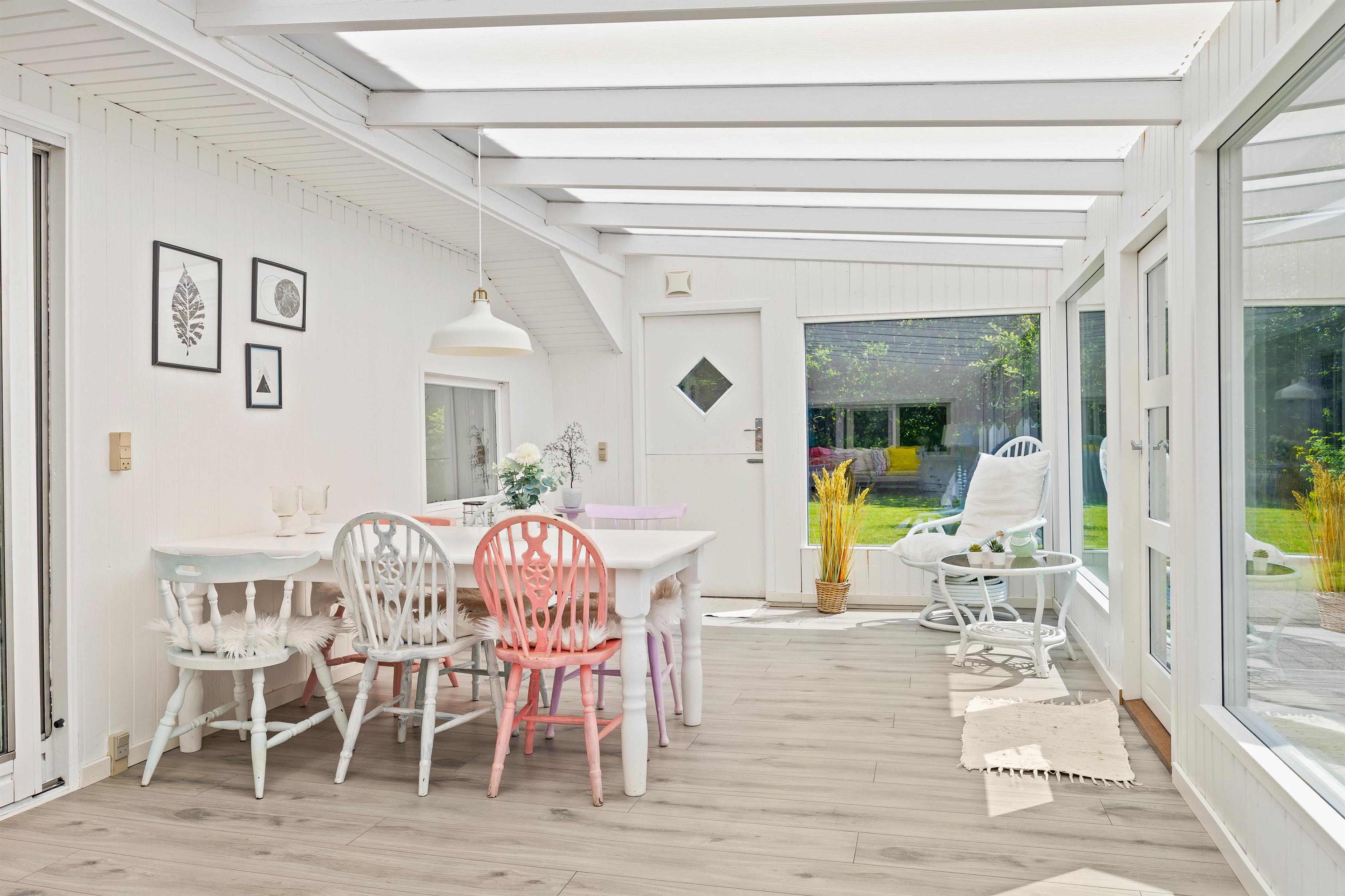 The outdoor area at Blomstervangen 8 in Jegum Ferieland is a nature lover's paradise, offering numerous opportunities to spend time outdoors. The generous lawn provides plenty of space for children and dogs to play, while you can relax on either the open terrace or the sheltered and enclosed terraces. Whether sunbathing, enjoying a BBQ evening, or having a peaceful breakfast outdoors - everyone will find their favourite spot.
