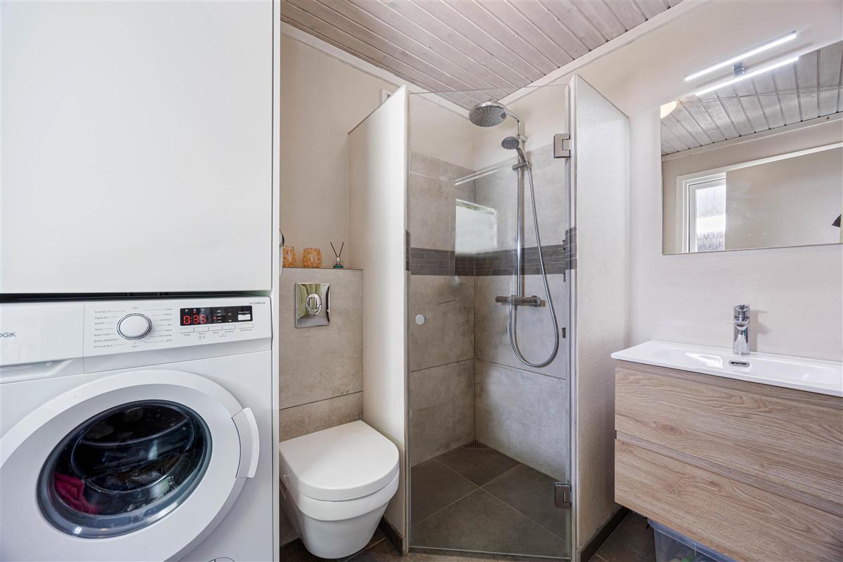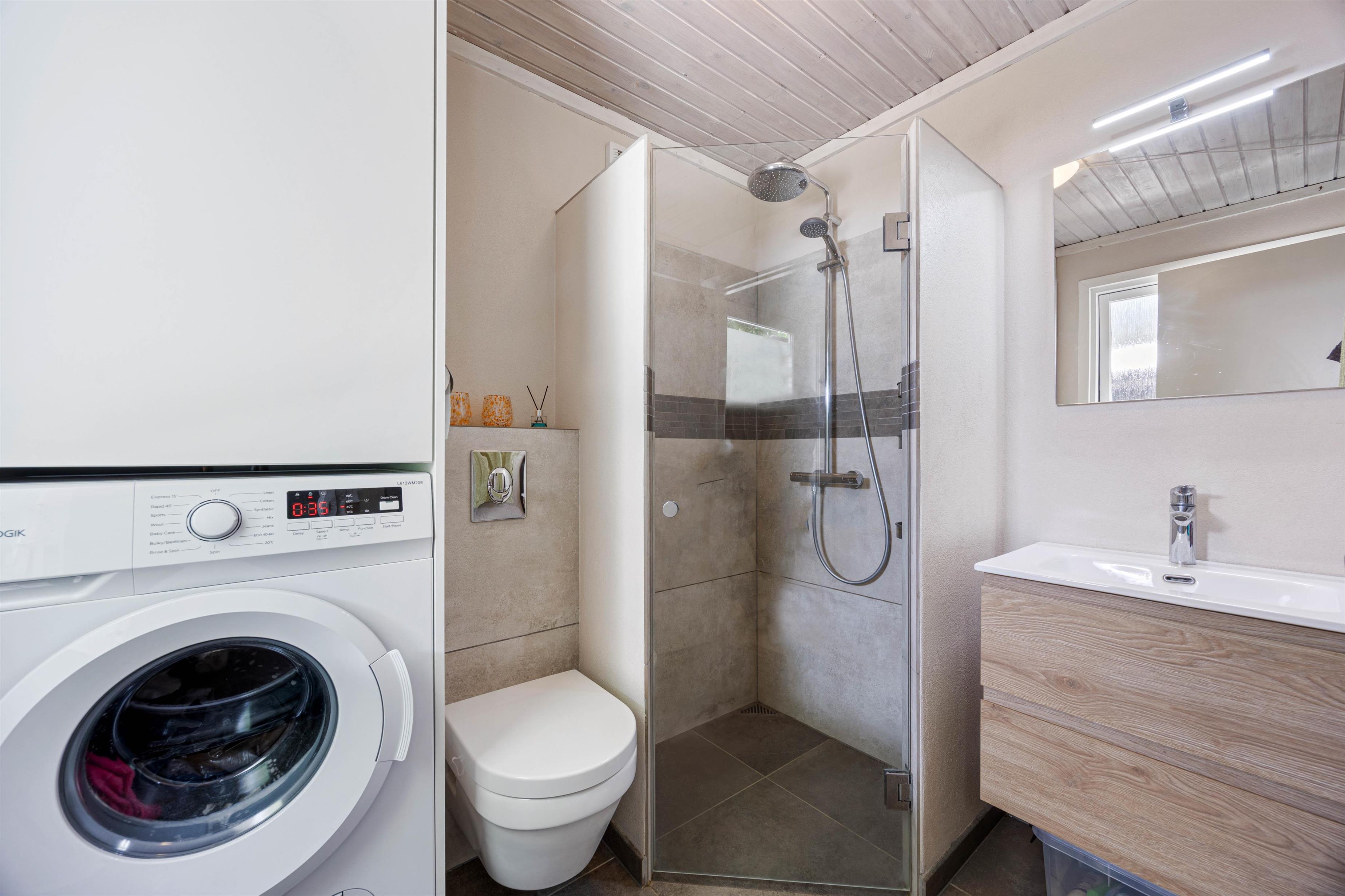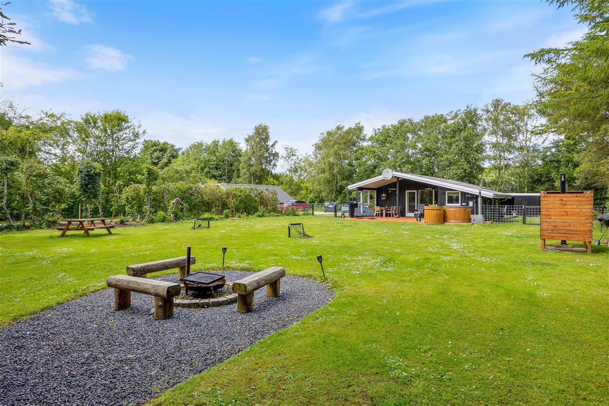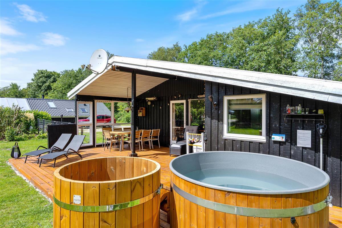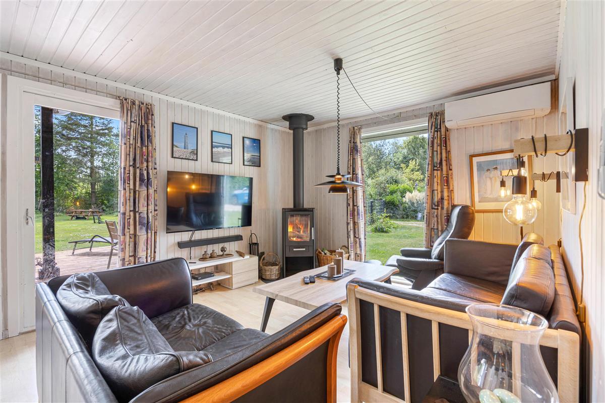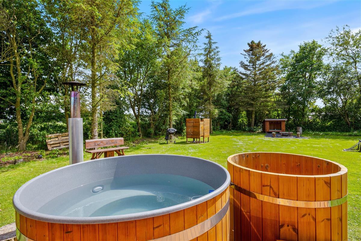 The holiday home is equipped with everything you need for a relaxing stay. The kitchen includes a dishwasher, and there is also a washing machine, making daily chores easy. A heat pump, together with the wood-burning stove, ensures a comfortable indoor temperature all year round. The bathroom is both functional and beautifully designed, with floor heat that feels luxurious underfoot. After a long day, you can unwind in the delightful hot tub or refresh yourself under the outdoor shower.