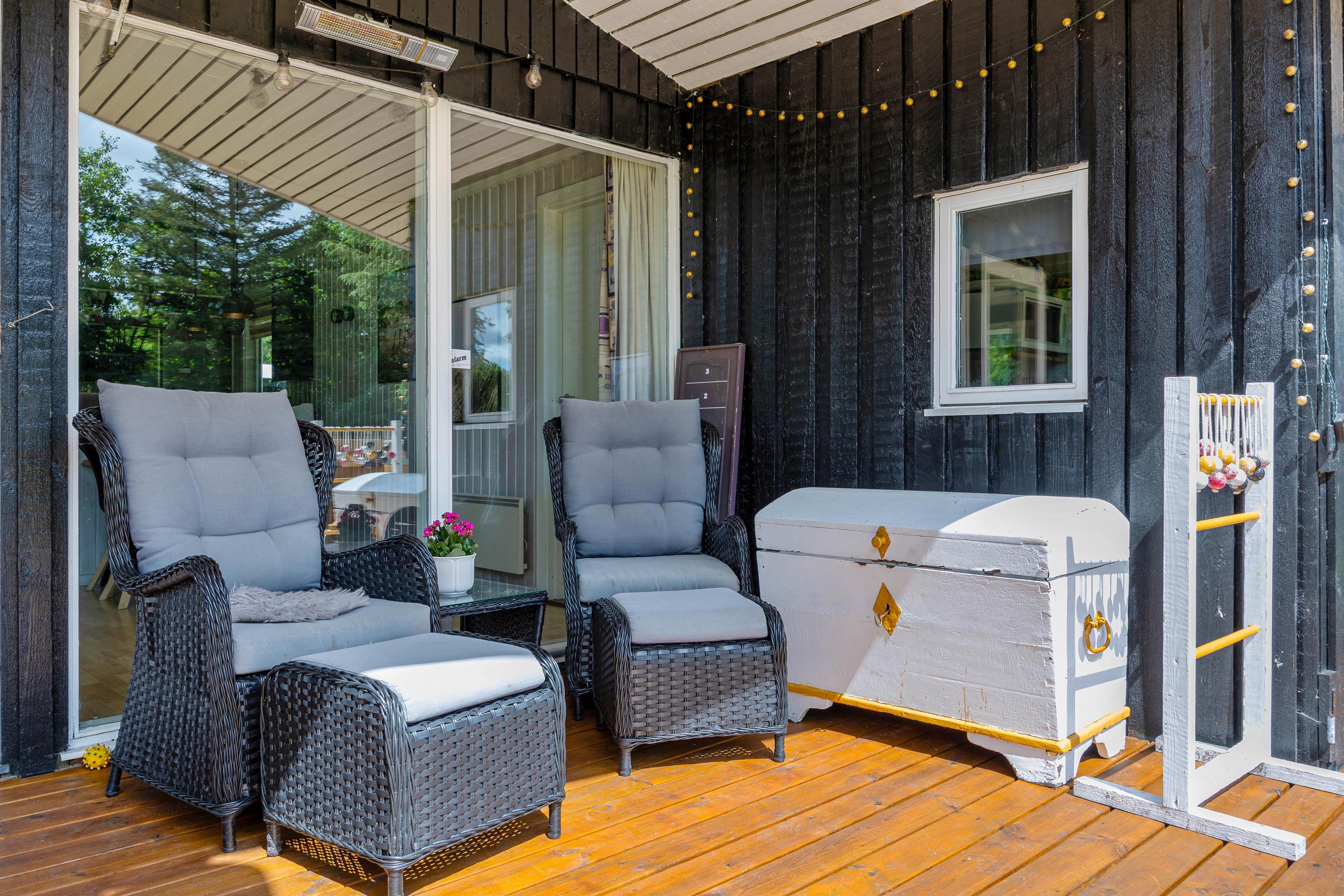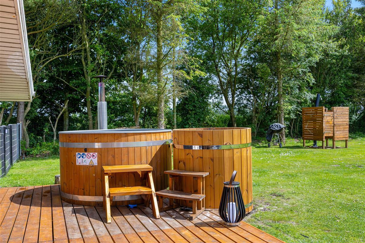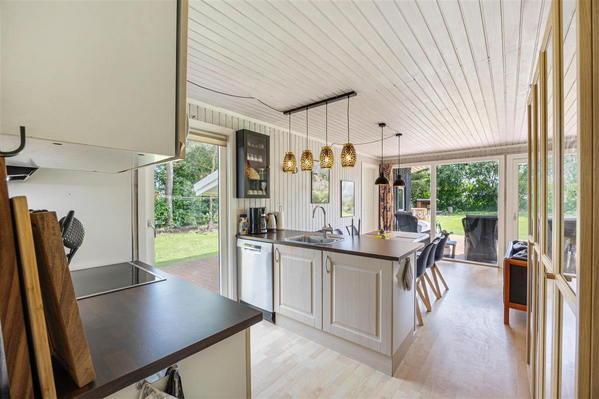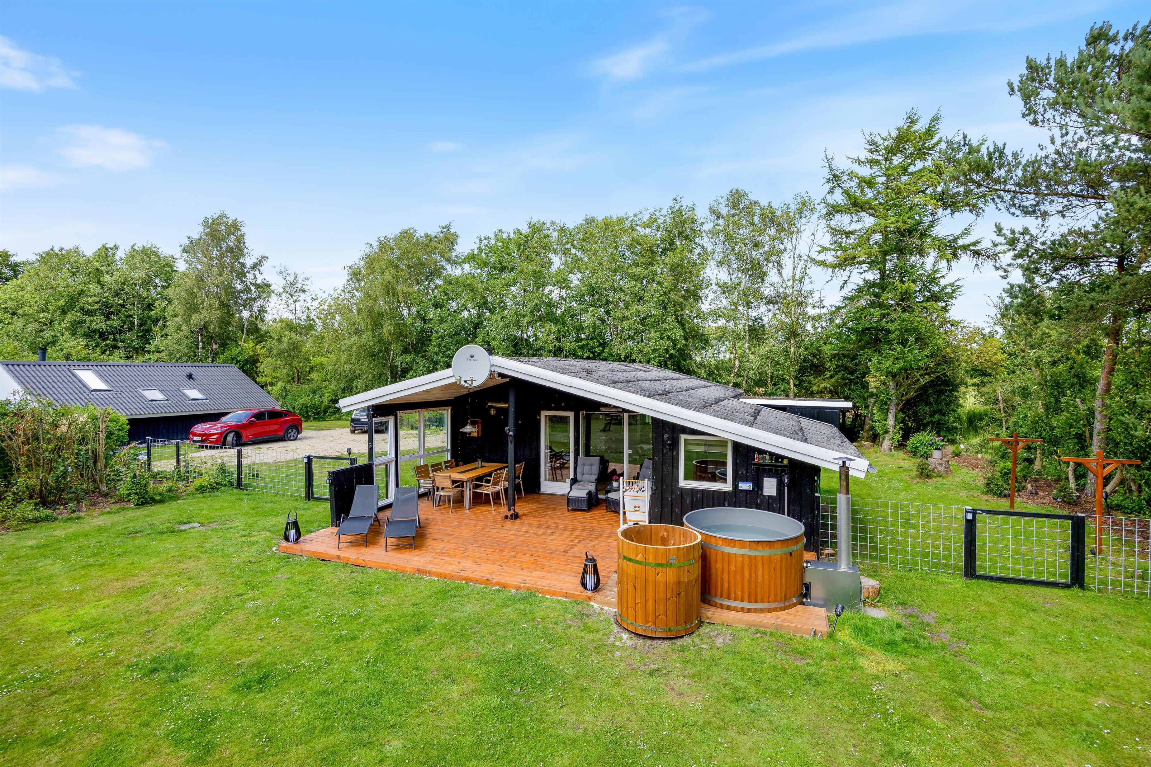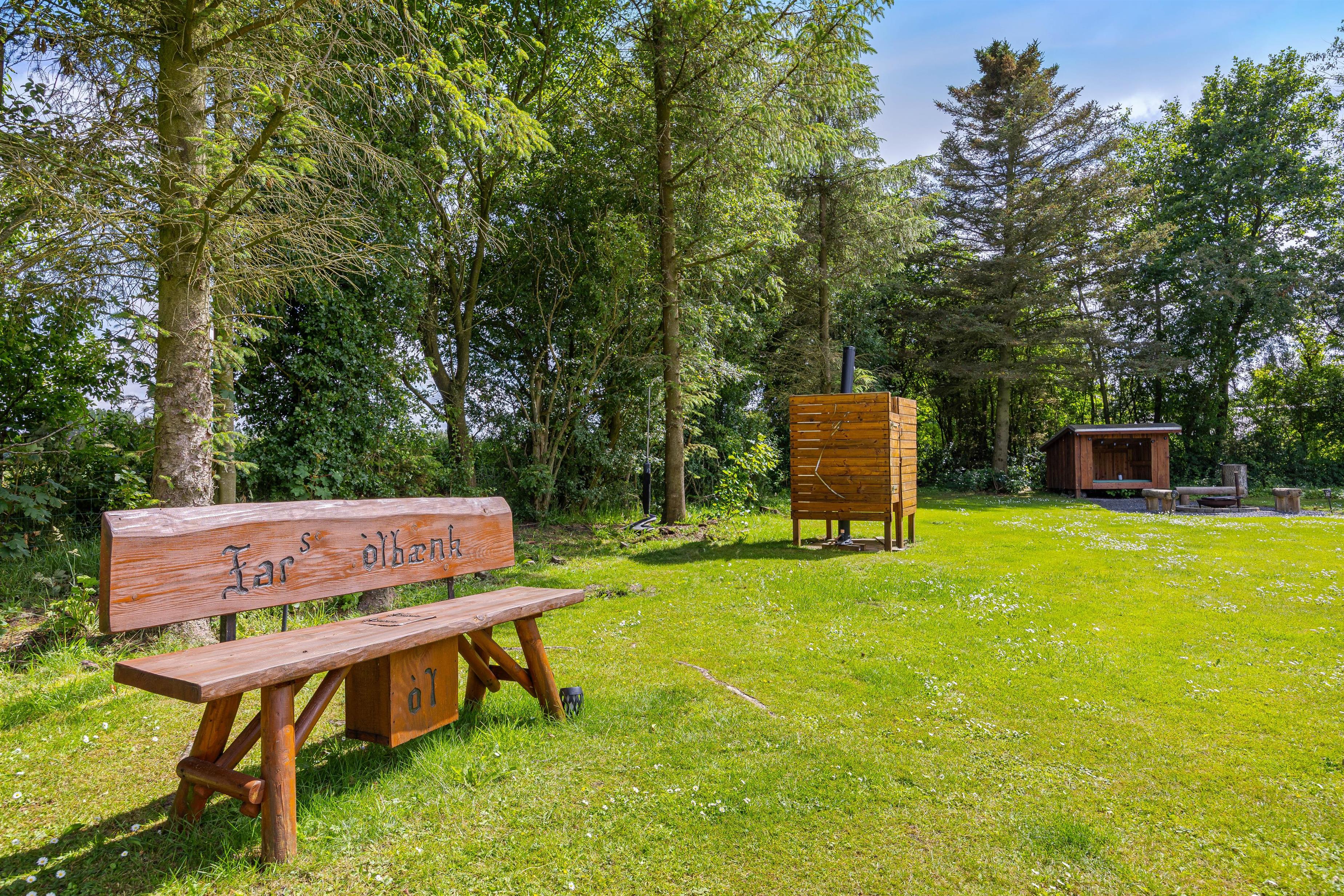 The holiday home is equipped with everything you need for a relaxing stay. The kitchen includes a dishwasher, and there is also a washing machine, making daily chores easy. A heat pump, together with the wood-burning stove, ensures a comfortable indoor temperature all year round. The bathroom is both functional and beautifully designed, with floor heat that feels luxurious underfoot. After a long day, you can unwind in the delightful hot tub or refresh yourself under the outdoor shower.
