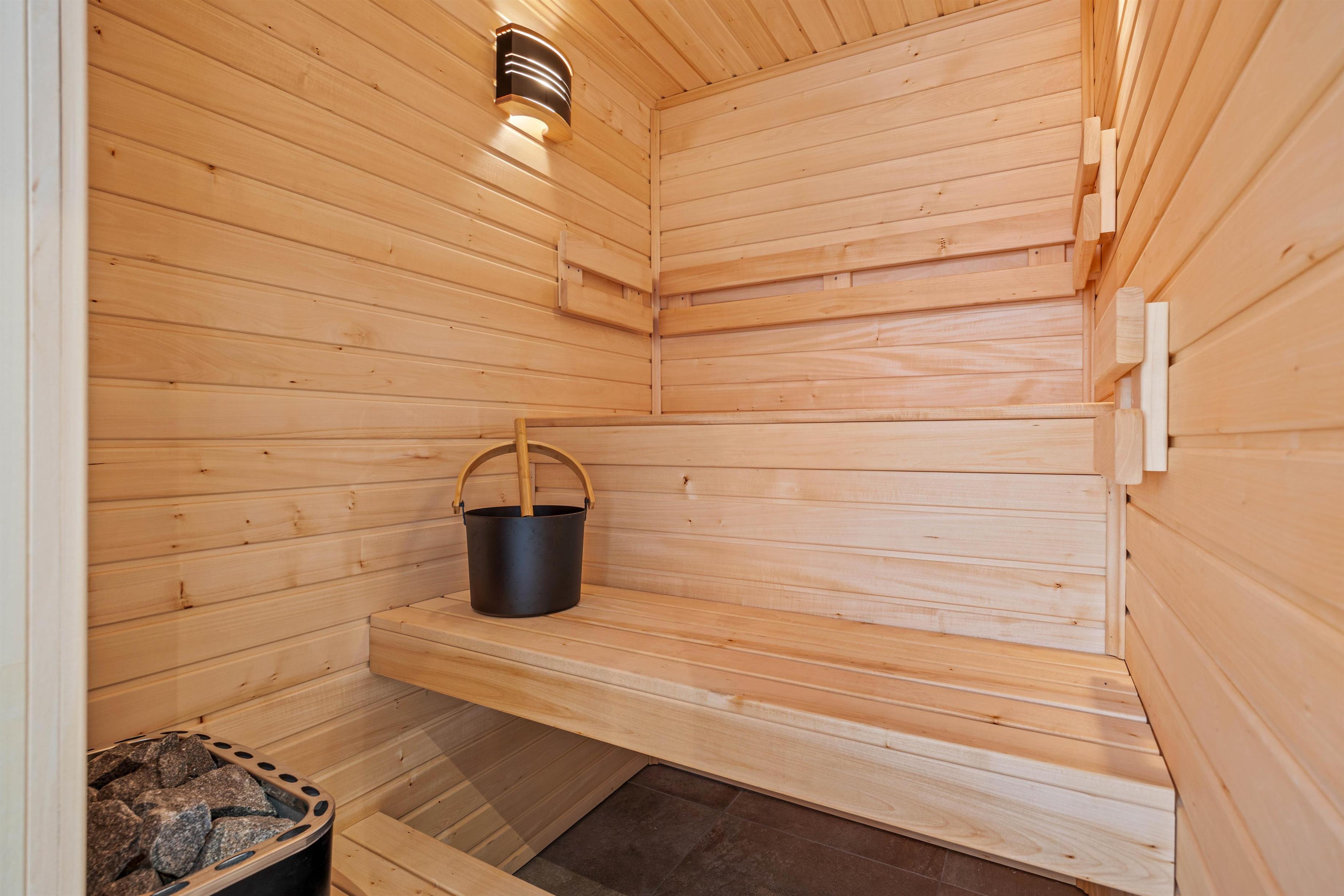 A true highlight of the outdoor area is the outdoor spa, accommodating up to six people and offering pure luxury. Sink into the warm water and let stress and everyday worries fade away as you enjoy the peaceful natural setting. The outdoor surroundings invite calm moments, active play, and ultimate relaxation.