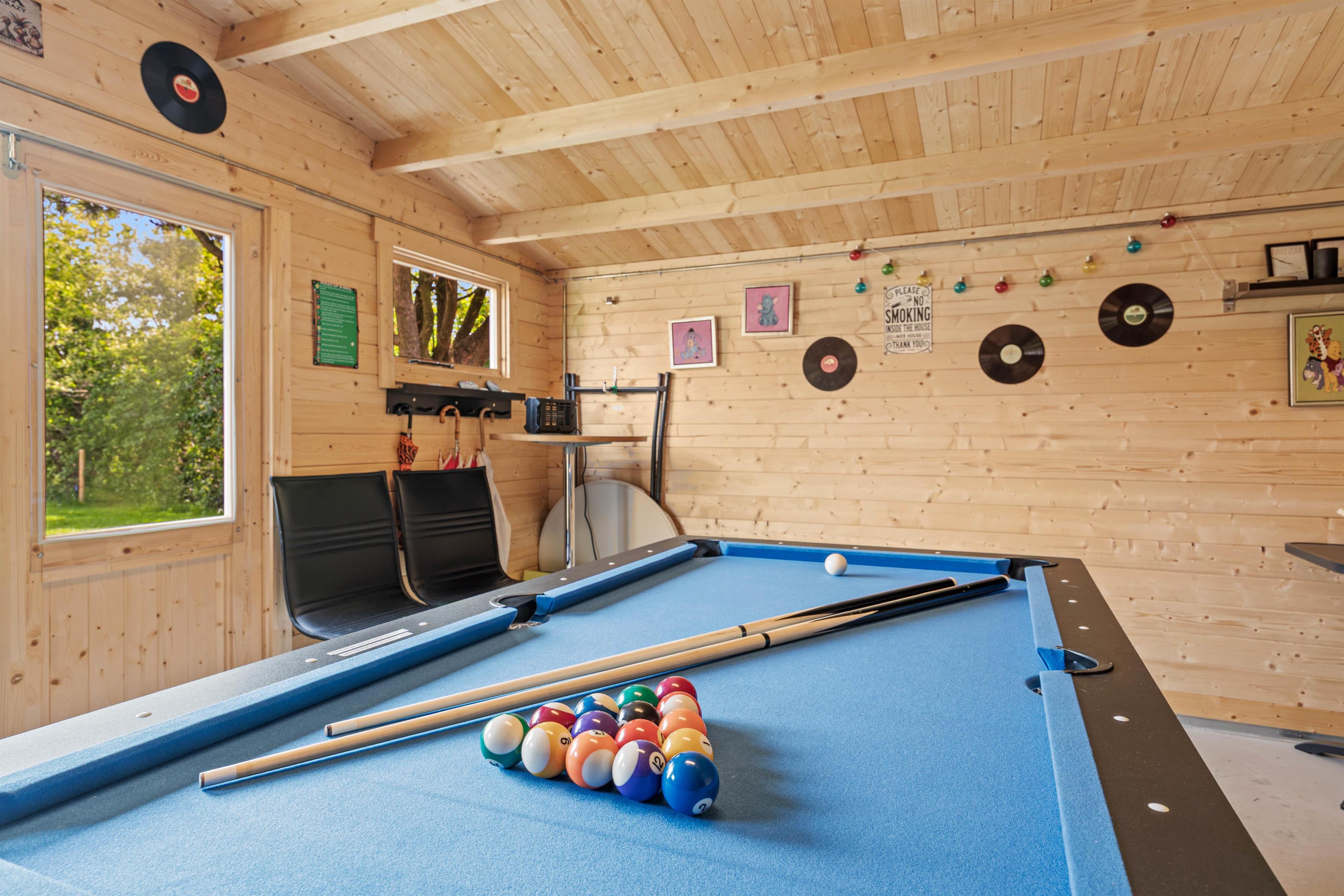 For sports enthusiasts, the outdoor area at Blomstervangen 46 offers even more: a football goal and basketball hoop invite exciting games and activities. Additional leisure facilities can be found in the activities building outside. From January 2025, it will feature a pool table that can also be used for table tennis, plus a dartboard. The pool table can be converted for board games by placing a board on top – you'll also find a wide selection of games in the cabin.