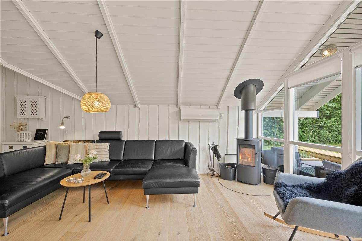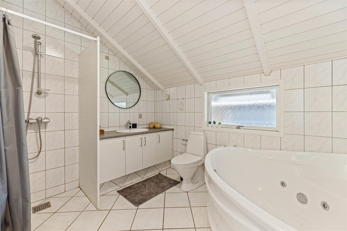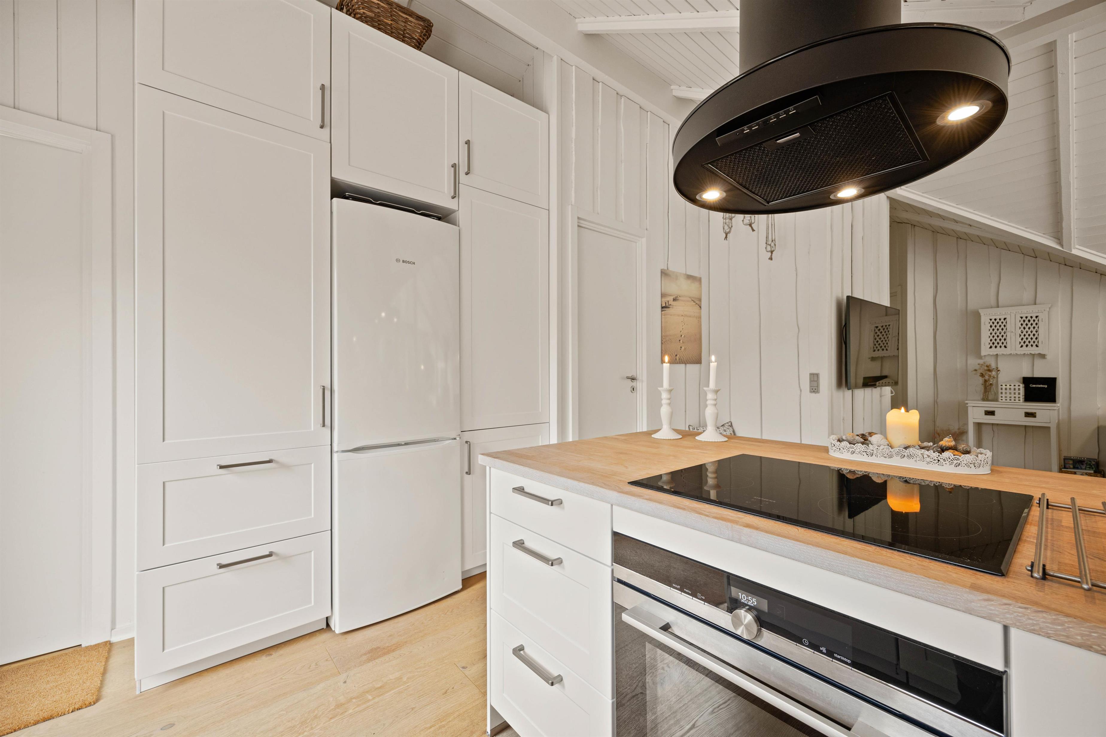 The holiday home at Fyrrelunden 40 features three bedrooms: two with double beds and a third with twin beds. For added comfort, the bathroom is equipped with underfloor heating, and after a long day of activities, there's nothing better than relaxing in the private sauna or unwinding in the two-person hot tub.