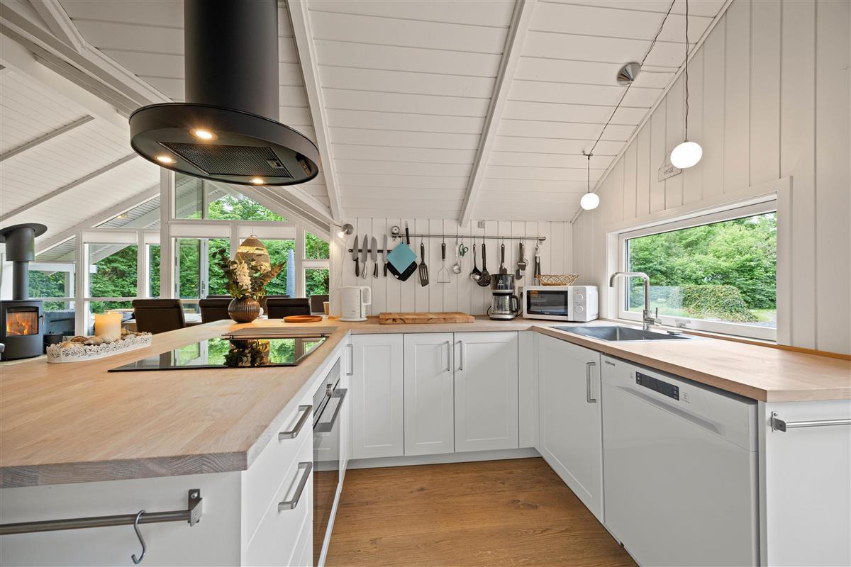 A wood-burning stove in the living area provides cosy warmth and a comfortable atmosphere, especially during the cooler months. Read a good book or stream series and films via Google Chromecast. The kitchen flows seamlessly into the open-plan living and dining area and offers everything you need to prepare delicious meals, including a dishwasher to make light work of the cleaning up.