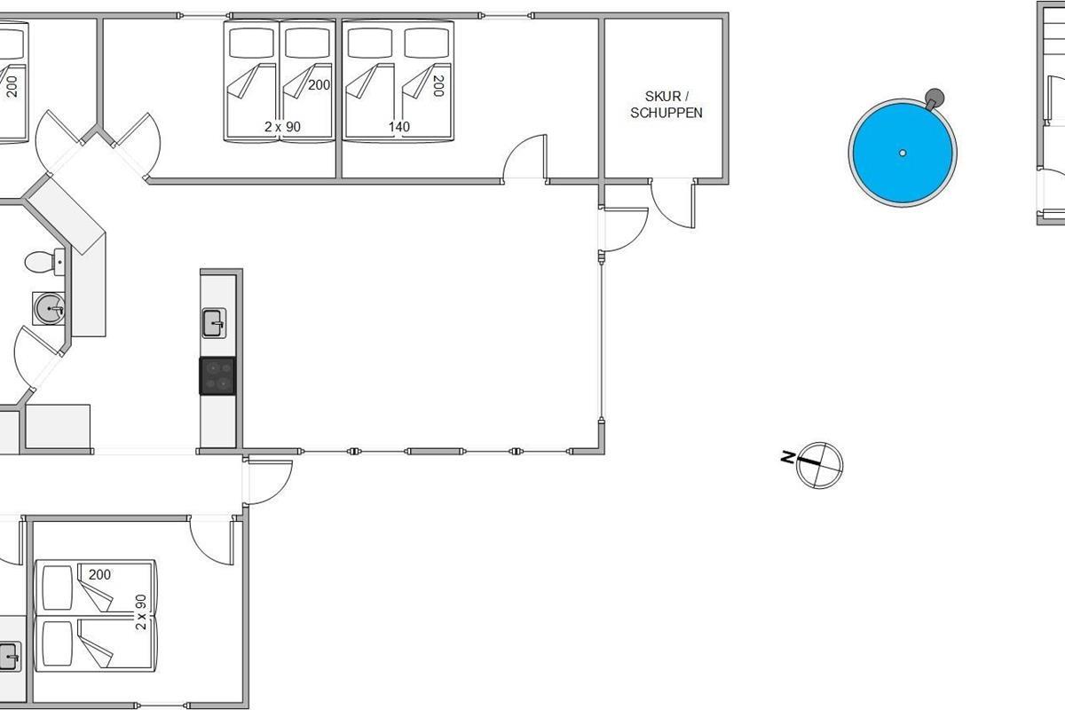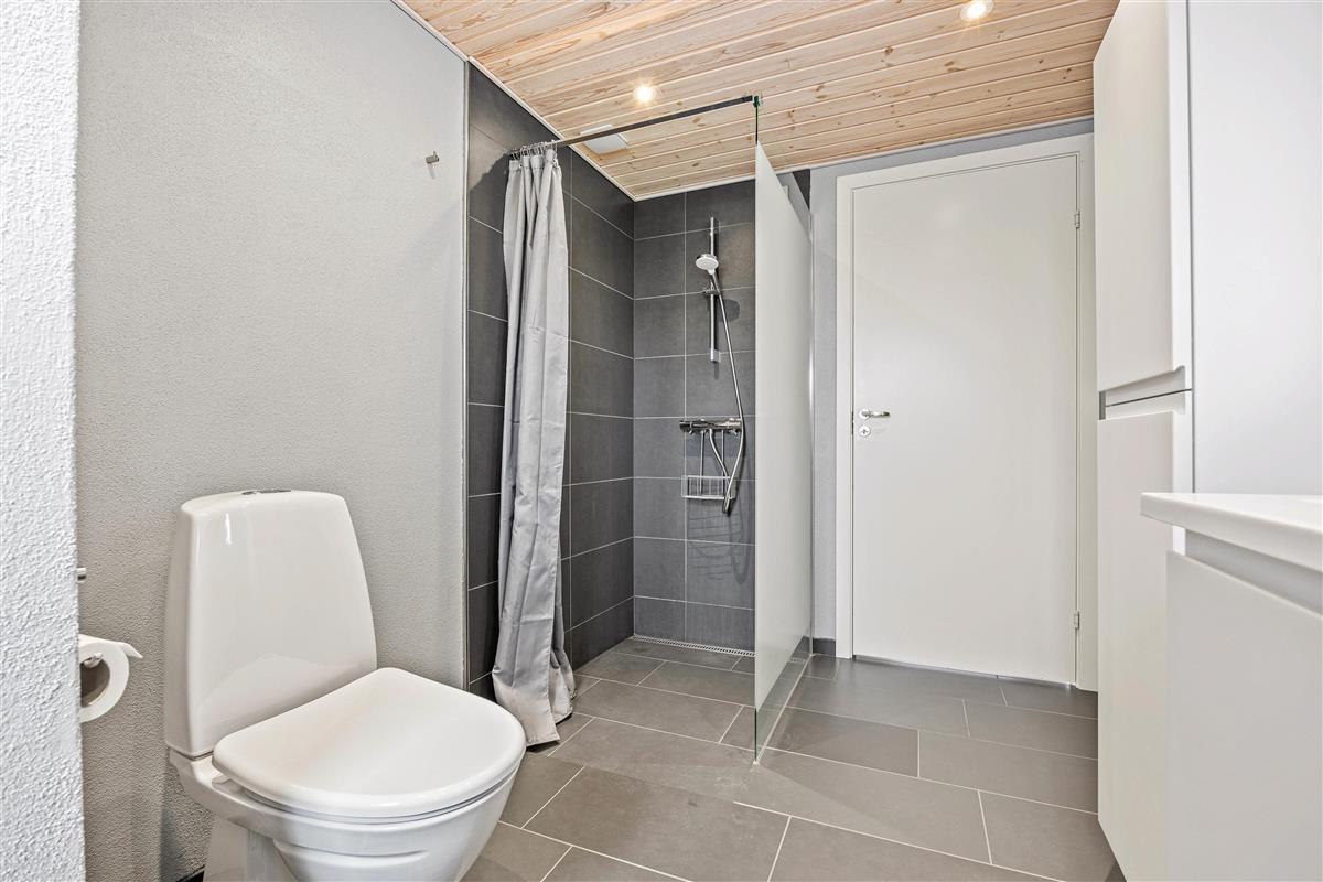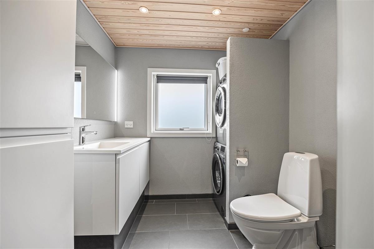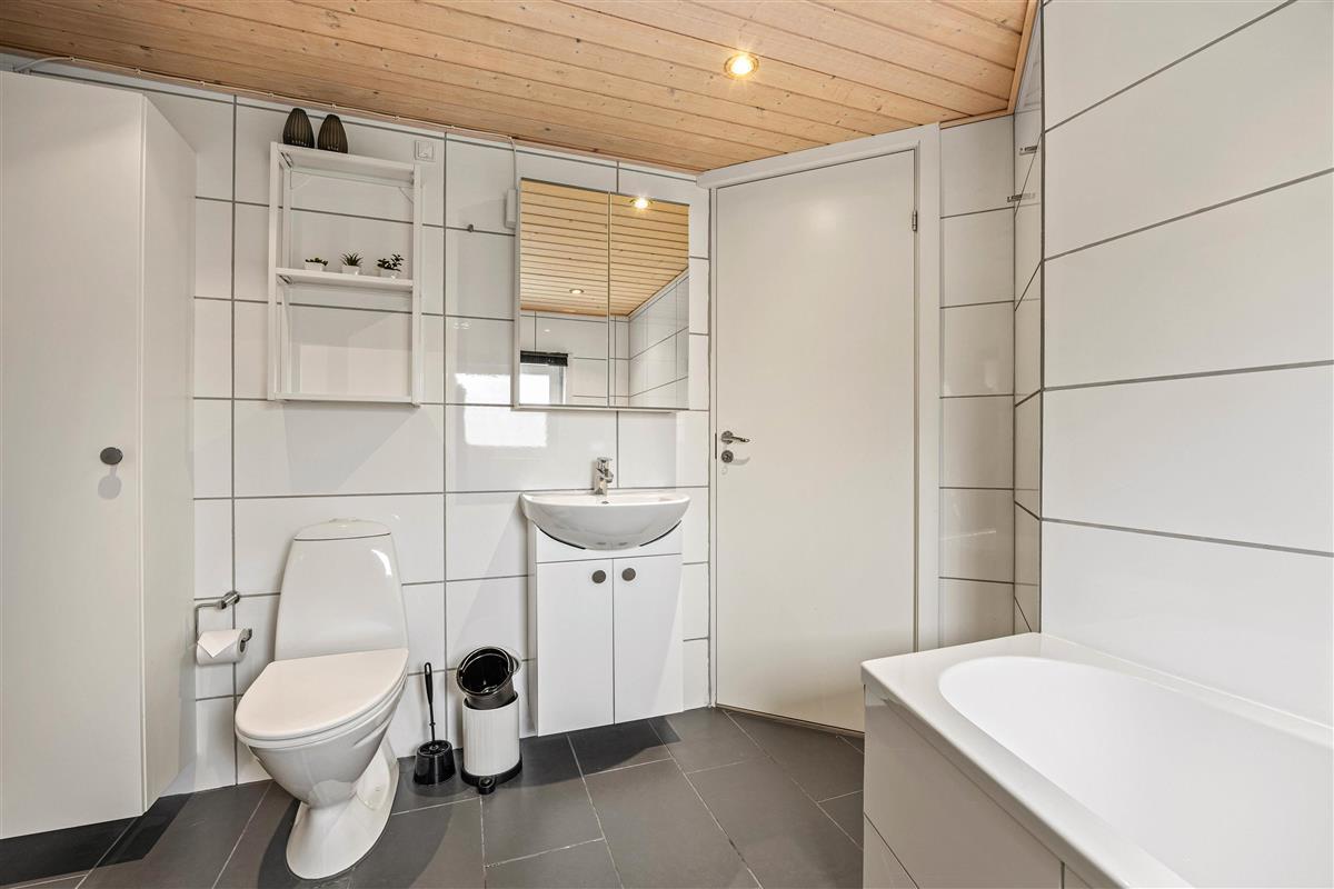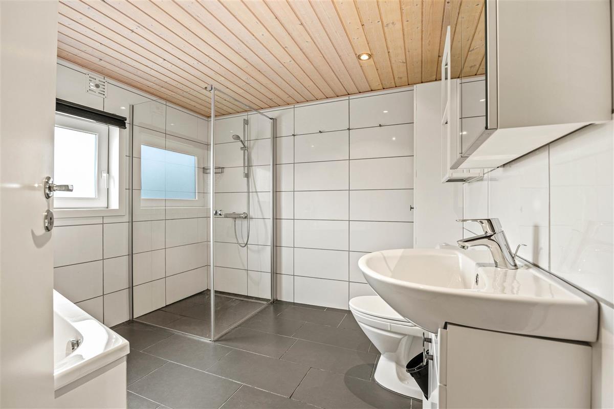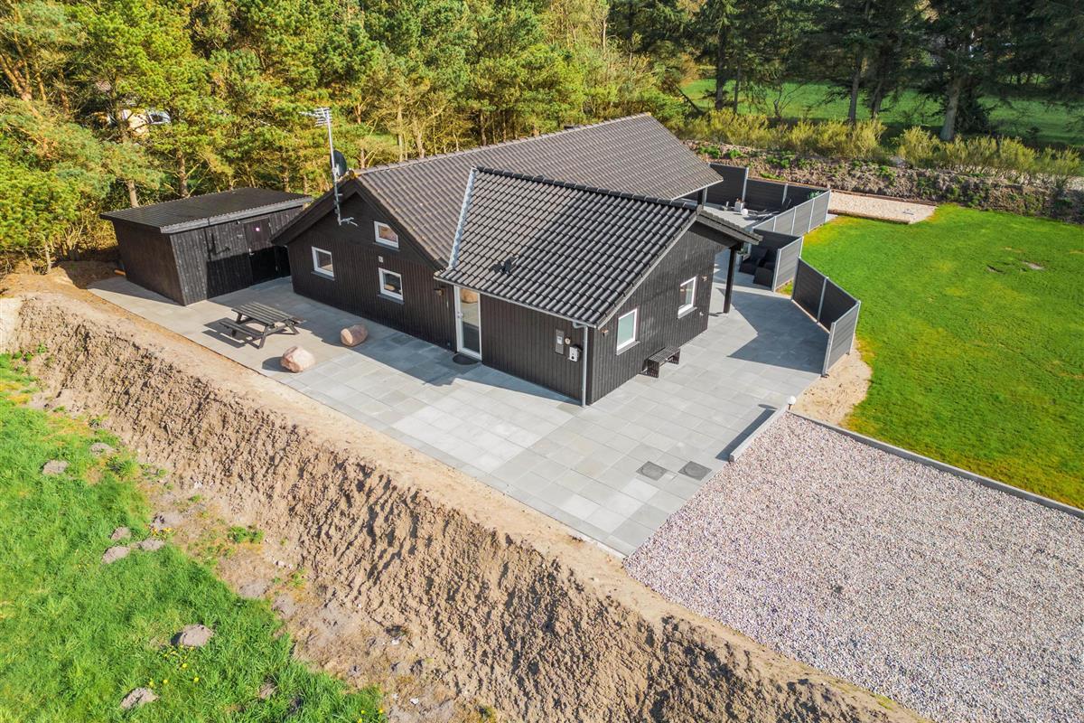 The natural grounds of the holiday home at Blomstervangen 70 provide plenty of space for children to play and adults to relax. The boccia court is ready for one game or another. On the private terrace, which offers undisturbed outdoor moments, you can enjoy your morning coffee or end the day with a lovely barbecue. During changeable weather, you can retreat to the covered terrace section.