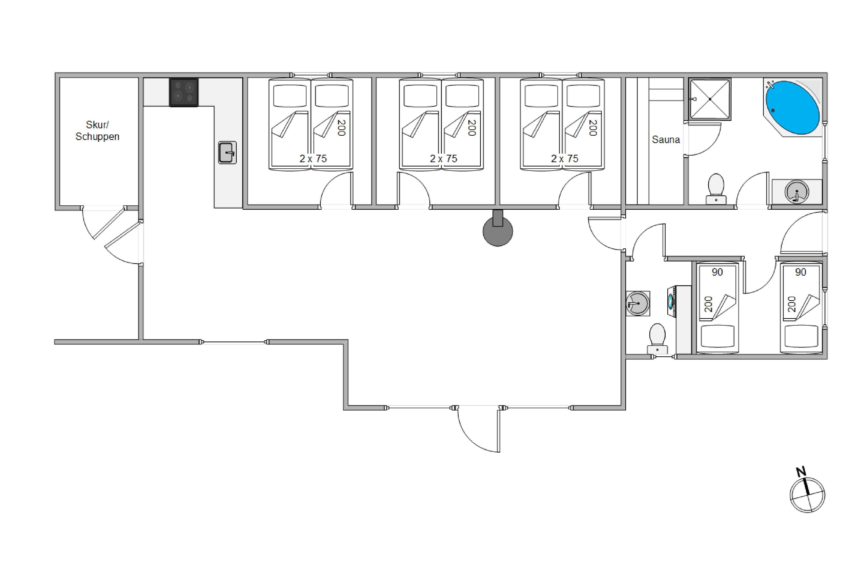 With 105 square metres of living space, comprising 4 bedrooms with 3 double beds and 2 single beds, this holiday home offers ample room for the whole family or a group of friends. The bathroom and additional guest toilet ensure comfort and privacy during your stay.