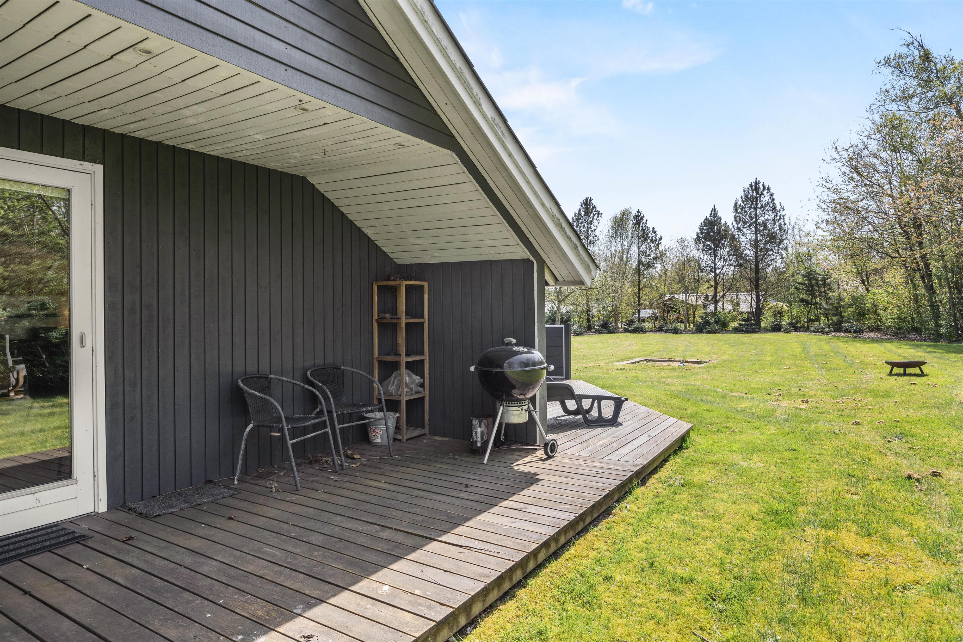 The 1,650-square-metre plot with partially enclosed terrace and sandpit provides plenty of space for outdoor activities and a secure play area for children and your dog. Just 400 metres away you'll find a small shop and mini-golf course, while the surrounding cycling and walking paths invite exploration. The nearest beaches are just 11 km away, a short drive by car.