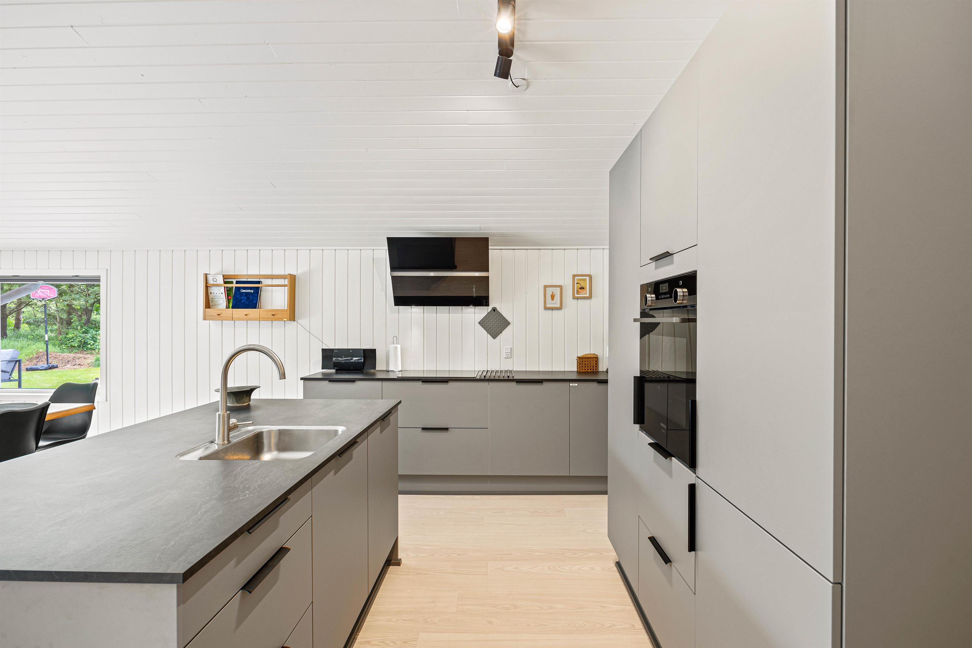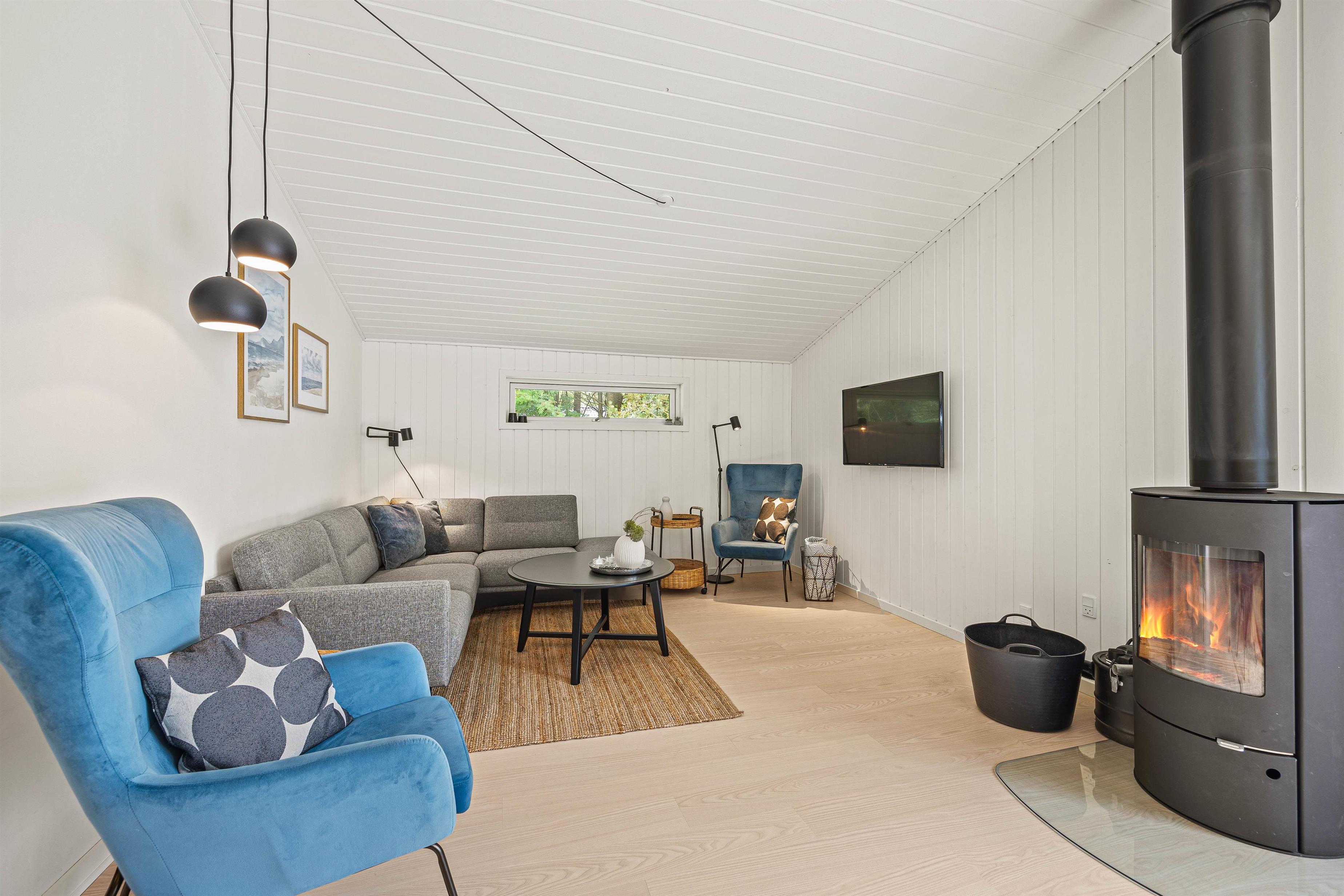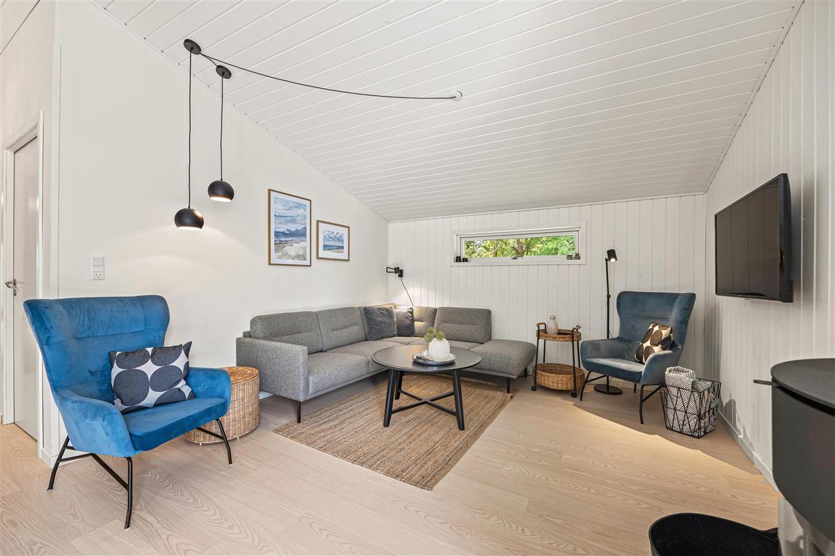 The generous lawn at Blomstervangen 78 offers plenty of space for all kinds of activities and is sure to be popular with children. A swing set is ready to delight young visitors. The garden is also perfect for sunbathing or reading outdoors. An open terrace allows you to fully enjoy the fresh air and natural sounds of the surroundings. Here you can start your day with a delicious outdoor breakfast or end it with a family barbecue.