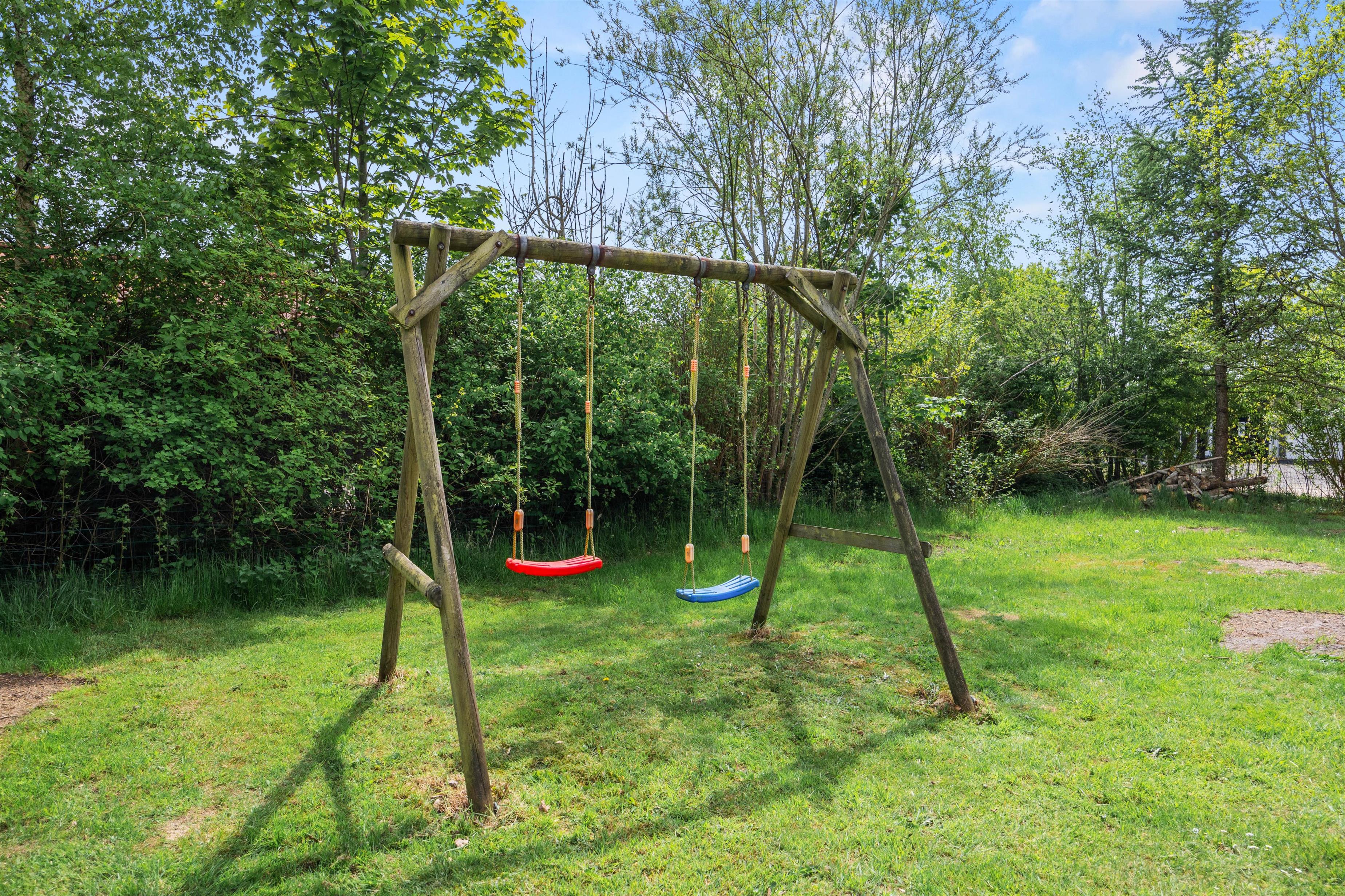 The property sits on a 1,519 m² plot, providing ample space for both relaxation and play. The large lawn is perfect for games and activities for children and adults alike, while the little ones will especially enjoy the sandbox and swing, offering endless fun.