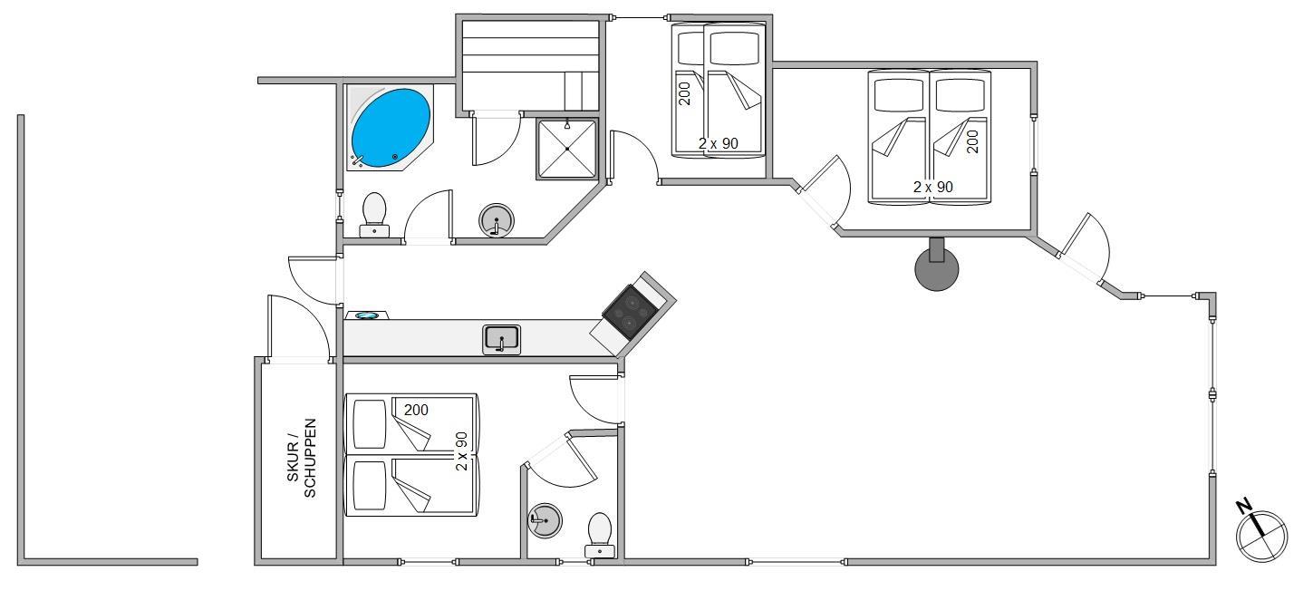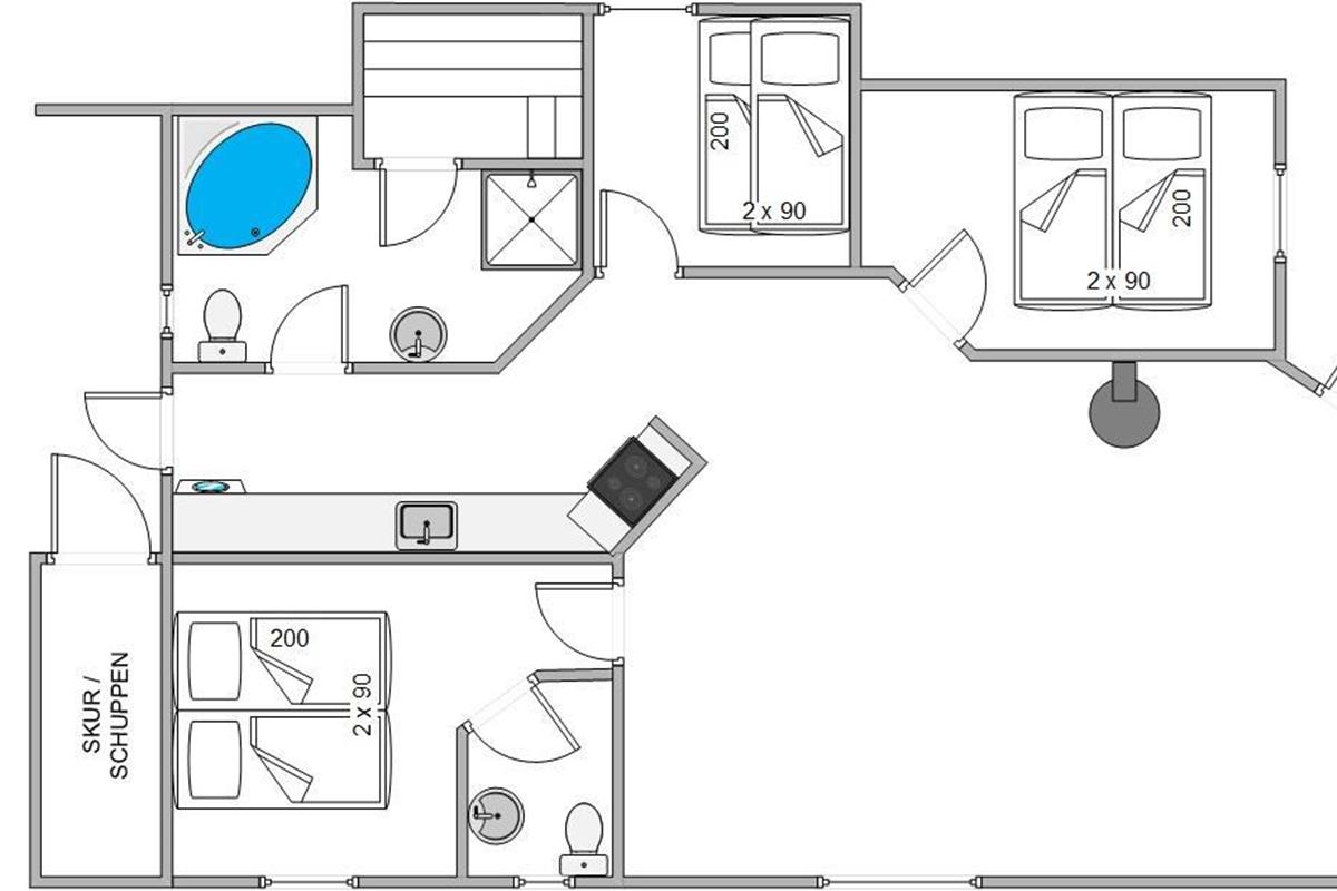 How about unwinding in the sauna after a long day of exploring? Or enjoying a soothing session in the whirlpool? Both are available for your complete enjoyment in your holiday home. For those chilly Danish nights, the heat pump quickly and efficiently maintains a comfortable temperature throughout. The bathroom features underfloor heating, and laundry is no problem with both a washing machine and tumble dryer at your disposal.