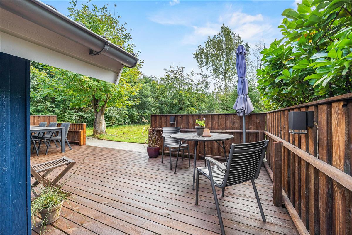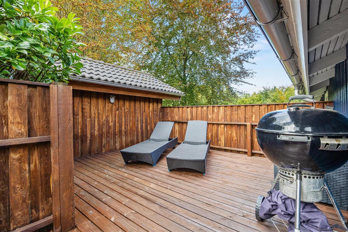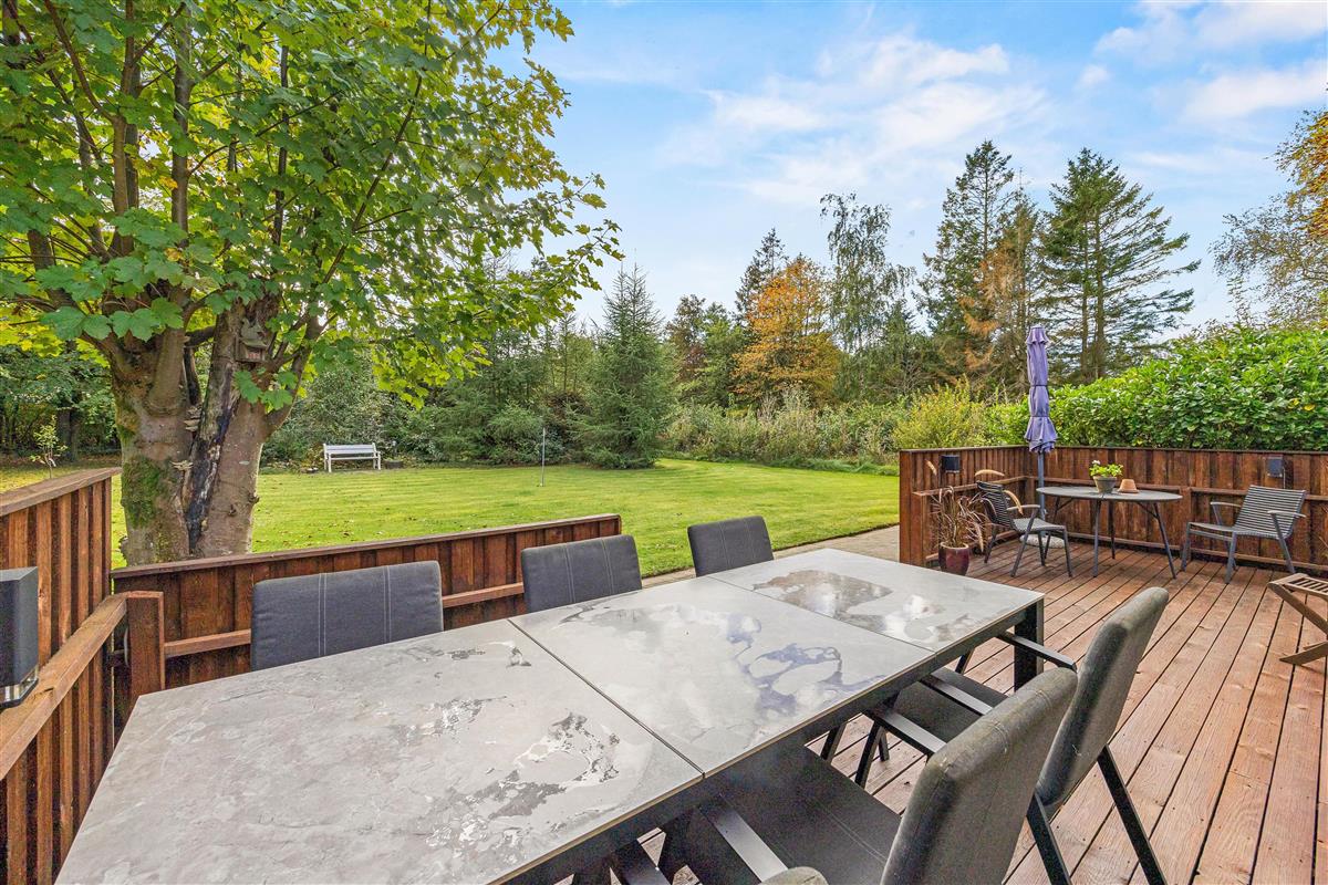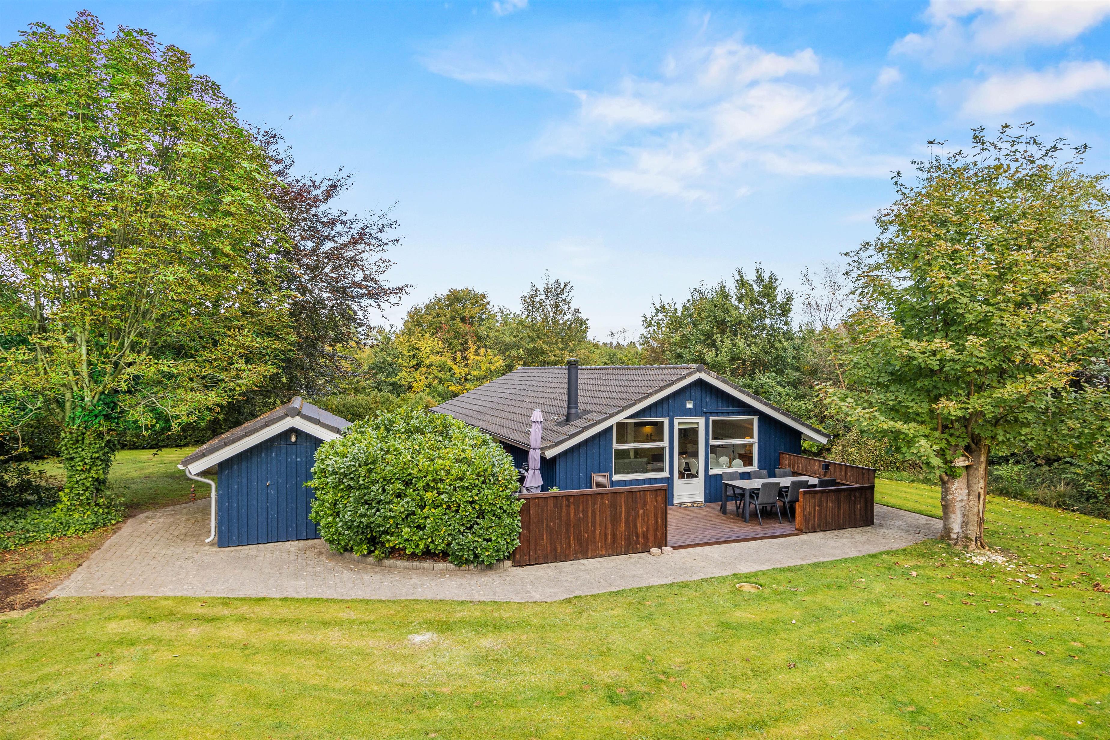 The holiday home at Nordskrænten 7 is surrounded by spacious lawn grounds, offering plenty of room for outdoor activities. Here you can enjoy the tranquility of the surrounding nature while relaxing on the open terrace or playing in the garden.