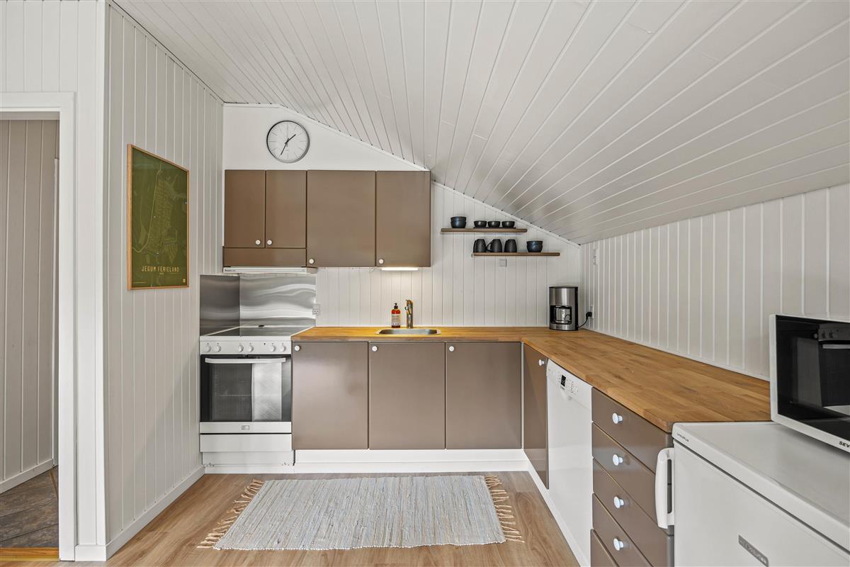 The living space of this 3+ star holiday home combines cosiness with modern comfort. The central wood-burning stove provides welcoming warmth on cool evenings, while the sofa invites you to relax. Large windows let in plenty of natural daylight and offer wonderful views of the surrounding nature. An energy-efficient air-to-air heat pump ensures the room temperature remains pleasant throughout the year. The kitchen is functionally and modernly equipped, making it ideal for holidaymakers who enjoy cooking. A dishwasher takes care of the washing up while you spend time with your loved ones in the dining area, which offers ample space for shared meals.