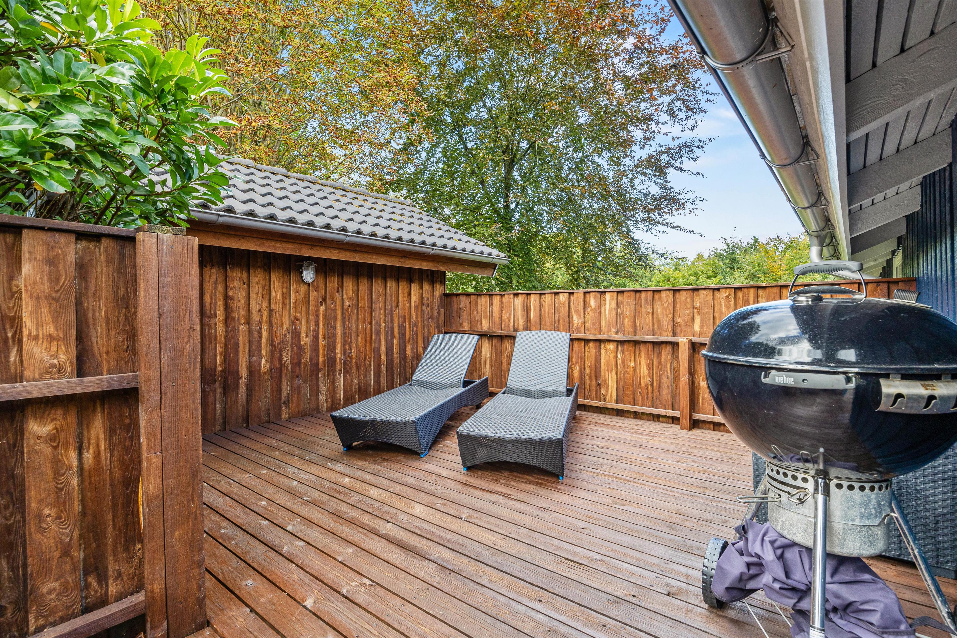 For sociable evenings, there's a barbecue, perfect for preparing delicious meals outdoors. Additionally, there's a sheltered terrace offering extra protection and privacy. Here you can enjoy the fresh air in a protected space, even when the weather isn't entirely cooperative.
