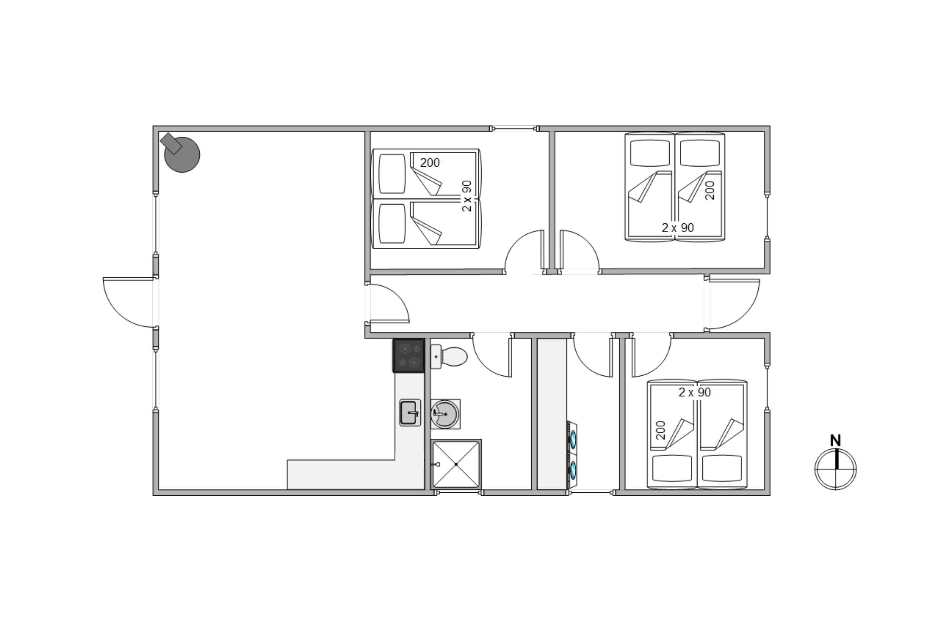 The holiday home at Nordskrænten 7 has 3 bedrooms, each fitted with a double bed, and the bathroom features underfloor heating for extra comfort, particularly on cooler days.