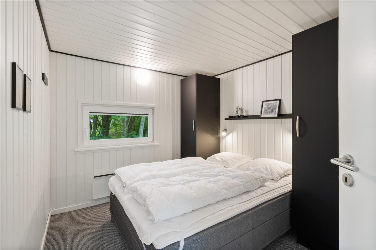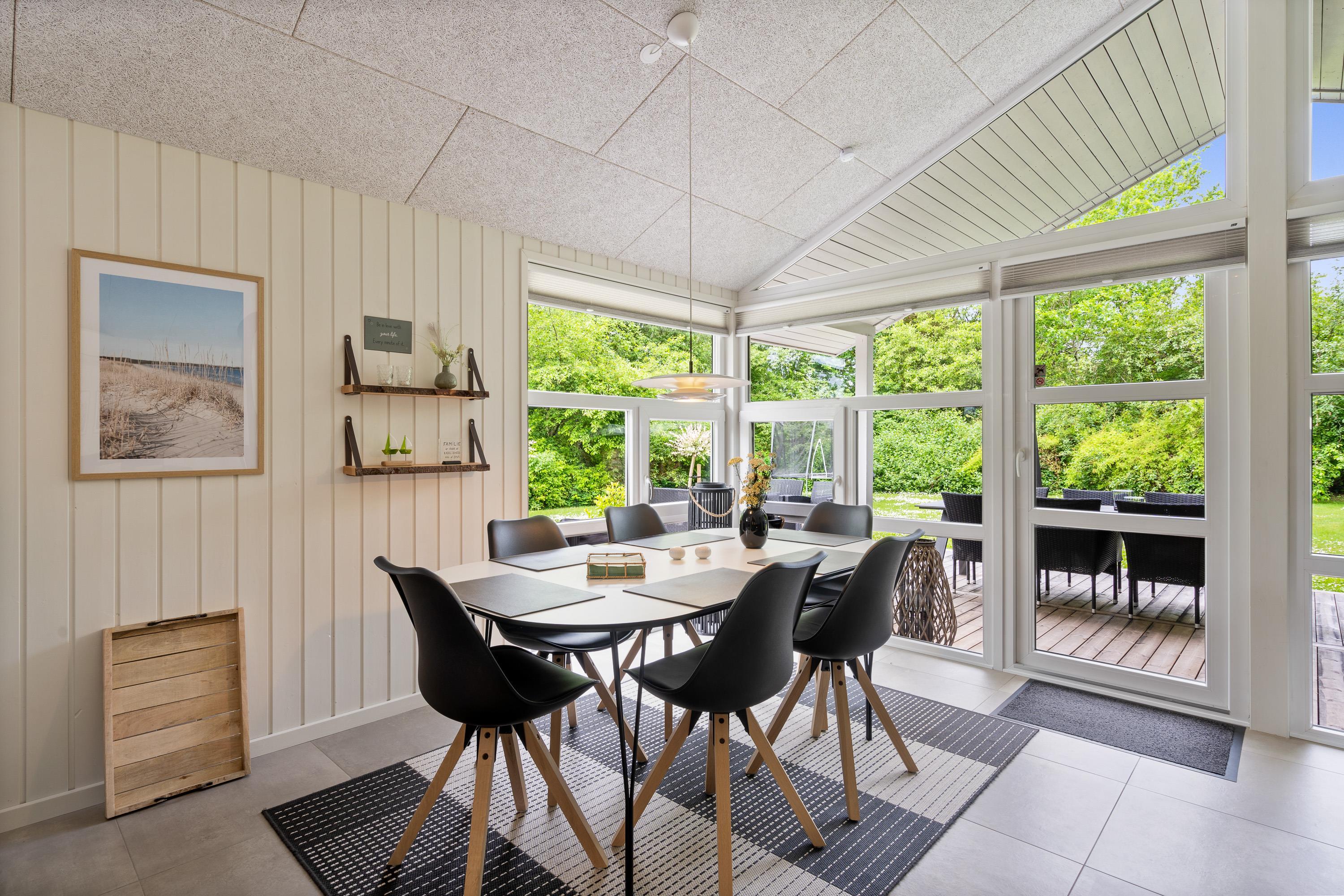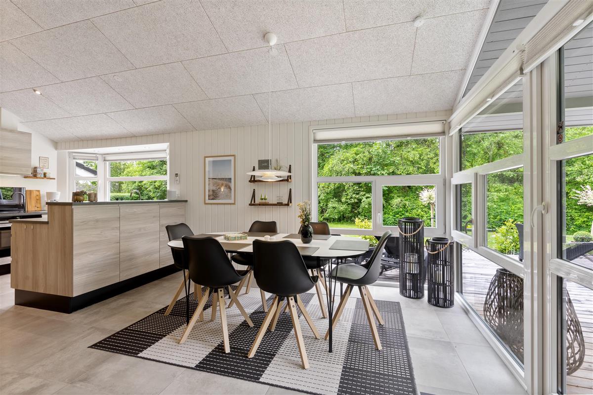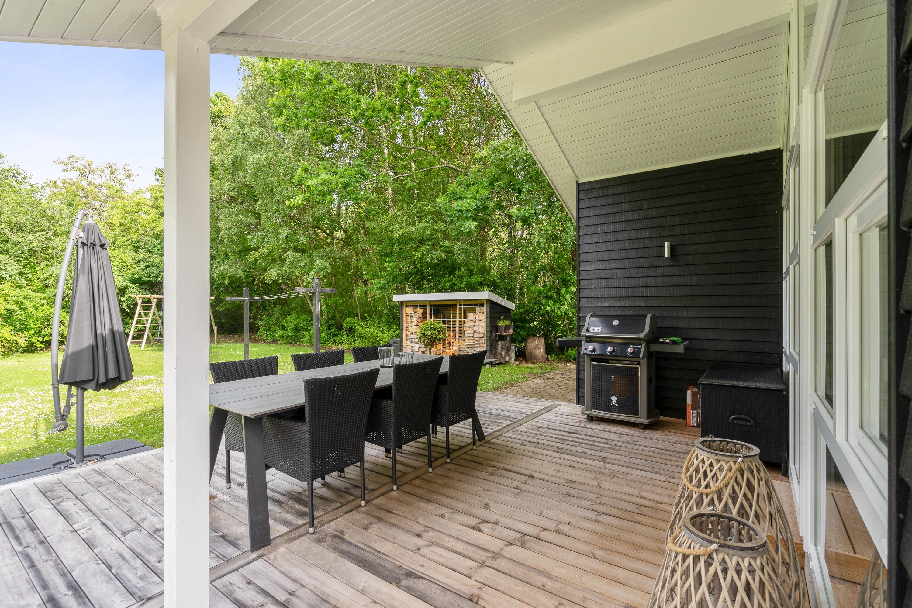The wood-burning stove in the living room ensures cosy evenings, while the large sofa invites you to unwind. The large windows provide beautiful views of the natural surroundings and allow plenty of natural daylight. It's the perfect spot for reading, playing games or simply enjoying the peace and quiet. The kitchen offers all modern conveniences, including a practical dishwasher that makes cleaning up effortless. There's ample space for cooking family meals, and the open-plan layout ensures that whoever's cooking can still participate in conversations and shared moments.