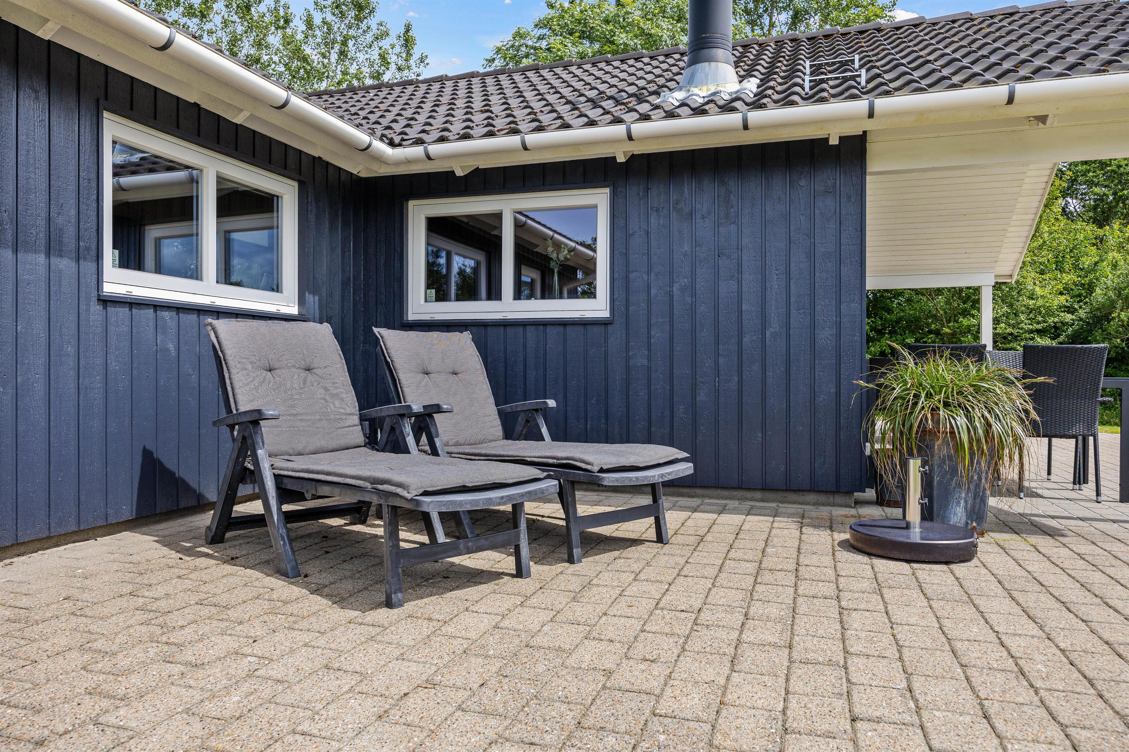 The holiday home features both open and covered terraces, allowing outdoor enjoyment regardless of weather. The open terrace is perfect for making the most of sunny days, enjoying fresh air, or reading a good book. During changeable weather or warm summer evenings, the covered terrace provides an ideal spot for cosy gatherings with friends or family. A barbecue is also provided for sociable outdoor evenings.