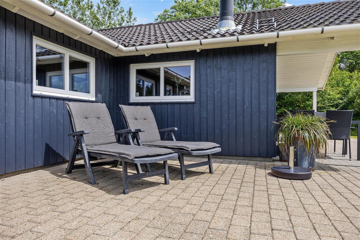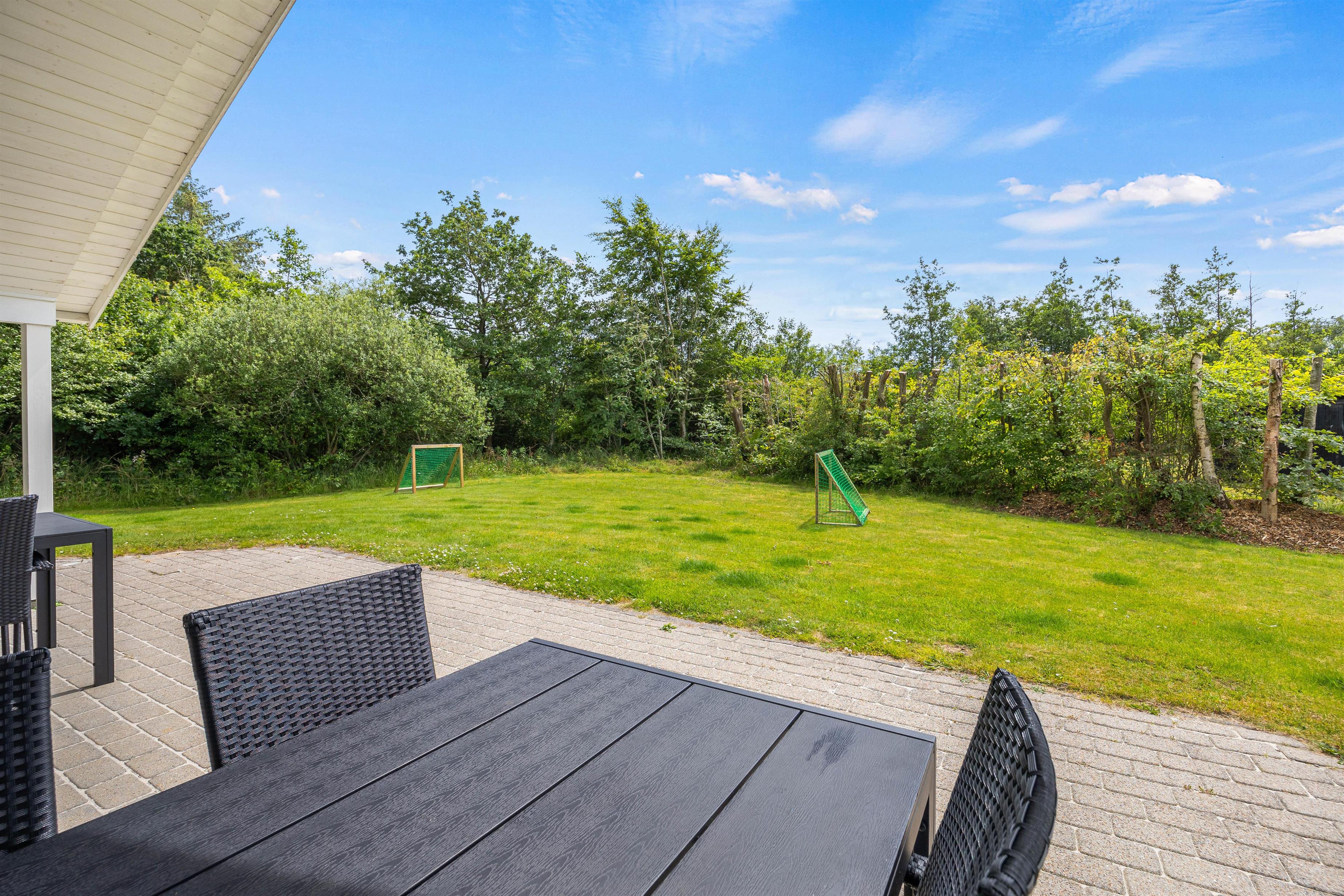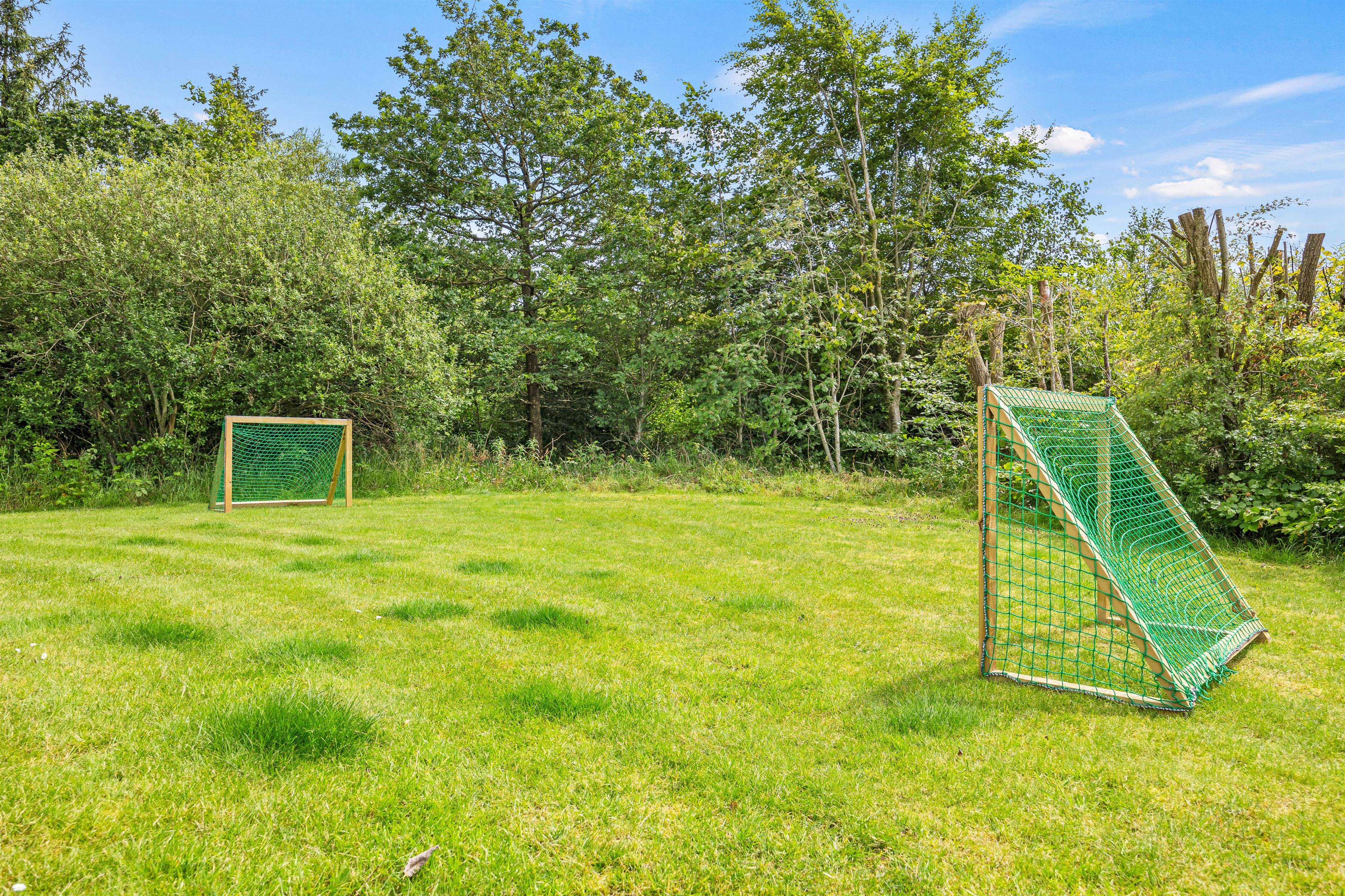 The outdoor area at Blomstervangen 96 offers various opportunities for relaxation and outdoor activities. Set within spacious lawn grounds, the garden invites both play and relaxation, perfect for adults and children alike.