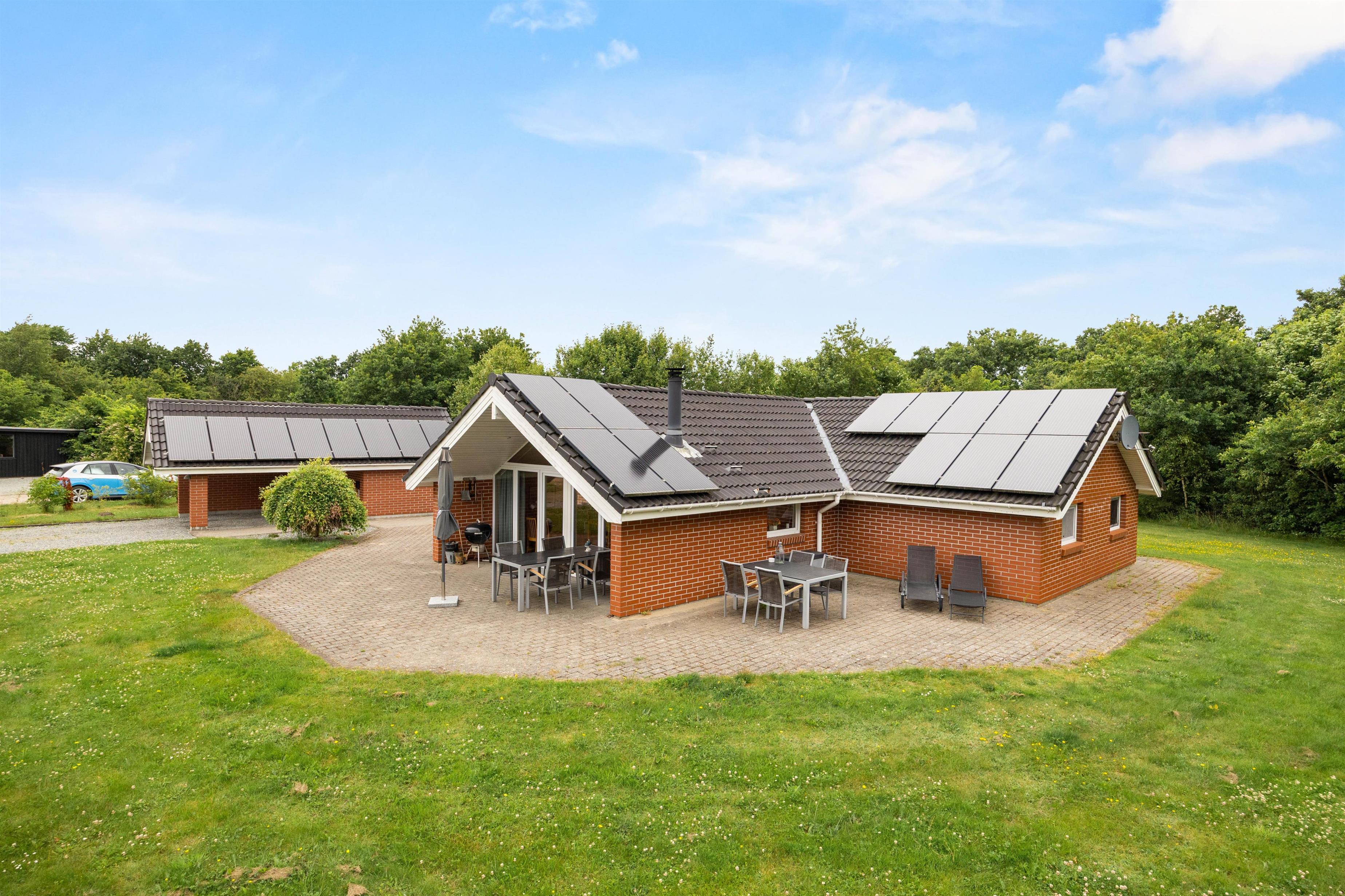 The lawn provides plenty of space for outdoor games and activities, making it perfect for children to play freely. Practical touches include a carport for vehicle protection and an EV charging station, making it easy to keep your electric car ready for new excursions.