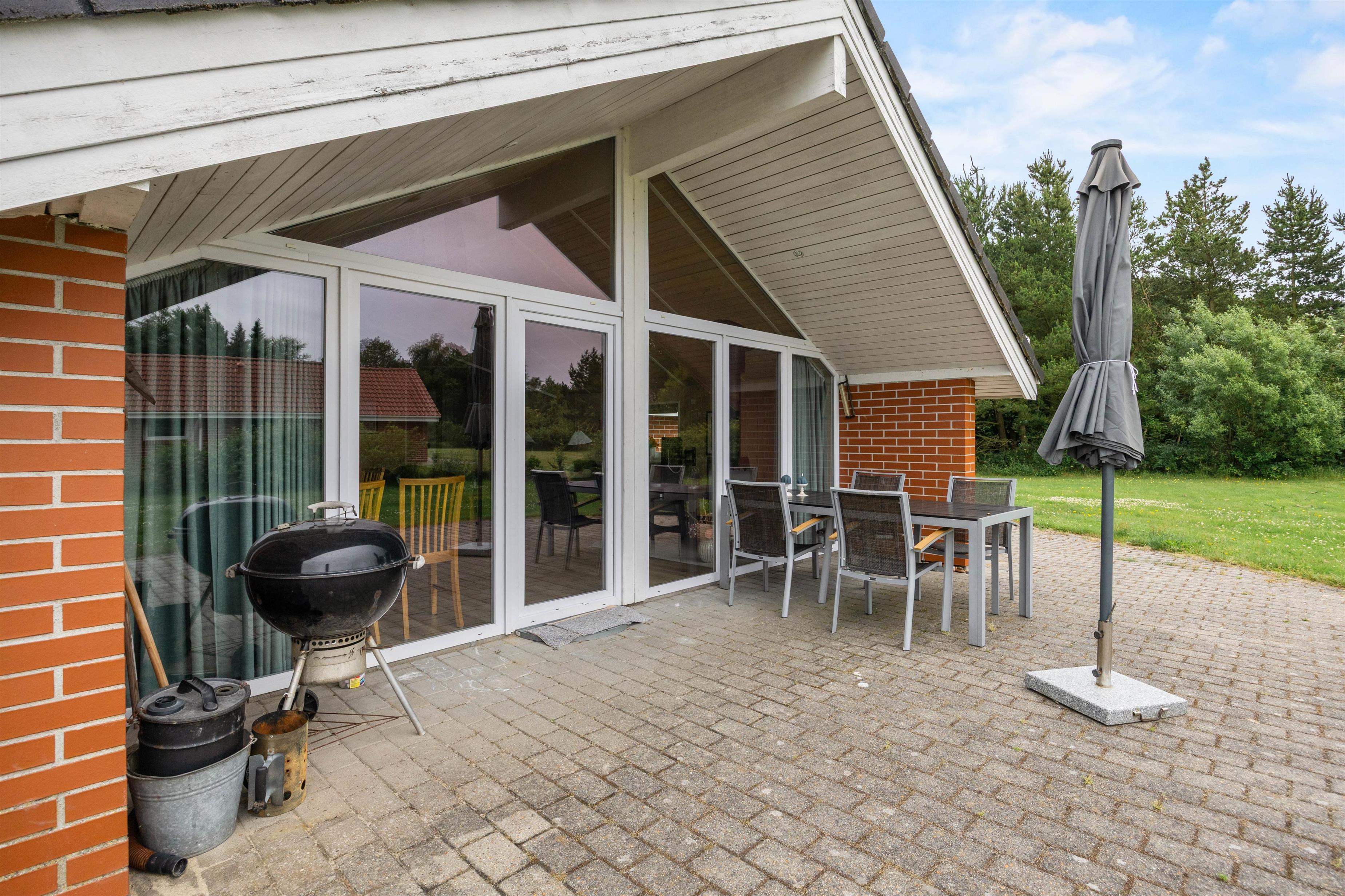 Step outside to find a versatile outdoor area perfect for relaxation and fun. Spend warm summer evenings cooking on the grill while enjoying the fresh air on the open or covered terrace. This setup allows you to choose the ideal spot to unwind, whatever the weather.