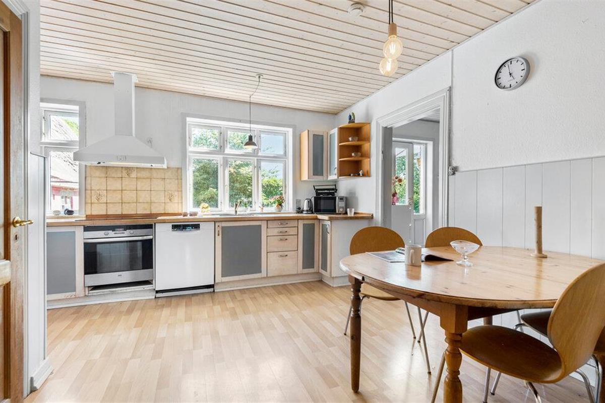 Gezelligheid en ontspanning wachten op je in je vakantiehuis in Jernved. Het charmante gebouw met zijn rustieke charme biedt de ideale uitvalsbasis voor je vakantie in deze idyllische regio. Begin de dag met een stevig ontbijt in de ruime, uitnodigende keuken met eettafel. Geniet van het uitzicht op de groene tuin terwijl je je dag plant. De gezellige woonkamer met zijn klassieke houtkachel nodigt je uit om je voeten omhoog te leggen en een goed boek te lezen of een film te kijken met het gezin. Laat je betoveren door de warme, uitnodigende sfeer van het huis.