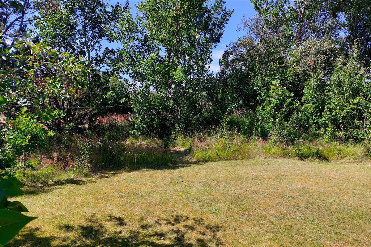 Stap vanuit de keuken naar buiten en geniet van een kopje koffie en de eerste zonnestralen op het natuurterrein.