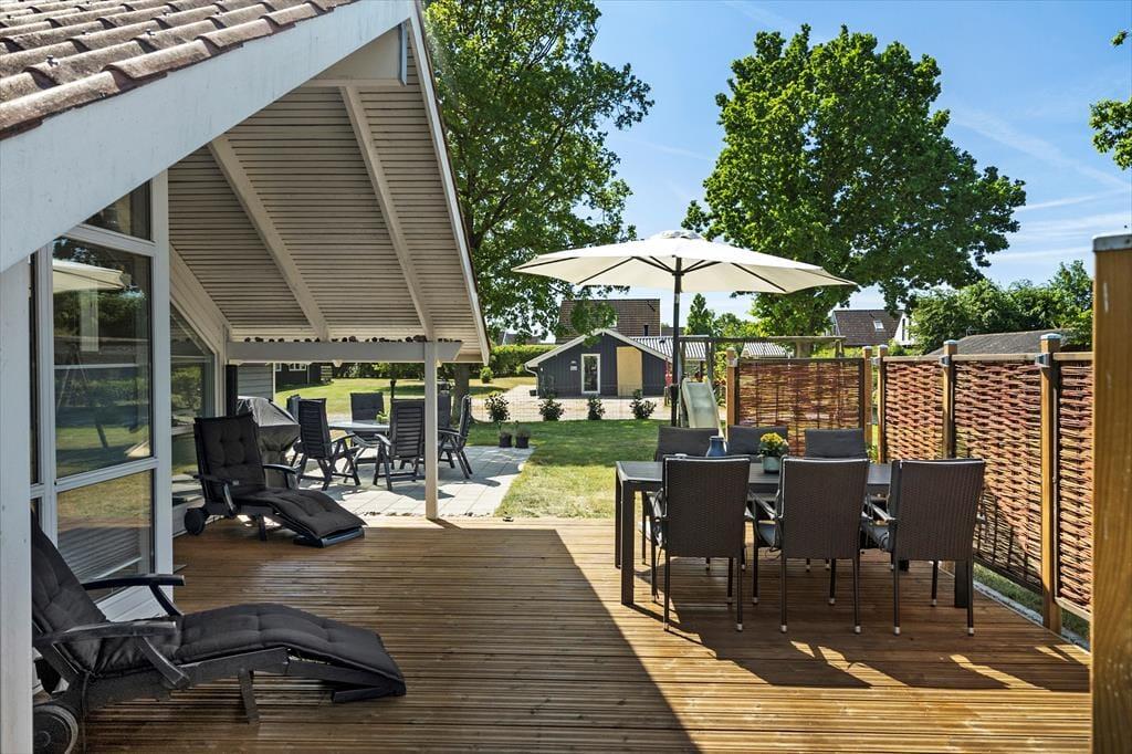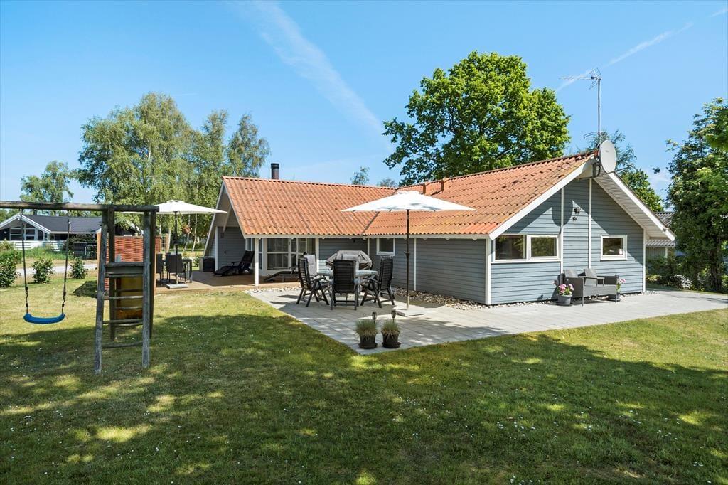 Im Garten, der sich rund um das Ferienhaus erstreckt, bieten sich Ihnen zahlreiche schöne Möglichkeiten, ein gemütliches Eckchen in der Sonne oder auch im Schatten zu finden. Die Terrassen des Hauses sind teils offen, teils überdacht. Diverse Gartenmöbel, Liegestühle und Sonnenschirme laden zu traumhaft erholsamen Stunden unter dem hohen, nordischen Himmel ein. Dank des schönen Gasgrills können Sie Ihre Mittag- und Abendessen wunderbar im Freien zubereiten und anschließend in geselliger Runde auf den Terrassen genießen. Der Garten bietet angenehm viel Platz zum Spielen und Umhertollen. Die jüngsten Urlauber dürfen sich zudem auf eine Rutsche und Schaukeln freuen.