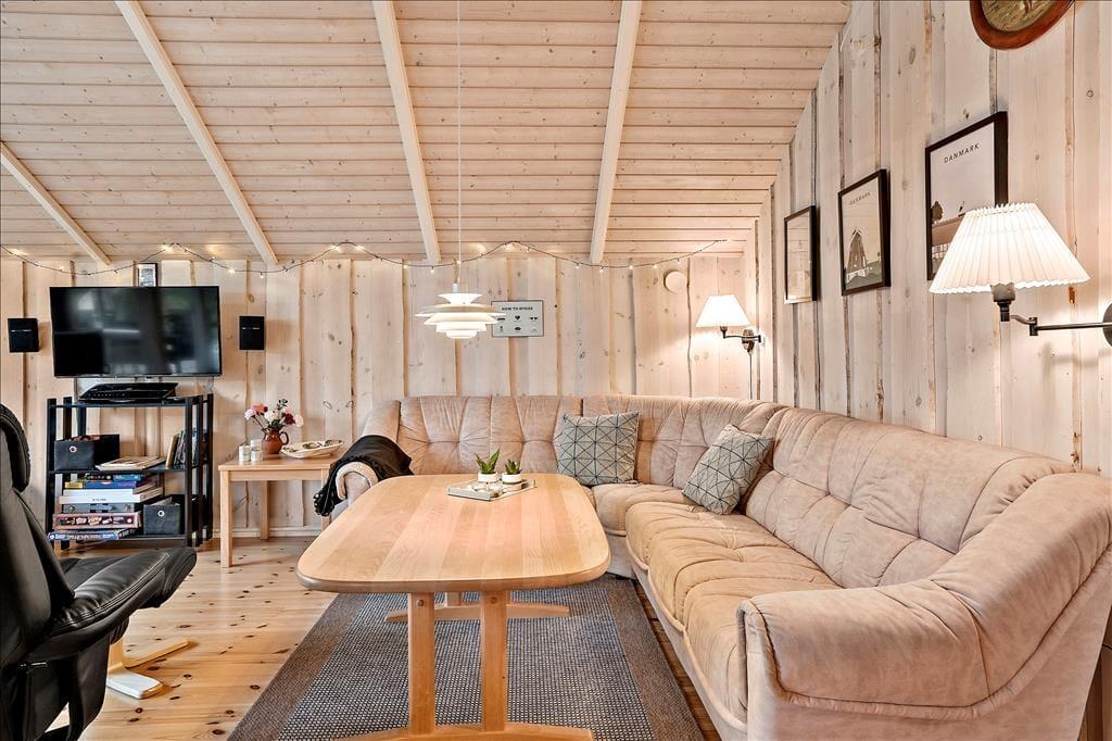 Willkommen in diesem ansprechenden Ferienhaus, das ausreichend Platz für 4 Erwachsene und 2 Kinder bietet. Sie wohnen angenehm nah am Ort und am Hafen und dennoch ruhig in einem schönen Ferienhausgebiet. Das Urlaubsdomizil beinhaltet insgesamt drei Schlafzimmer, eine Küche, einen gemütlichen Wohnraum mit einem Kaminofen und ein Badezimmer, das mit einem WC, einer Dusche, einer Waschmaschine und einem Wäschetrockner ausgestattet ist. Im Wohnraum ist unter anderem auch ein Kindertisch platziert, der sicherstellt, das selbst die Jüngsten beim Essen bequem sitzen und in aller Ruhe im Tagesverlauf malen, basteln und gemeinsam Spiele spielen können. Die Küche bietet Ihnen alles, was Sie für die Zubereitung Ihrer Urlaubsmahlzeiten benötigen. Sie ist zudem schön und harmonisch in den Wohnraum integriert. Die Schlafplätze verteilen sich auf zwei Schlafzimmer mit je einem guten Doppelbett und auf einen Schlafraum mit einem Etagenbett. Für Unterhaltung und Abwechslung sorgt der im Wohnraum platzierte Fernseher, der nicht nur gewöhnliche Fernsehsender empfängt, sondern sich Dank Chromecast in Kombination mit Ihrem privaten Streamingabo auch zum Streamen von Internetinhalten, Filmen und Serien eignet.