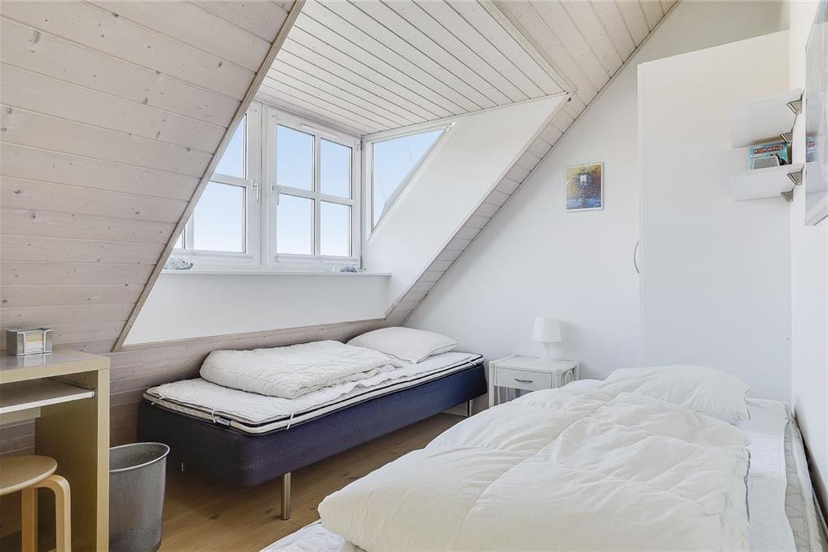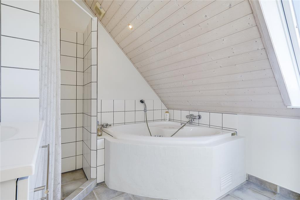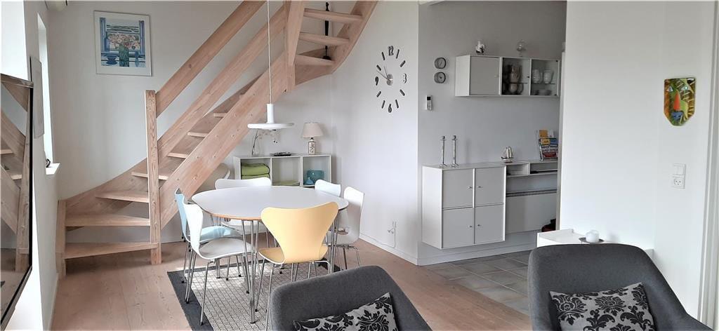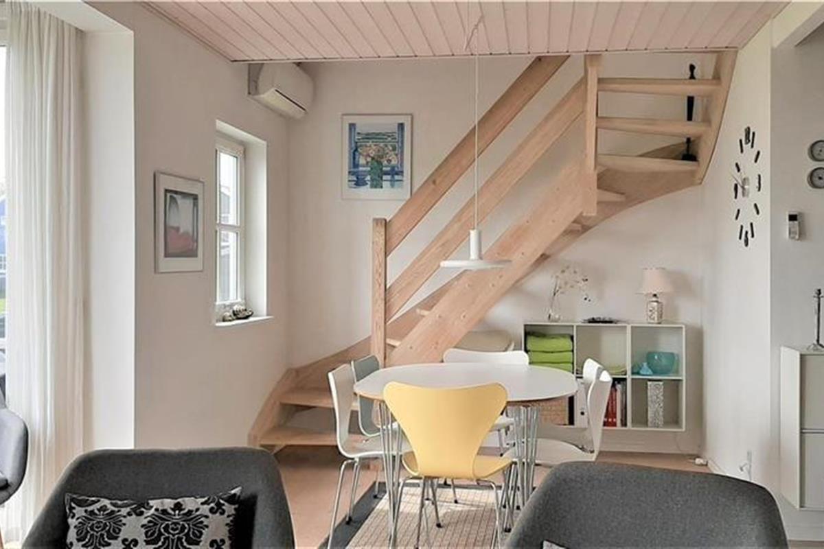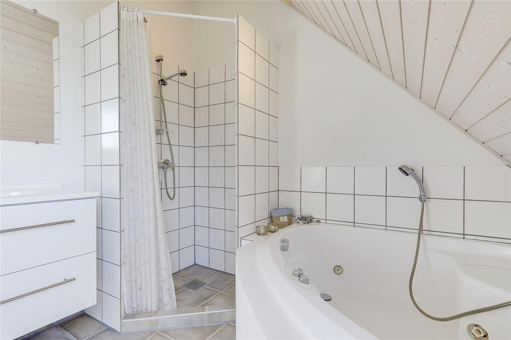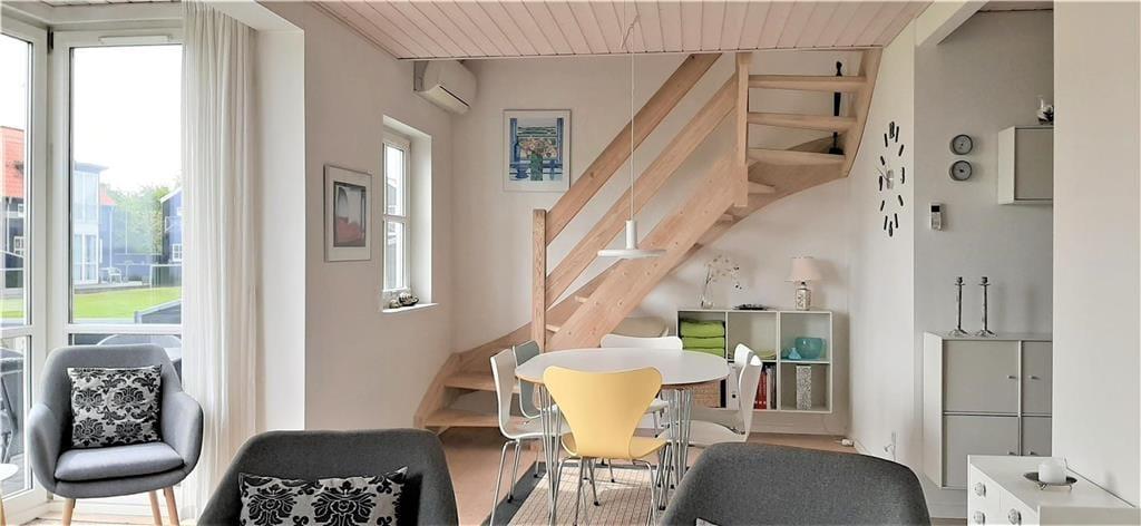 Die Wohnungen im Strandengen sind individuell eingerichtet. Im Erdgeschoss befindet sich eine große, helle und gut ausgestattete Wohnzimmer und Küche mit Speiseplatz. Außerdem sind ein Badezimmer und ein Schlafzimmer mit einem Doppelbett vorhanden. Vom Wohnraum geht die Treppe hinauf in den ersten Stock mit Repos - einem kombinierten Wohn- und Schlafzimmer auch mit einem Doppelbett. Von hier haben Sie einen fantastischen Blick über Strand und Wald. Darüber hinaus befindet sich im Obergeschoss ein Schlafzimmer mit zwei Einzelbetten sowie ein Badezimmer mit Whirpool.