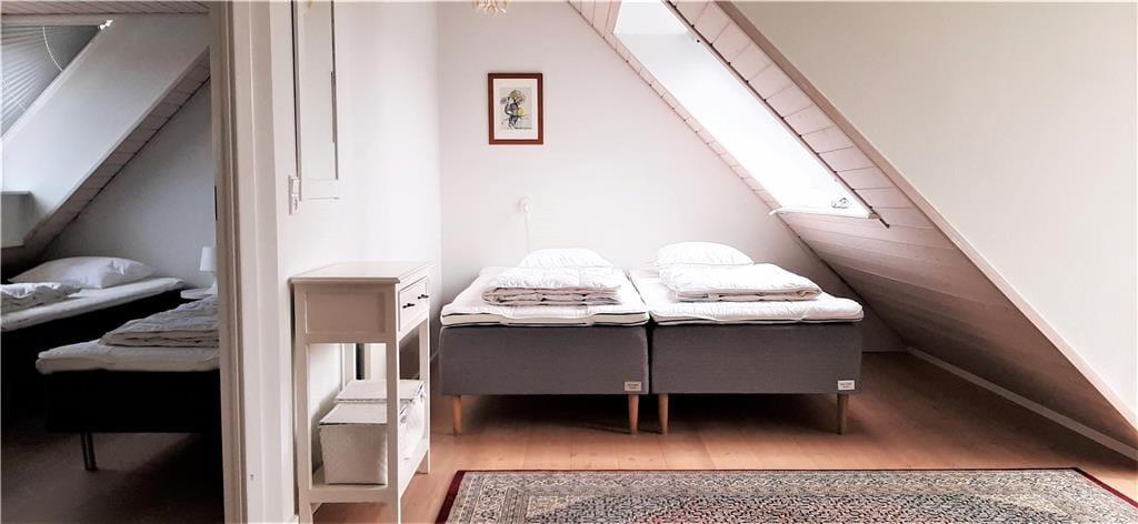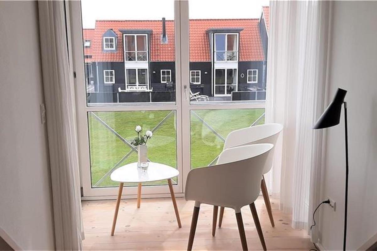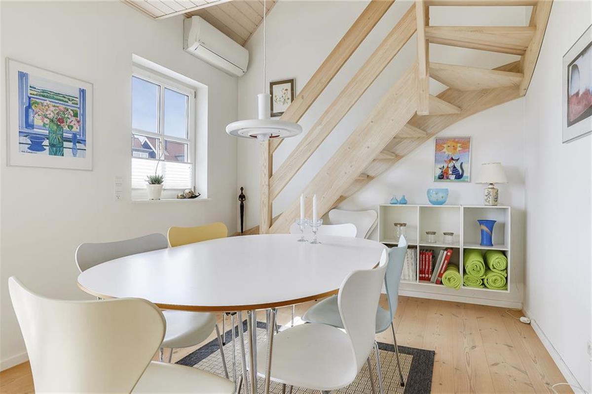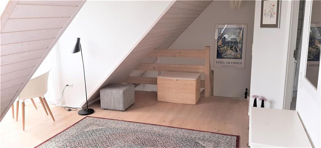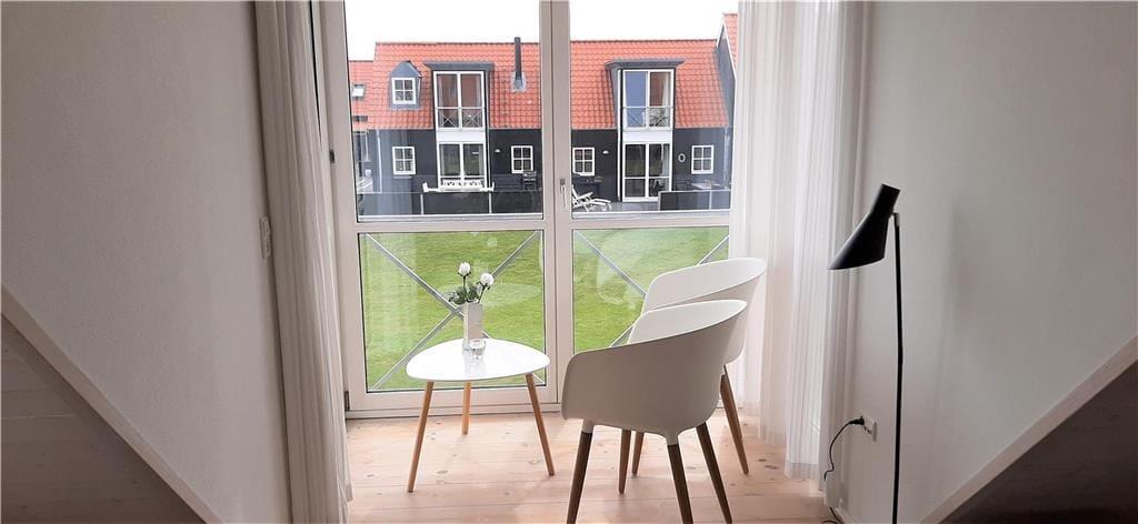 Die Wohnungen im Strandengen sind individuell eingerichtet. Im Erdgeschoss befindet sich eine große, helle und gut ausgestattete Wohnzimmer und Küche mit Speiseplatz. Außerdem sind ein Badezimmer und ein Schlafzimmer mit einem Doppelbett vorhanden. Vom Wohnraum geht die Treppe hinauf in den ersten Stock mit Repos - einem kombinierten Wohn- und Schlafzimmer auch mit einem Doppelbett. Von hier haben Sie einen fantastischen Blick über Strand und Wald. Darüber hinaus befindet sich im Obergeschoss ein Schlafzimmer mit zwei Einzelbetten sowie ein Badezimmer mit Whirpool.