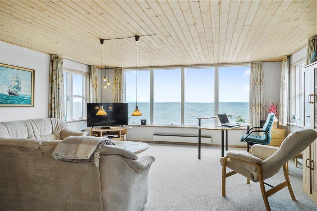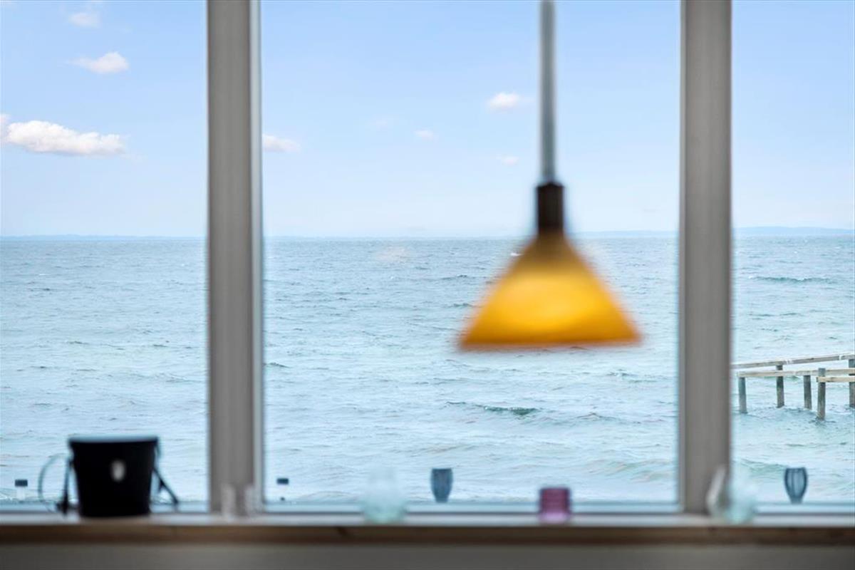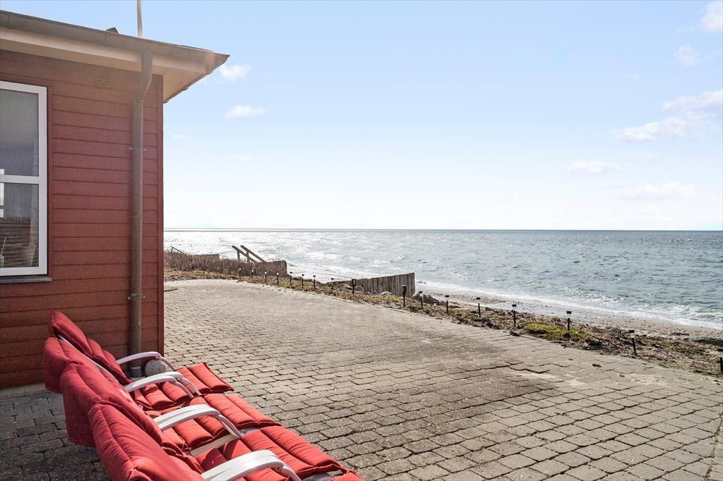 Vom Wohnraum aus gelangen Sie direkt hinaus auf eine wunderbar große Terrasse, die richtig viel Platz zum Entspannen, Sonnen und Grillen im Familien- und Freundeskreis bietet. Ganz egal, wie Sie sich gerade auf der Terrasse beschäftigen, die wunderschöne Aussicht wird all Ihre Aktivitäten traumhaft schön untermalen. Ein Außenkamin sorgt für Stimmung und Gemütlichkeit am Abend. Die Terrasse ist offen und ermöglicht es Ihnen, direkt hinunter an den privaten Strand zu gehen, an dem während des Sommerhalbjahrs sogar ein eigener Badesteg zur Verfügung steht..