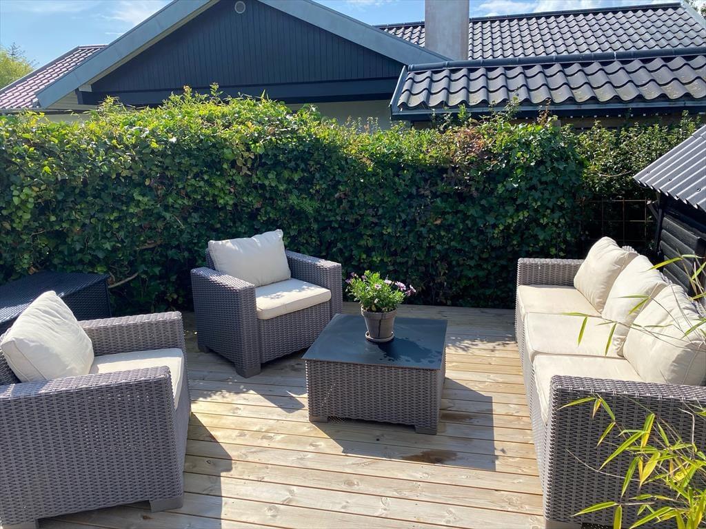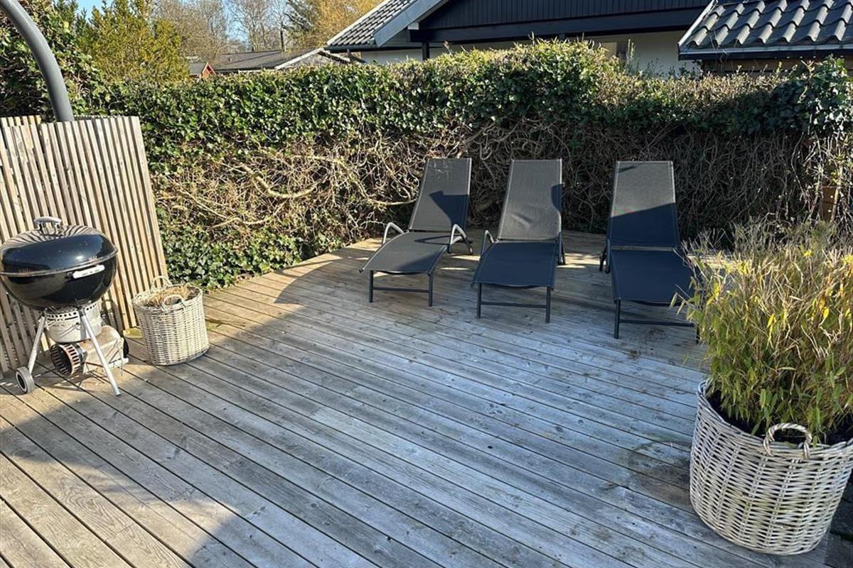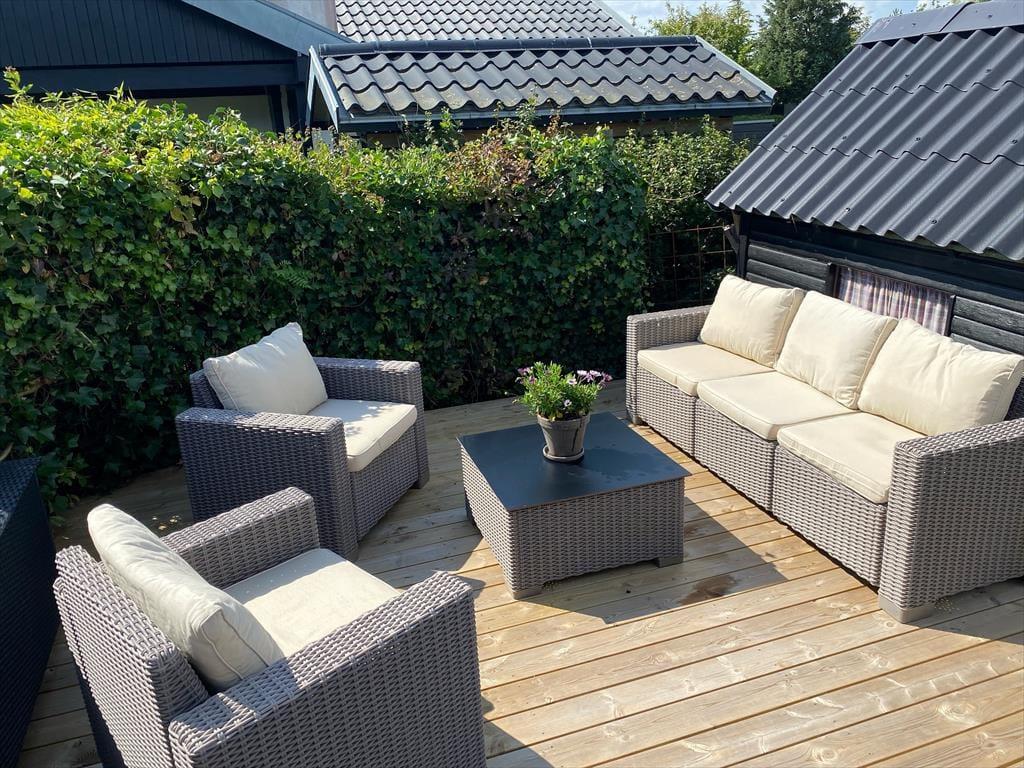 Rund um das Haus bieten sich Ihnen zahllose Möglichkeiten, das Leben unter freiem Himmel zu genießen. Auf der großen Holzterrasse, die gleich mehrere Seiten des Hauses umgibt, können Sie sich den gesamten Tag hindurch von der Sonne verwöhnen lassen. Gute Gartenmöbel und Liegestühle stehen selbstverständlich für Sie bereit. Sie werden stets ein windgeschütztes Plätzchen finden und garantiert diverse Mahlzeiten unter freiem Himmel zu sich nehmen - angefangen beim Frühstück bis hin zum gemütlichen Grillabend oder zum romantischen Stockbrotrösten rund um den Feuerkorb.