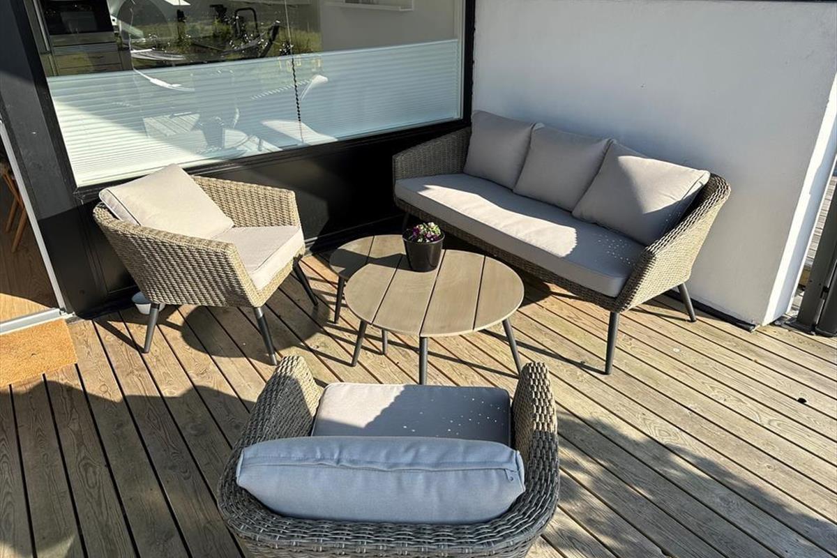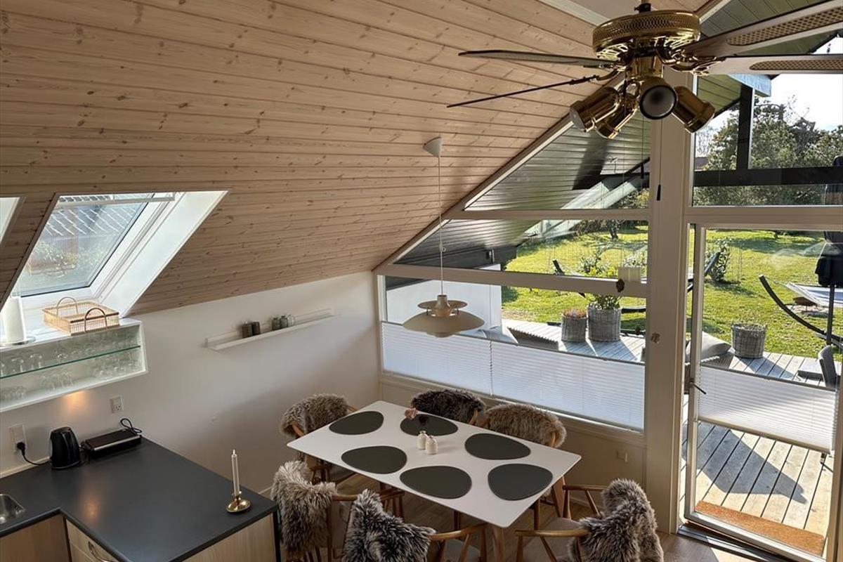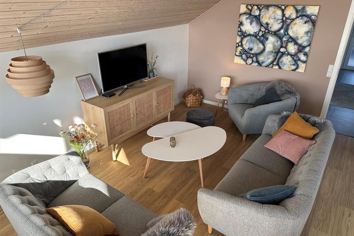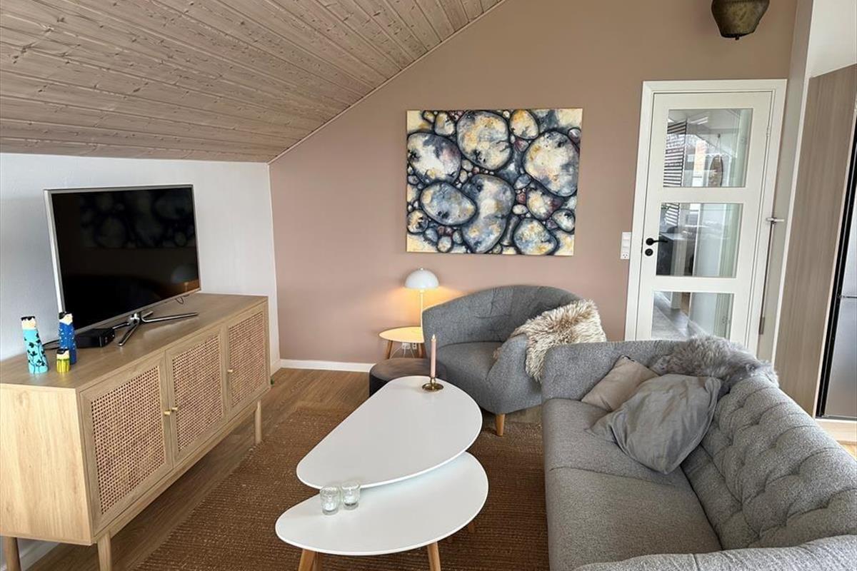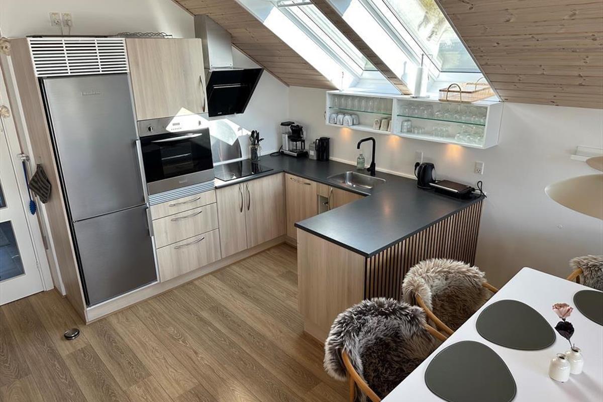 In der offenen Küche finden Sie alles, was Sie für die Zubereitung köstlicher Urlaubsmahlzeiten benötigen. Von der Küche haben Sie direkten Zugang zum guten Essplatz und zum attraktiven Wohnraum. Falls sich das Wetter einmal nicht von seiner schönsten Seite präsentieren sollte, machen Sie es sich einfach in der Sofagruppe vor dem TV gemütlich. Dieser sorgt mit dänischen, deutschen, schwedischen und norwegischen Sendern sowie mit Chromecast für Unterhaltung und Abwechslung. Kostenlos nutzbares Internet mit einer Geschwindigkeit von 50/50 Mbit steht ebenfalls zu Ihrer Verfügung. Der Wohnraum bietet sich ganz hervorragend zum gemeinsamen Spielen von Brettspielen, zum entspannten Lesen und zum Genießen von viel wertvoller gemeinsamer Zeit an.