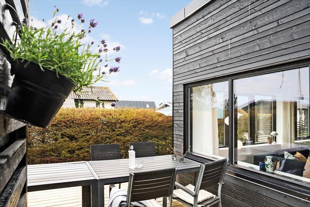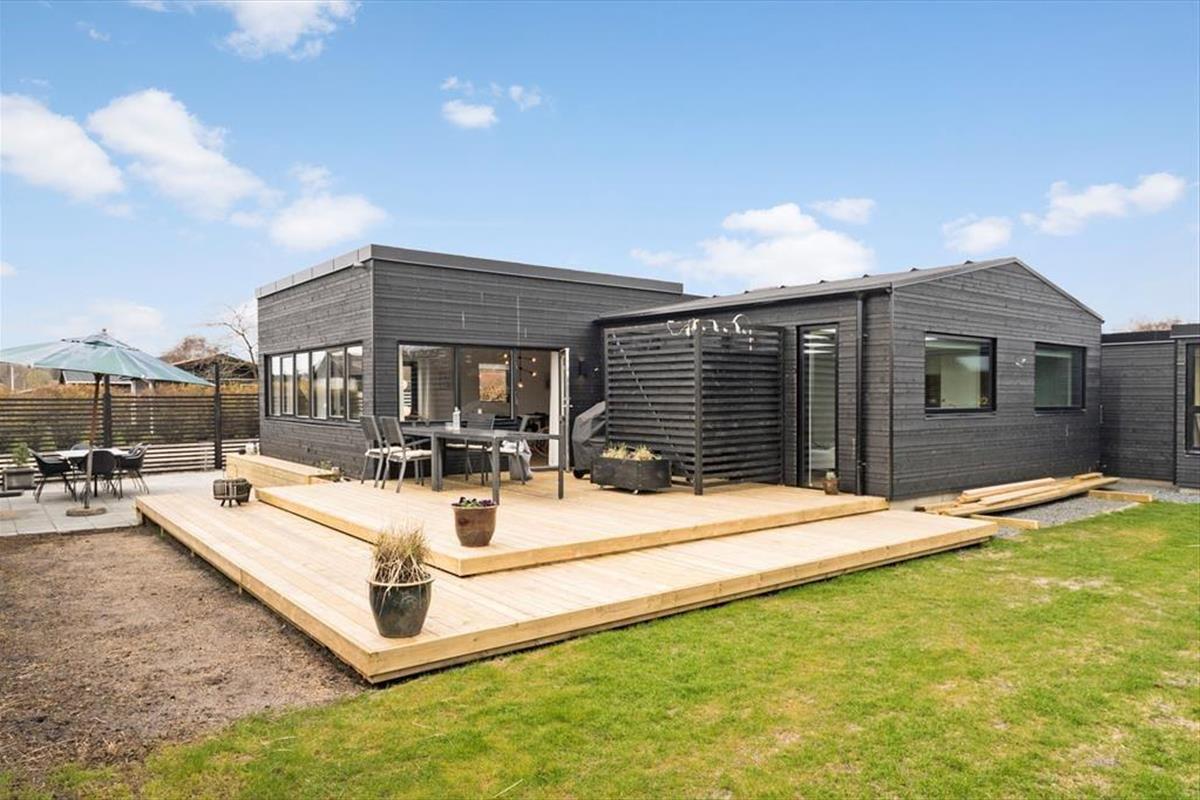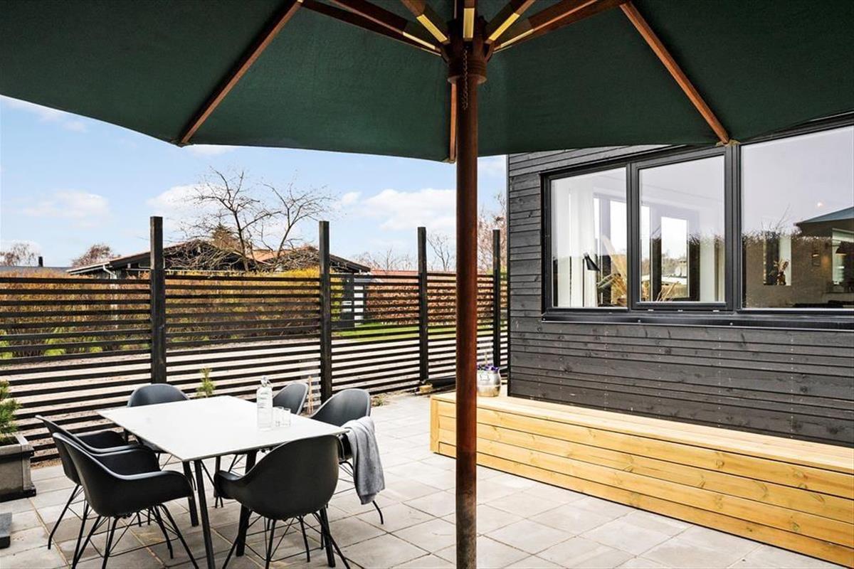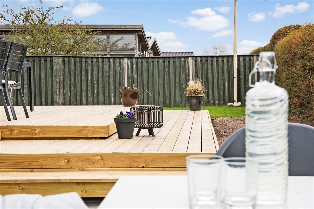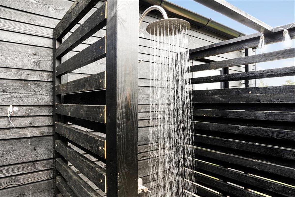 Das Ferienhaus hat mehrere Terrassenebenen, auf denen Sie den ganzen Tag und bis in den Abend hinein die Sonne genießen können. Hier können Sie sich richtig entspannen, sei es auf den Liegestühlen oder bei einem guten Brettspiel mit der Familie. Abends können Sie den Grill anschmeißen und im dänischen Sommer ein leckeres Essen genießen. Auf der Terrasse gibt es eine Außendusche, die nach einem langen Tag am Strand besonders schön ist.