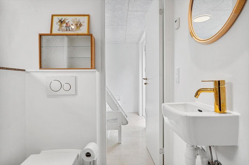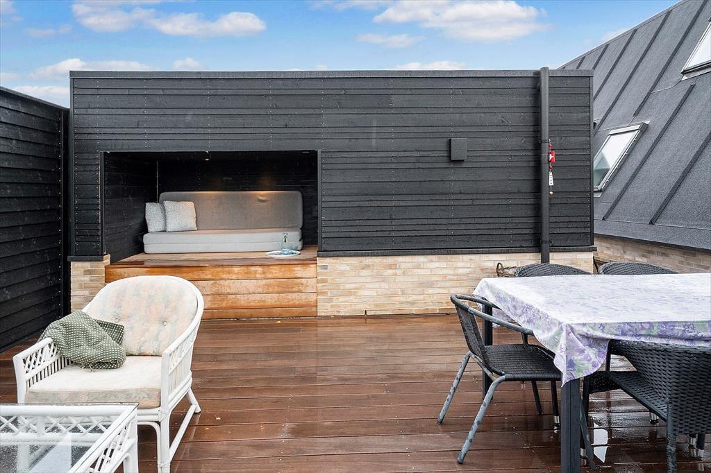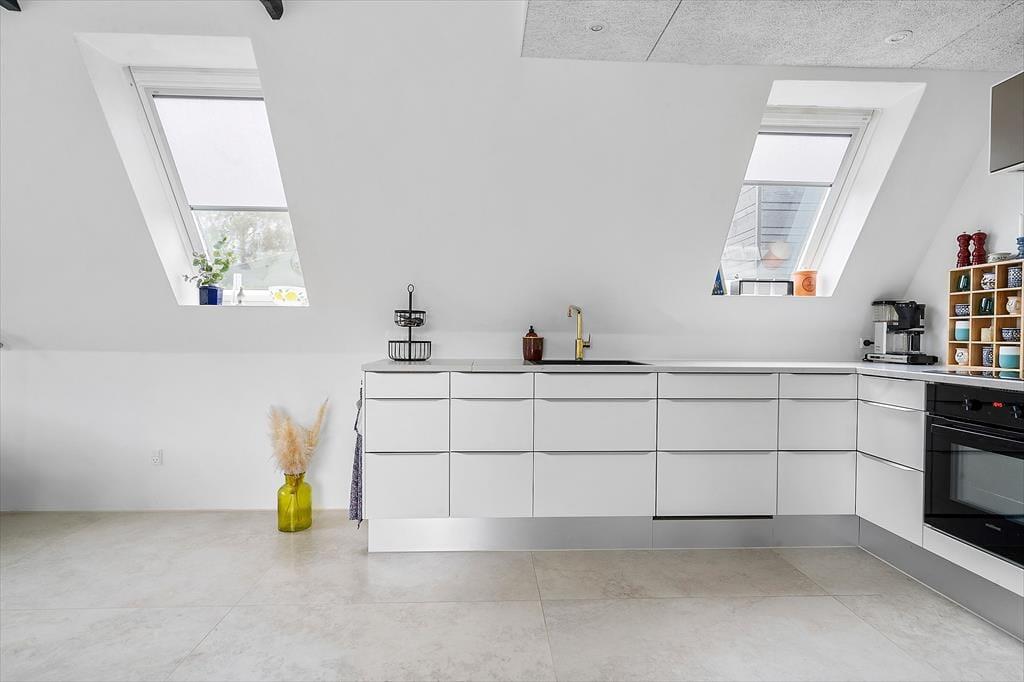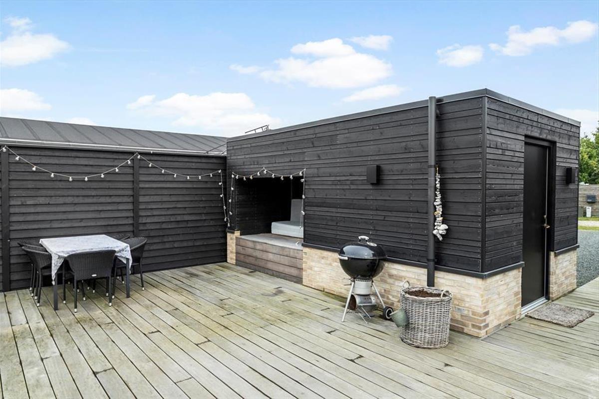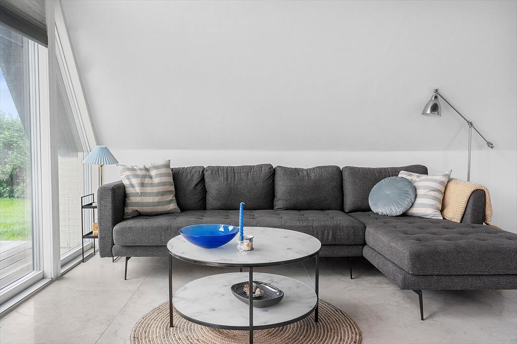 Lediglich wenige hundert Meter den Weg hinunter erwartet Sie der schöne Badestrand, der sich durch sein ruhiges Wasser auszeichnet und sich über rund einen Kilometer gen Süden bis zur Landspitze Bjørnsknude erstreckt. An das Ferienhaus schließen mehrere Terrassen, auf denen Sie sich den gesamten Tag über von der Sonne verwöhnen lassen können. Purer Entspannung auf den Gartenliegen und gemütlichen Runden unter freiem Himmel steht nichts im Wege. Am Abend lassen Sie gelungene Urlaubstage mit einem Abendessen vom Grill auf der Terrasse ausklingen.