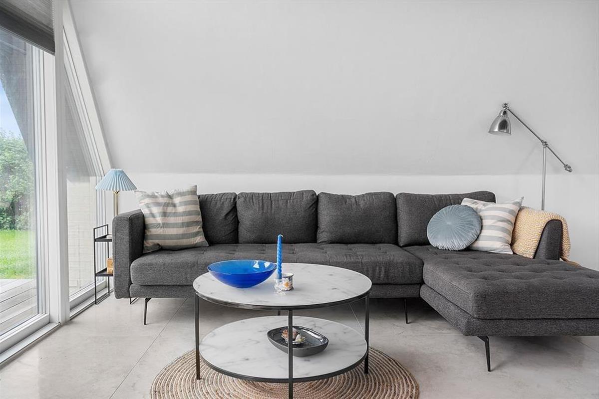 Dieses schöne und moderne Ferienhaus begrüßt Sie in einem der besten Ferienhausgebiete Juelsmindes.