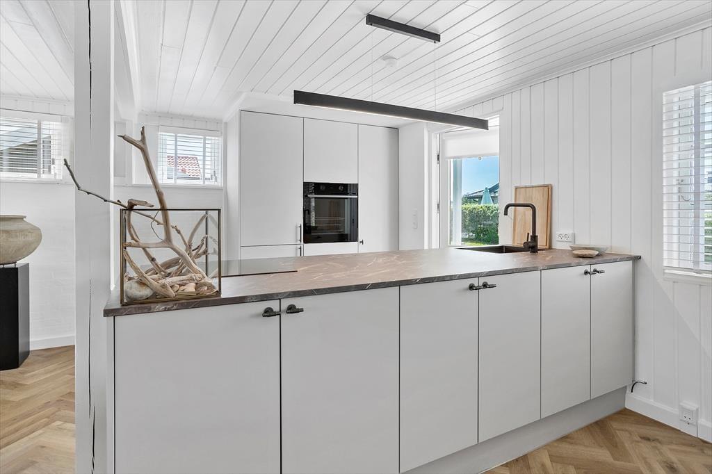 Die offene Küche ist komplett ausgestattet und bereit für Ihre kulinarischen Abenteuer. Durch das offene Design entsteht eine angenehme Verbindung zwischen Kochen und Zusammensein – ideal, um sich mit Familie oder Freunden zu unterhalten, während das Essen zubereitet wird.