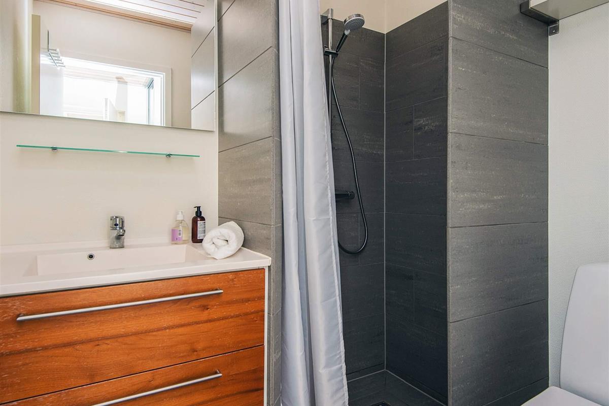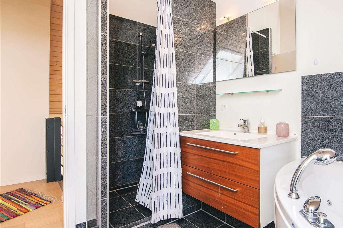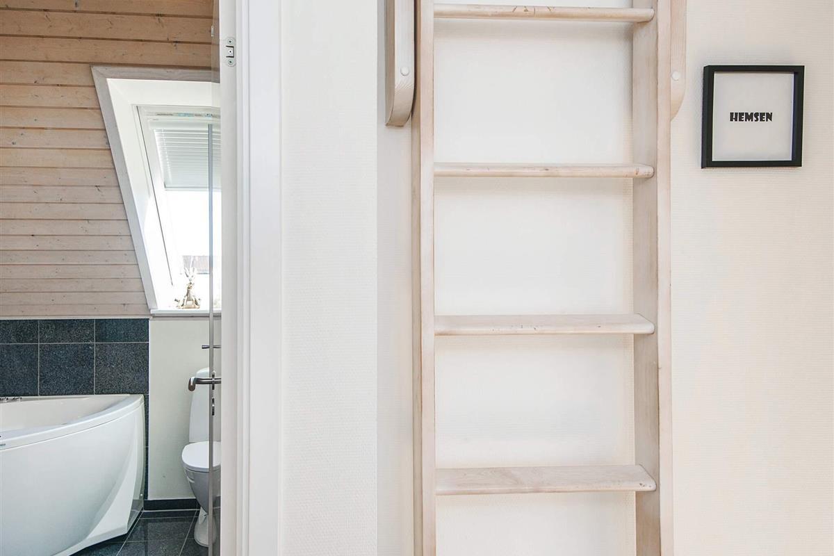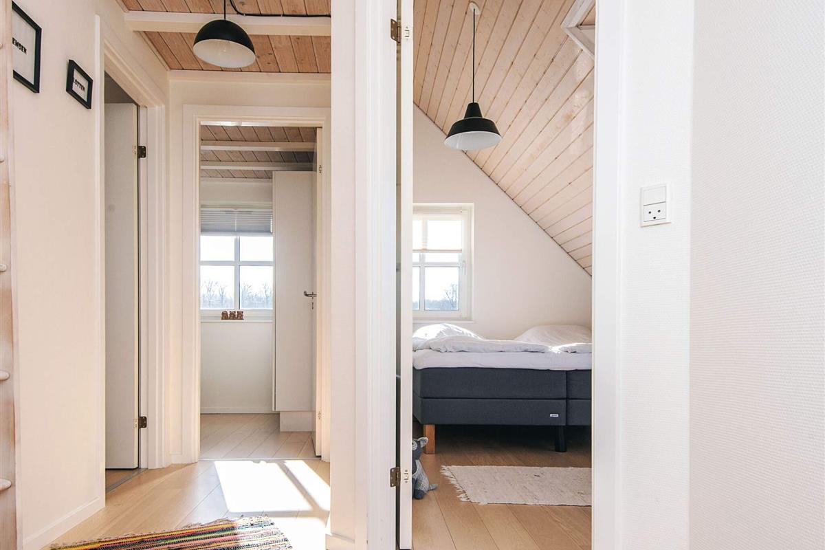 Oben in der ersten Etage befinden sich drei Schlafzimmer und ein Hems/Schlafboden, ideal für ein größeres Kind oder einen Teenager. Zudem geräumiges Badezimmer mit Whirlpool für Wellness und Erholung oben.