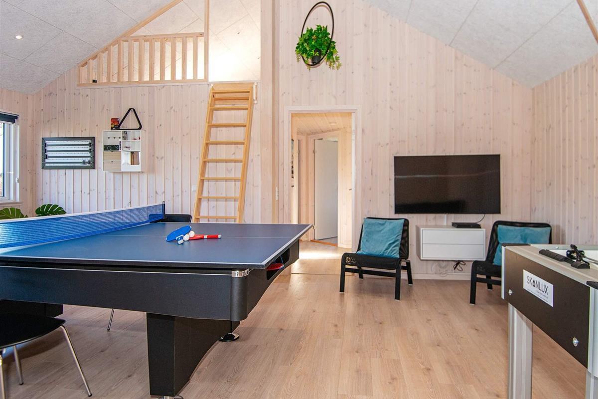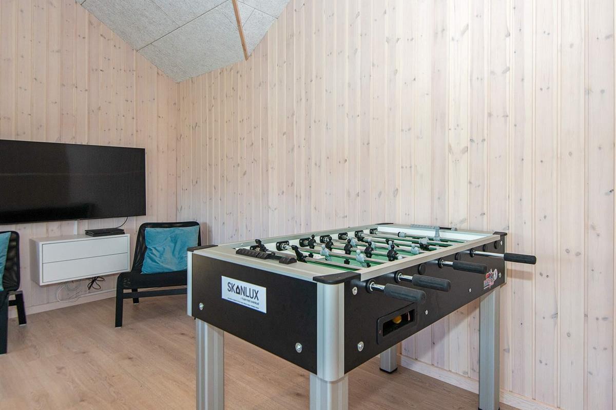 Im sogenannten Aktivitätsraum des Ferienhauses kann man Tischkicker, Billard, elektronisches Darts und Tischtennis spielen, während der Rest der Familie sich nebenan im Wohnzimmer entspannt. Für den Freizeitspaß gibt es zudem WLAN, mehrere Fernseher (ohne TV-Kanalen) sowie Blu-ray und PlayStation4 im Haus.