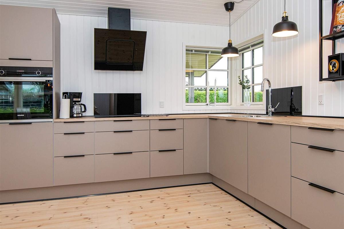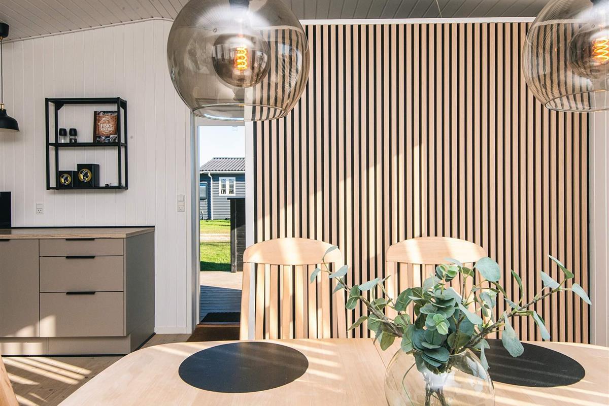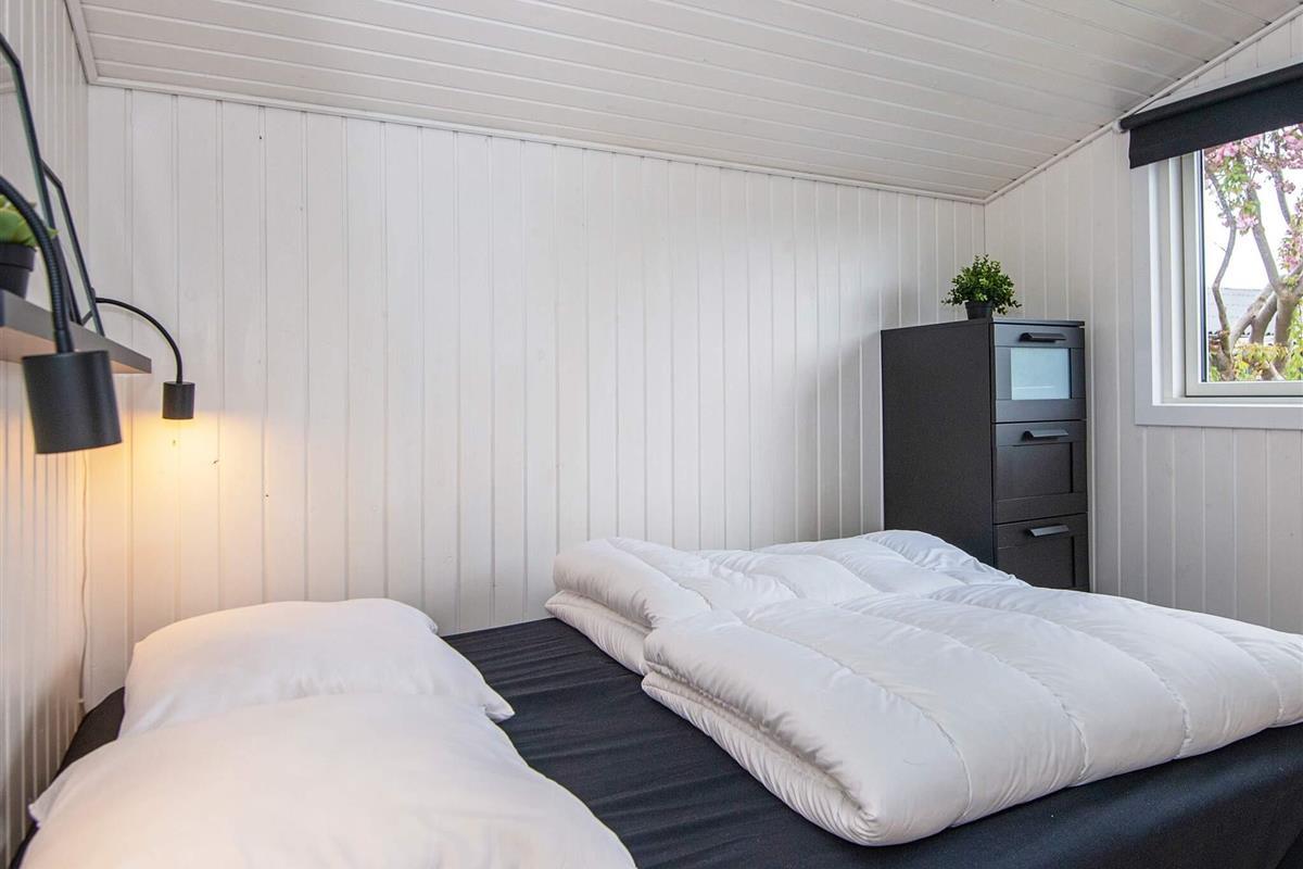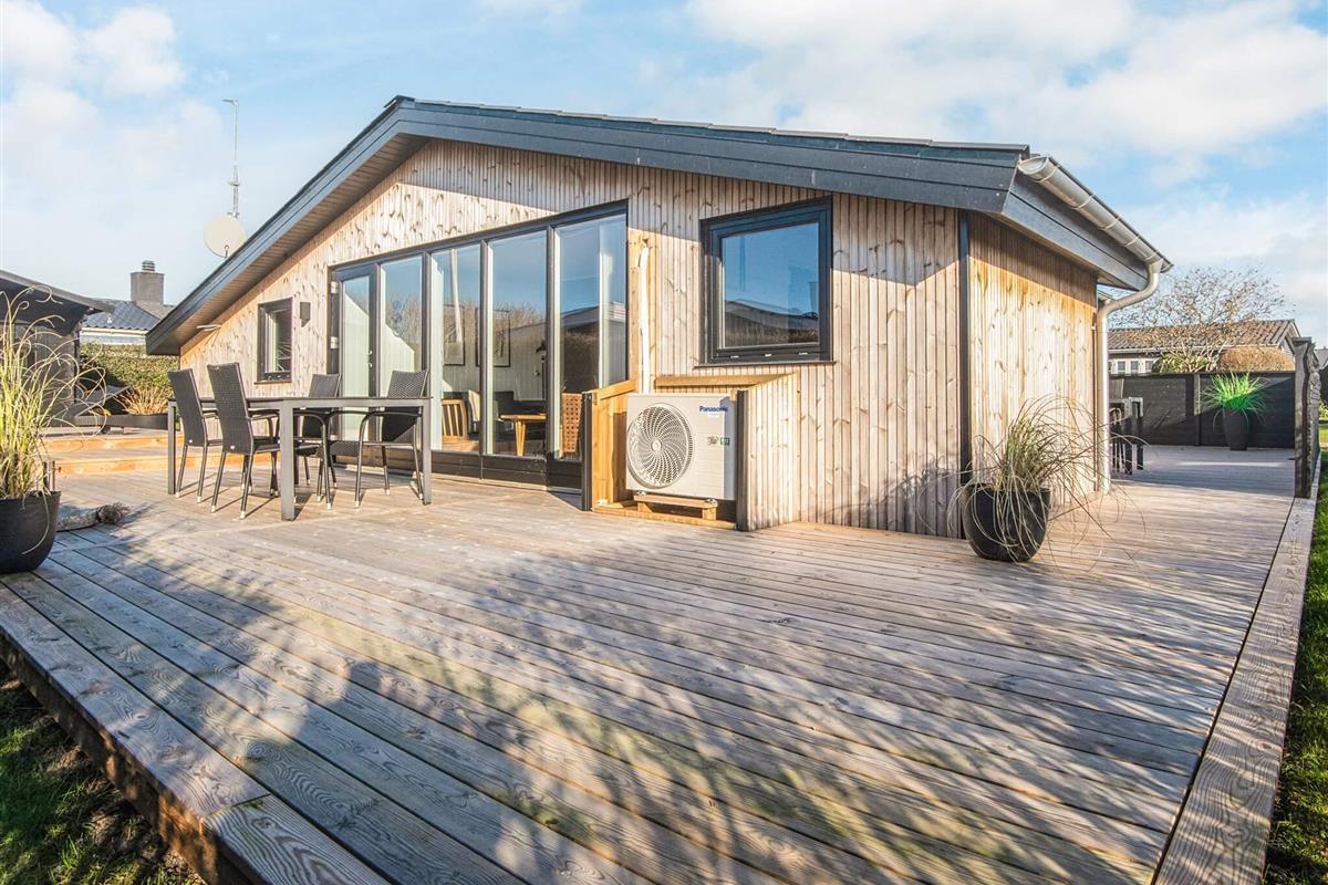 Die neue Küche ist offen in den Wohnbereich integriert. Zudem stehen zwei gute Schlafzimmer zur Verfügung. Vom Wohnzimmer aus hat man direkten Zugang zum Grundstück mit Rasenfläche für Spiel und Spaß der Kinder. Hier gibt es auch Platz zum Sonnenbaden und für Grillabende. Nebenan auf dem Grundstück steht zudem ein kleiner Annex mit zwei weiteren Schlafplätzen in einem Doppelbett.