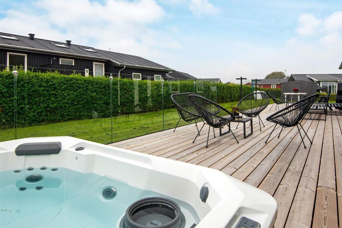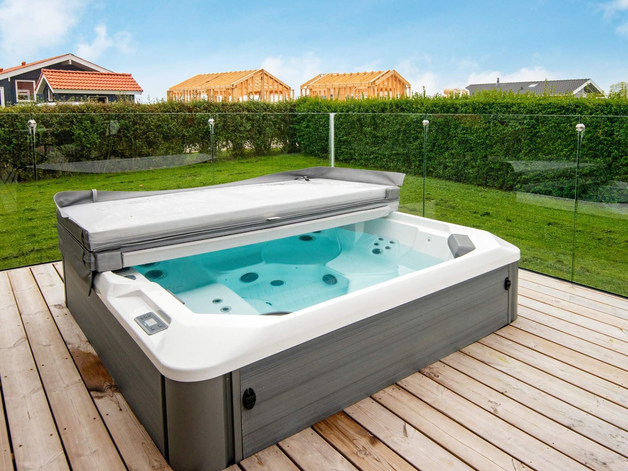 Auf der Terrasse können Sie zudem die Aussicht aus einem ganzjährig nutzbaren Außen-Whirlpool genießen.