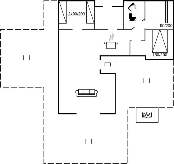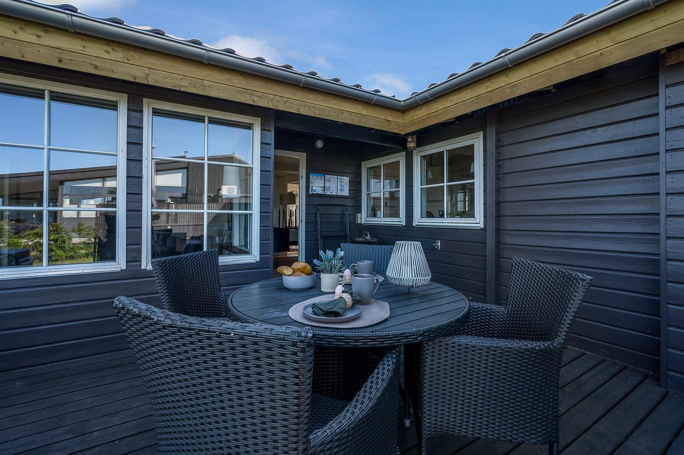 De vakantiewoning is gelegen op een 1400 m² groot aangelegde tuin. Afstand tot de zee 80 m. Dichtstbijzijnde winkel 1000 m. Bij de vakantiewoning hoort 75 m² terras. Daarnaast is er een 20 m² groot overdekt terras. Parkeerplaats bij het huis.