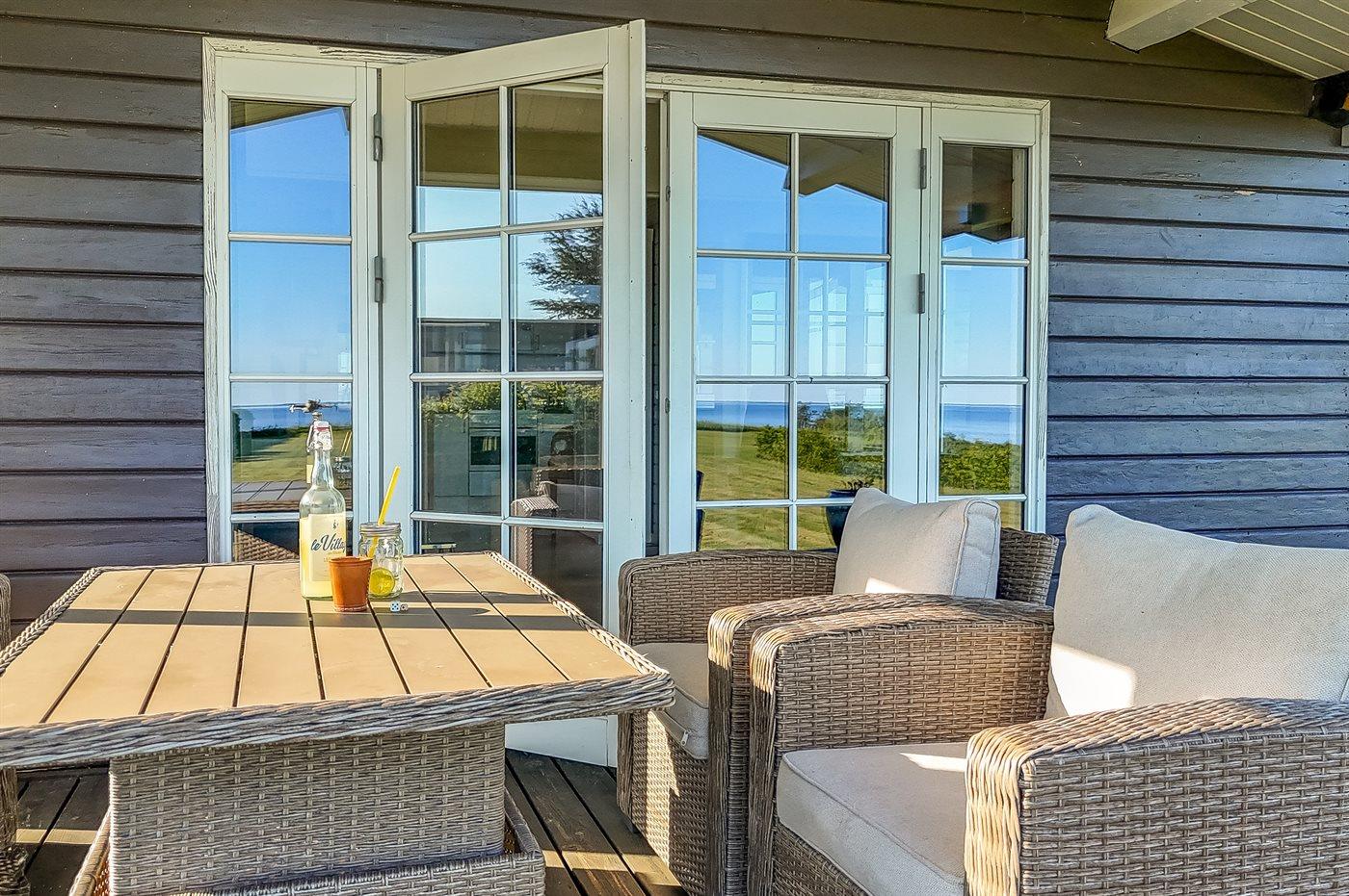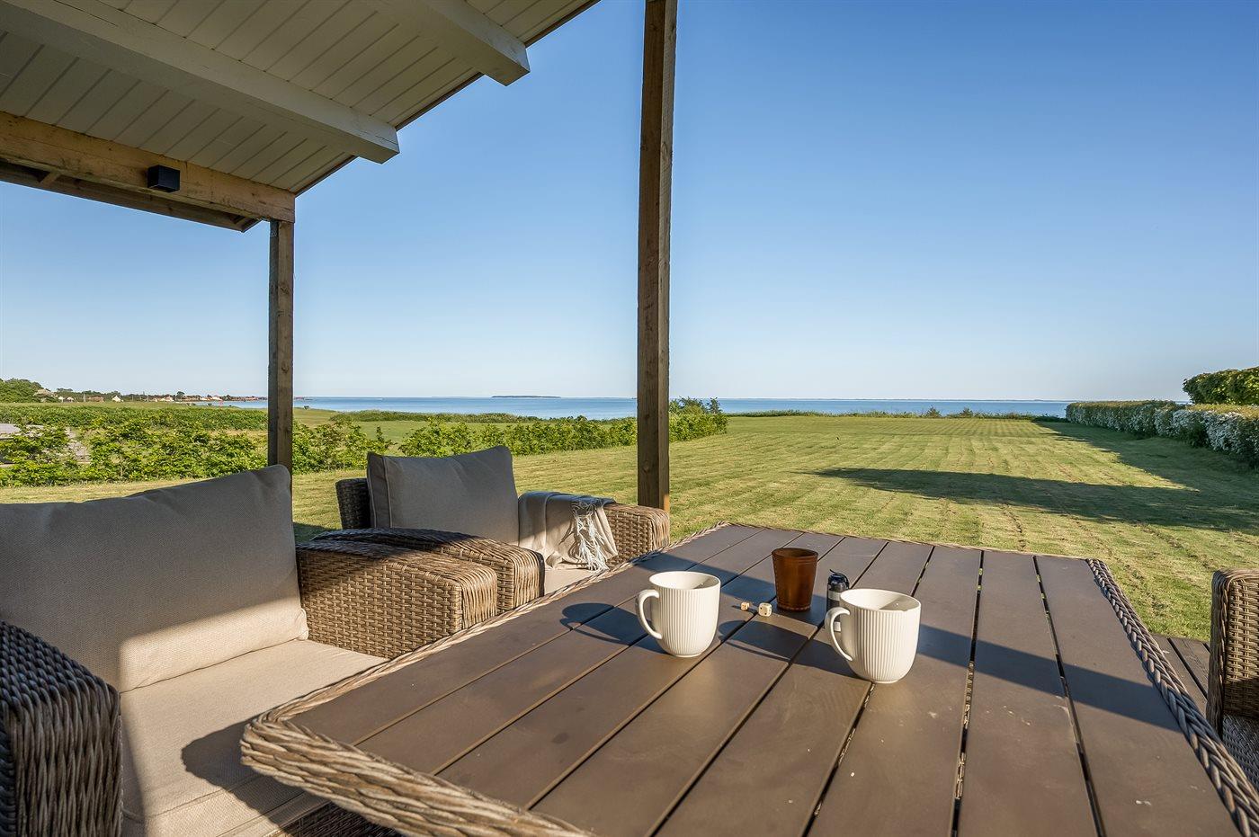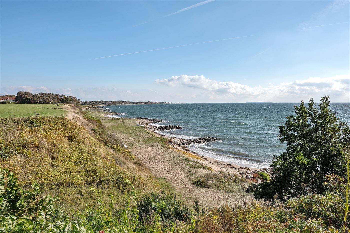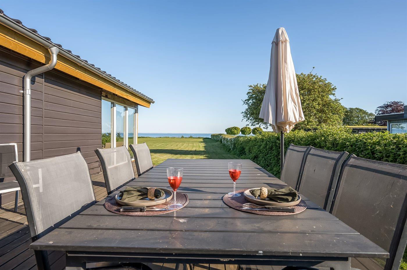 Comfortabel vakantiehuis in Juelsminde met zeezicht, grote tuin en buitenbubbelbad voor ontspannen vakanties.