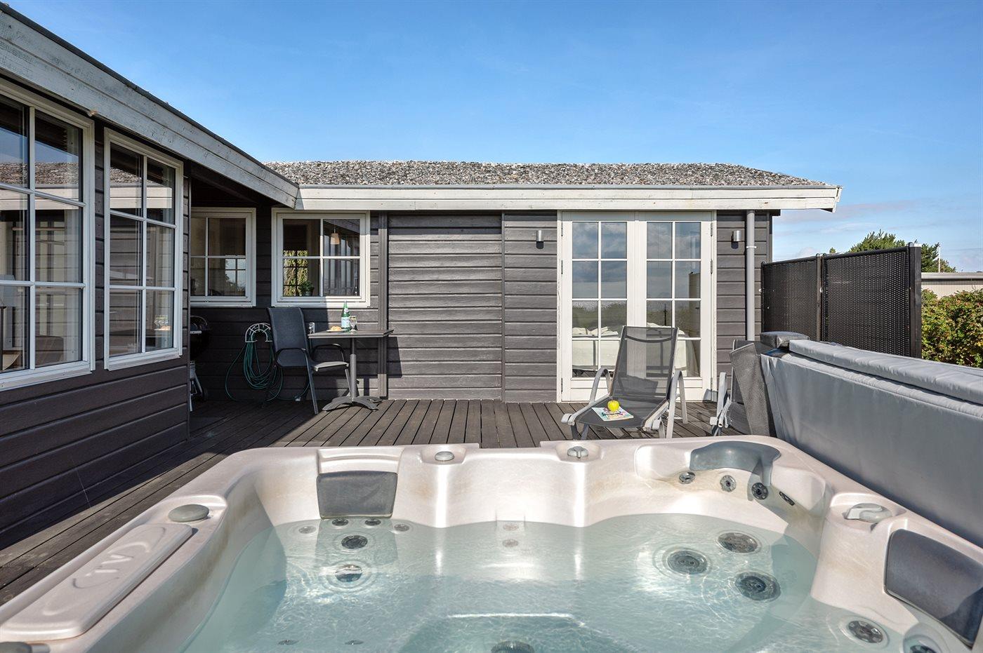 Het buitenbubbelbad (standwater) biedt ontspanning aan 5 personen.