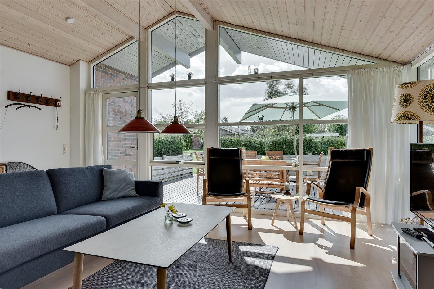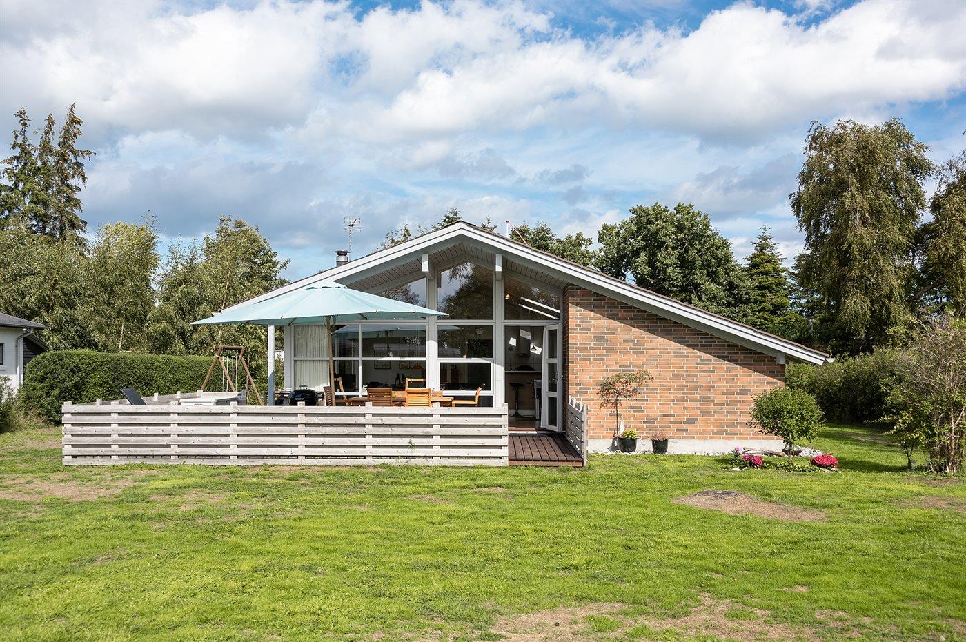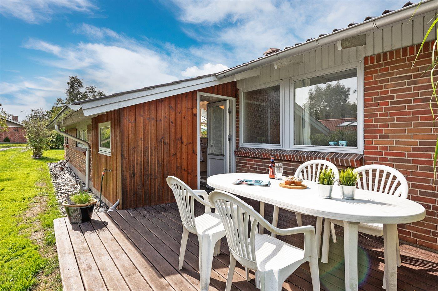 De vakantiewoning is gelegen op een 931 m² groot aangelegde tuin. Afstand tot de zee 300 m. Afstand tot de fjord 600 m. Dichtstbijzijnde winkel 500 m. Bij de vakantiewoning hoort 21 m² terras. Daarnaast is er een 9 m² groot overdekt terras. Gereedschapsruimte. Schommel. Zandbak. Het huis heeft een stopcontact voor het opladen van een elektrische auto. Parkeerplaats bij het huis.