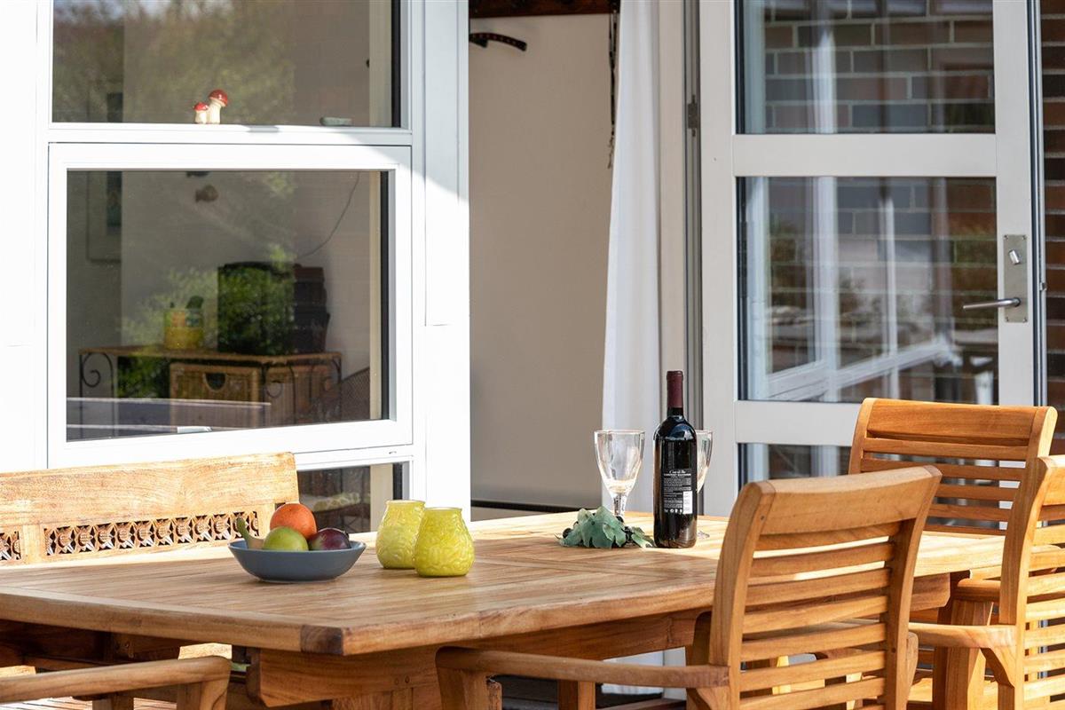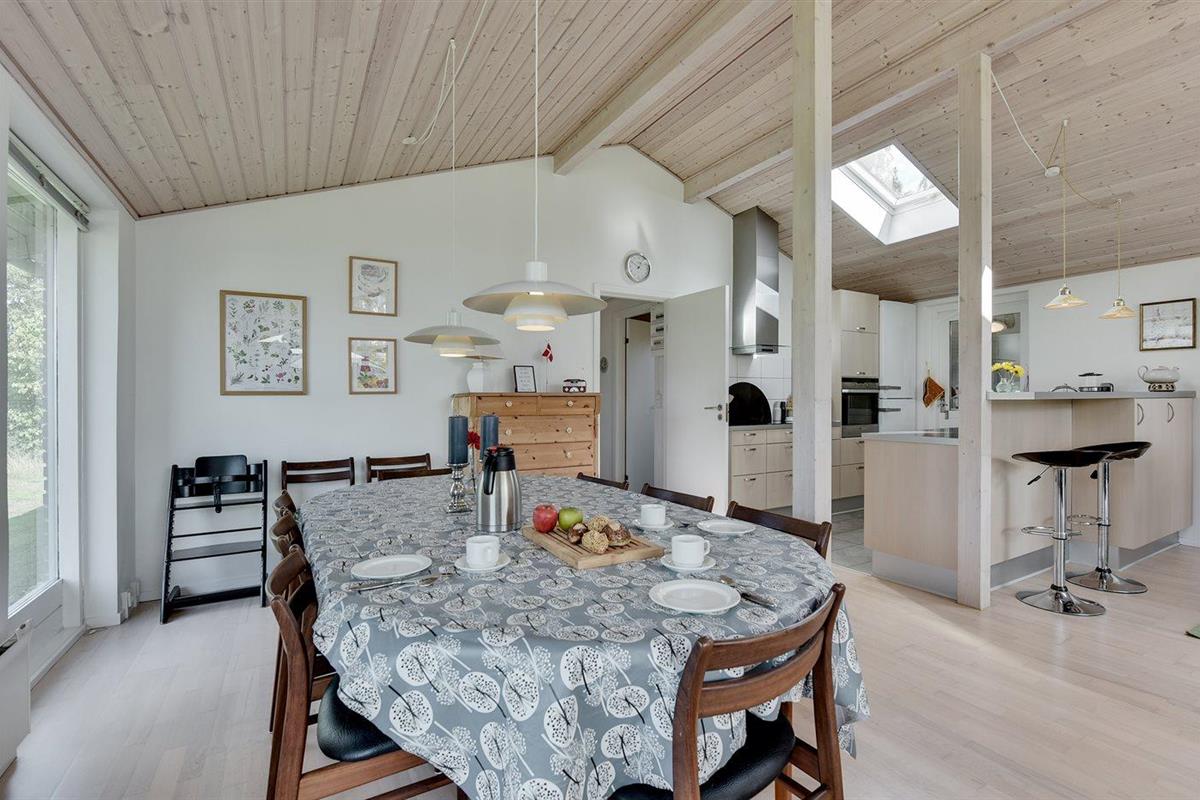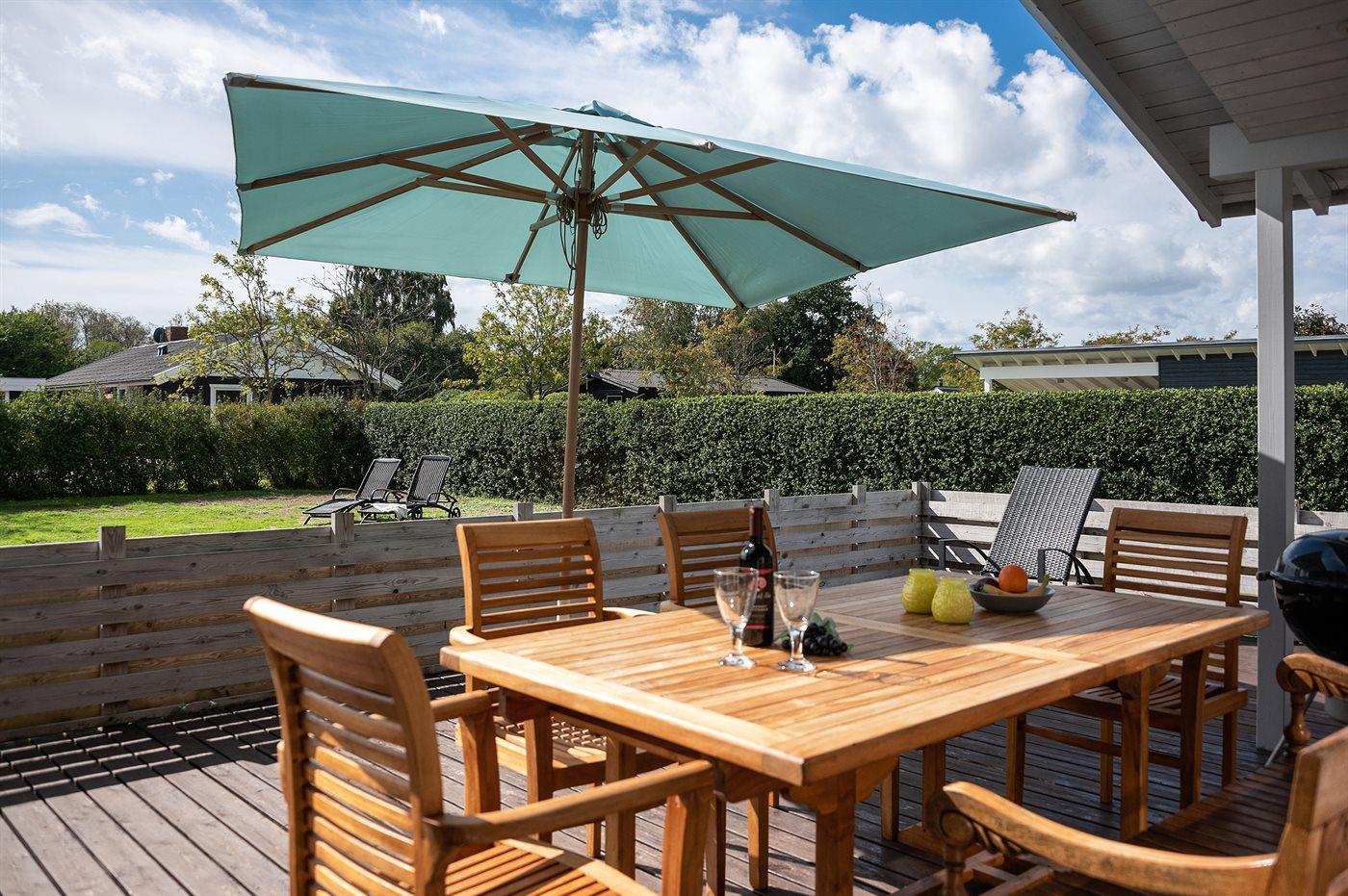 De vakantiewoning is gelegen op een 931 m² groot aangelegde tuin. Afstand tot de zee 300 m. Afstand tot de fjord 600 m. Dichtstbijzijnde winkel 500 m. Bij de vakantiewoning hoort 21 m² terras. Daarnaast is er een 9 m² groot overdekt terras. Gereedschapsruimte. Schommel. Zandbak. Het huis heeft een stopcontact voor het opladen van een elektrische auto. Parkeerplaats bij het huis.