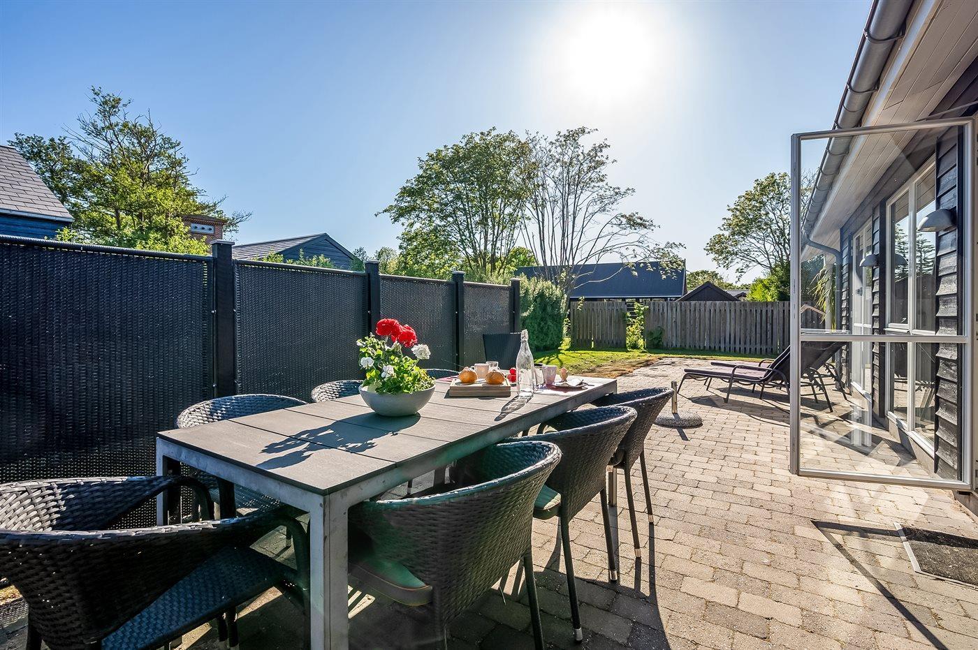 De vakantiewoning is gelegen op een 800 m² groot aangelegde tuin. Afstand tot de zee 300 m. Dichtstbijzijnde winkel 1000 m. Bij de vakantiewoning hoort terras. Daarnaast is er een overdekt terras. Trampoline. Parkeerplaats bij het huis.