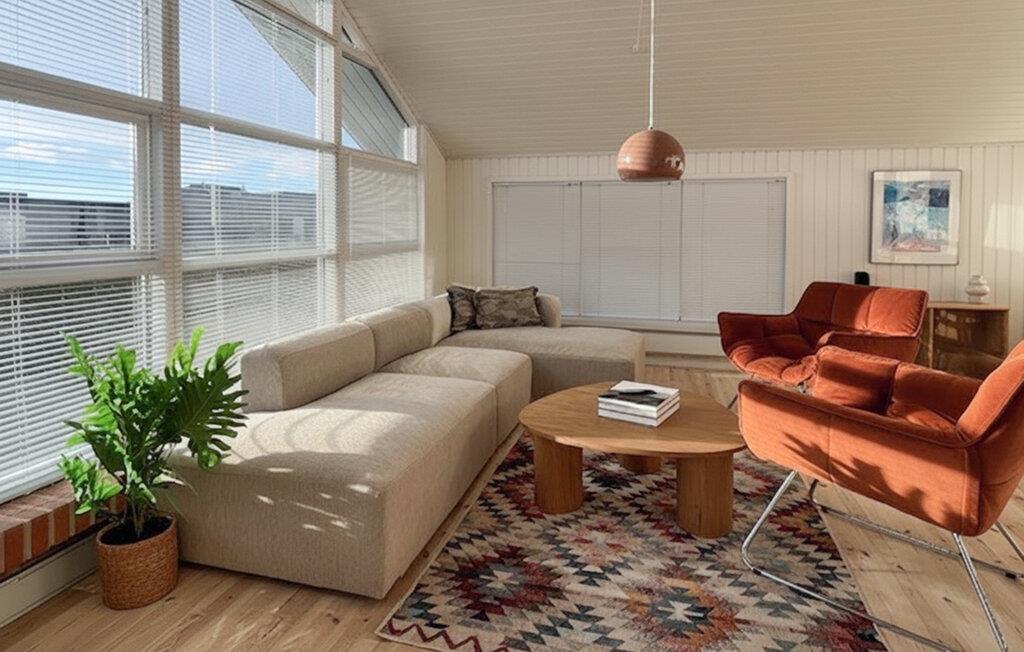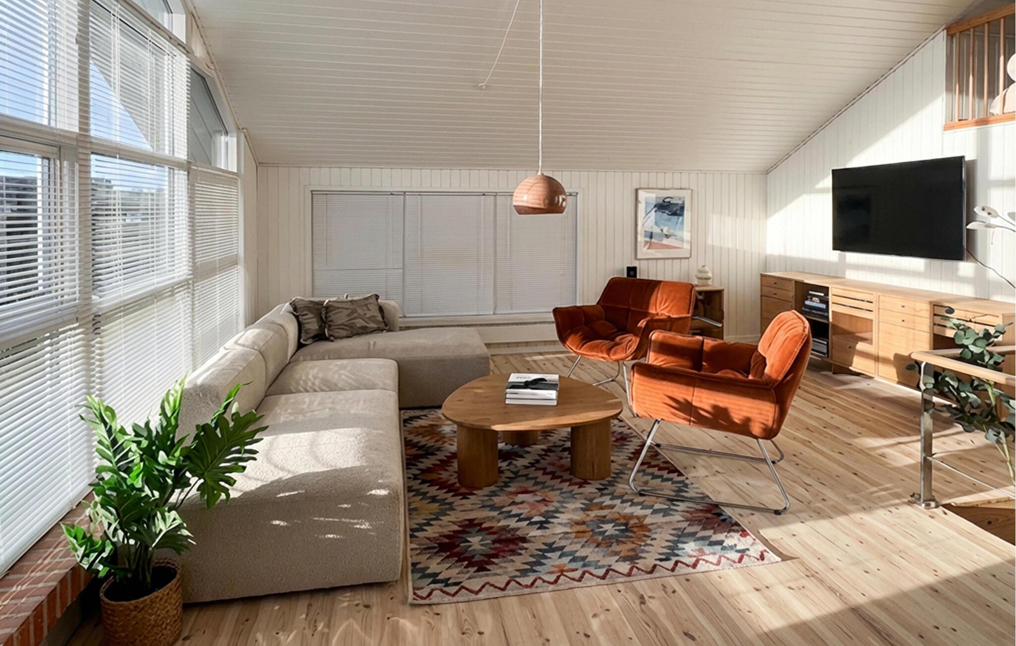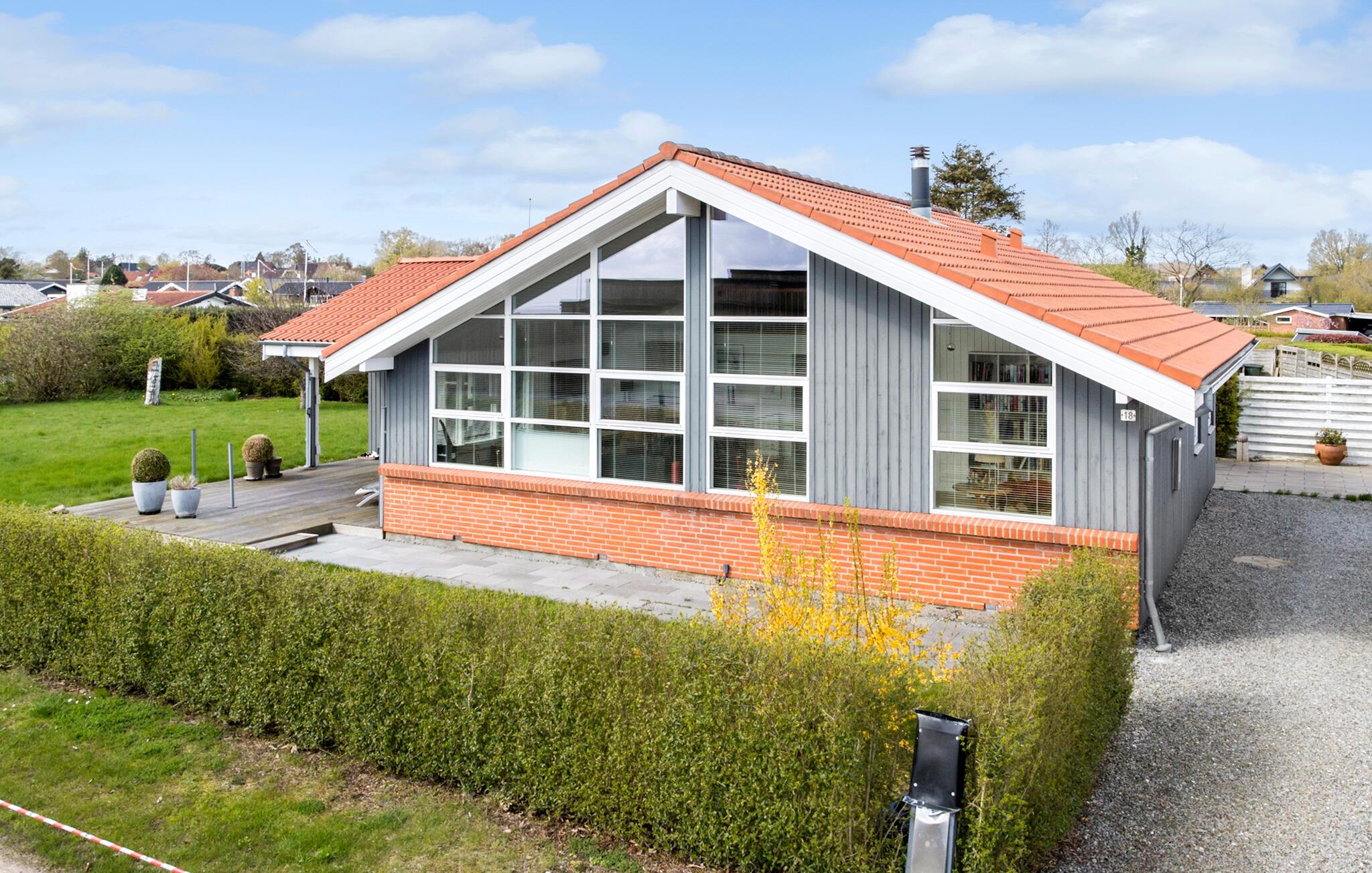 Licht vakantiehuis met zeezicht, vlak bij het zandstrand en gezellige jachthaven in Juelsminde.